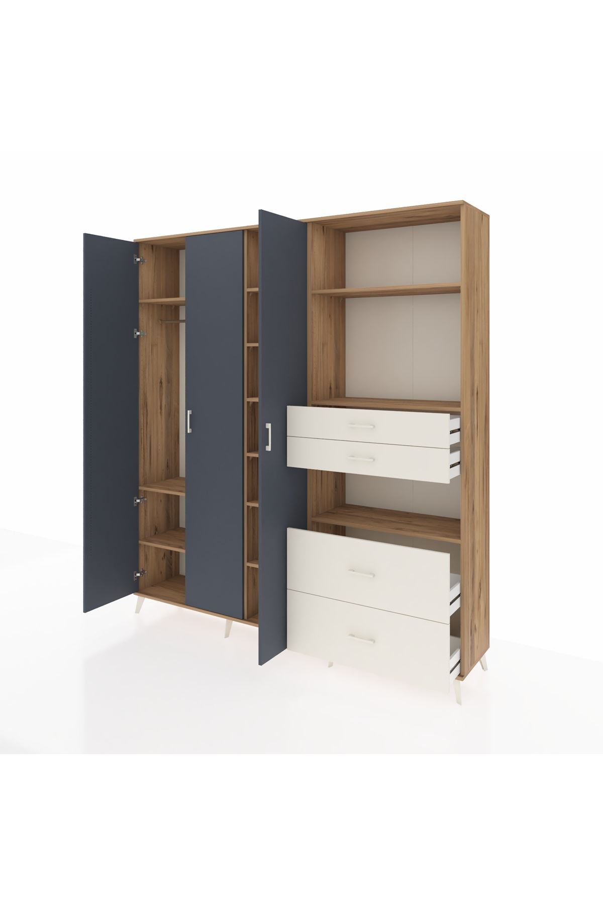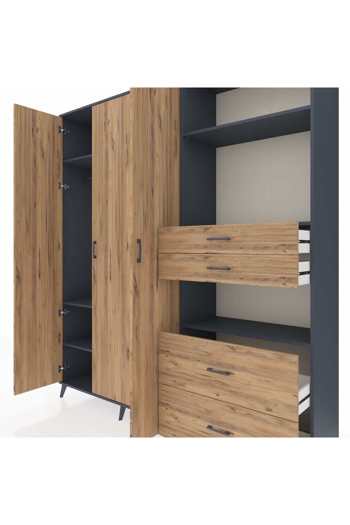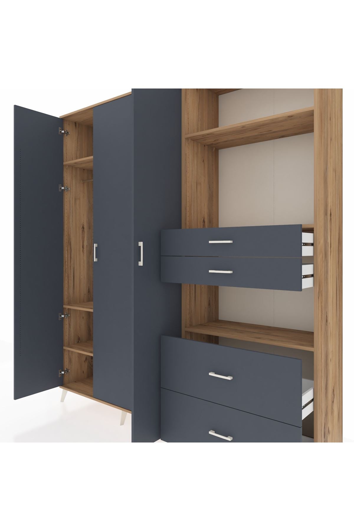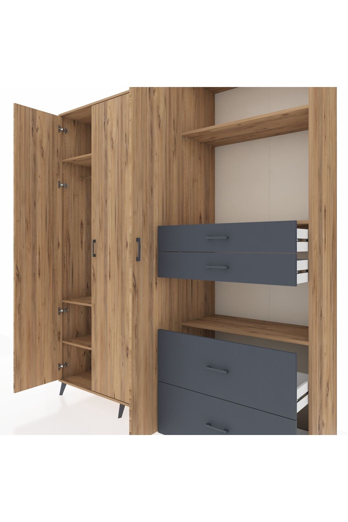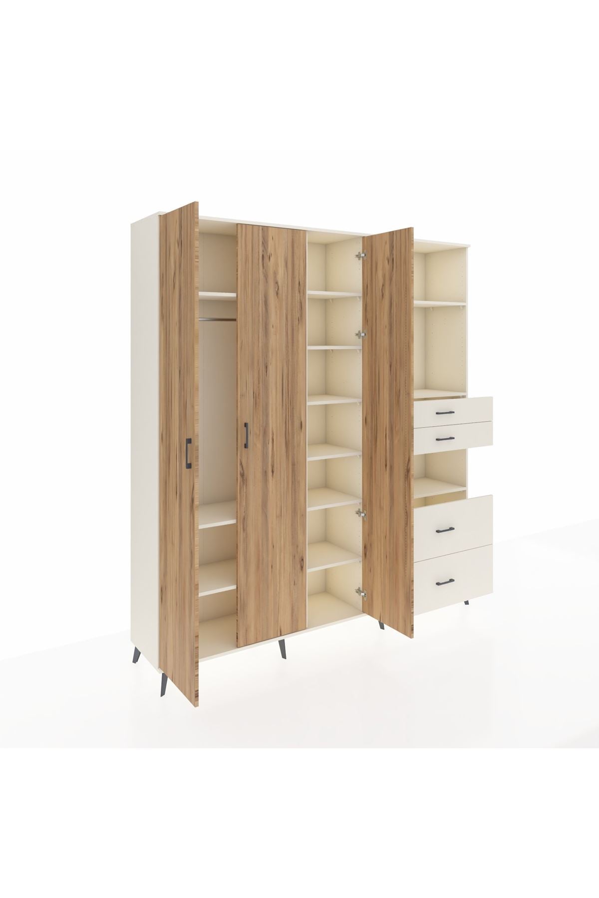 🦾 Dolabımızın metal ayakları, hem modern bir görünüm sağlar hem de sağlam bir zemin oluşturur. Metal kulplar ise dolabın şıklığını tamamlar ve kolay kullanım imkanı sunar.