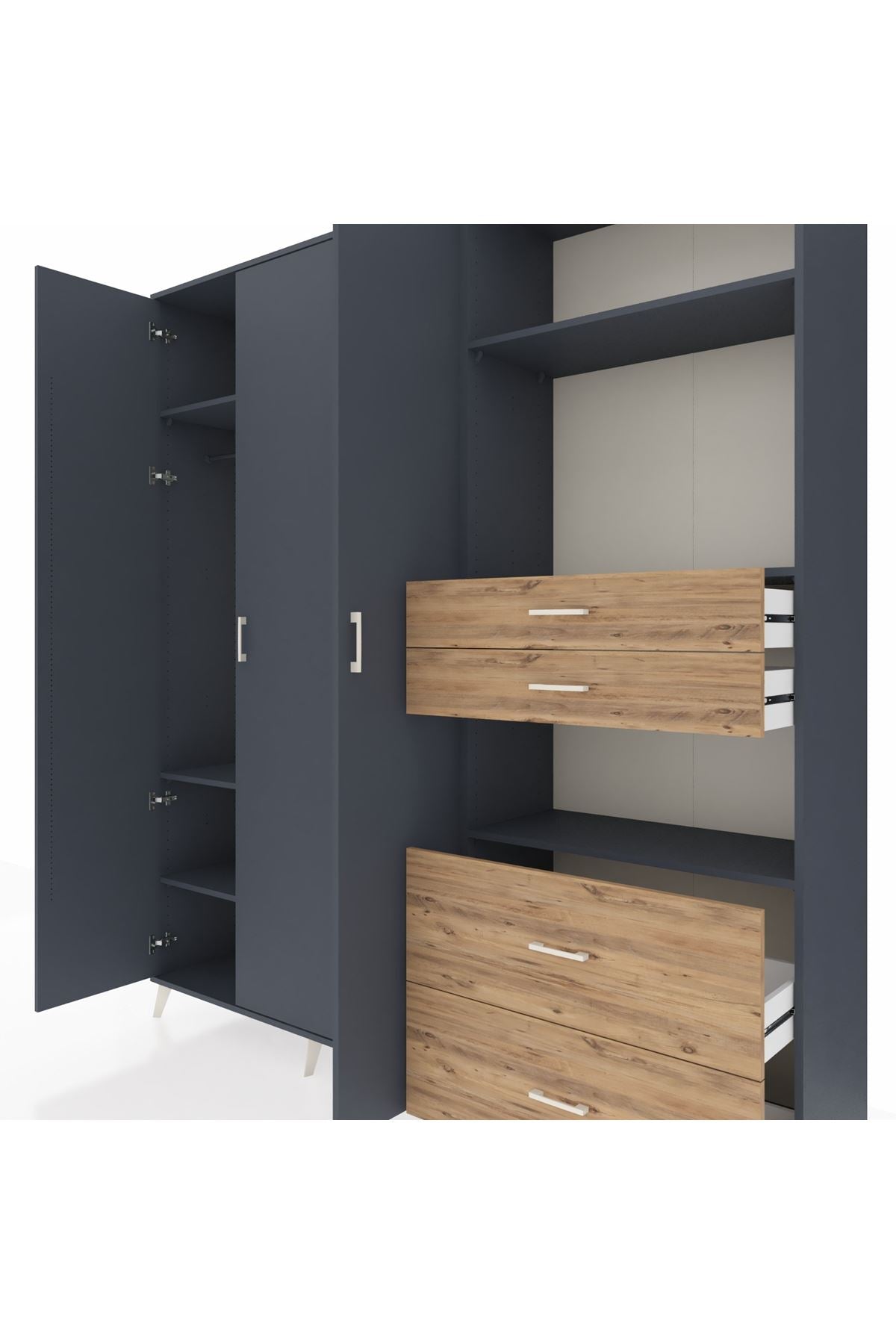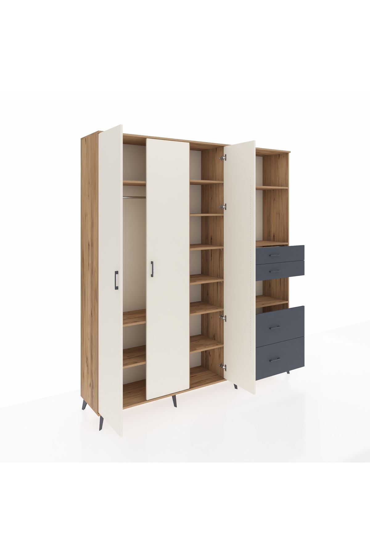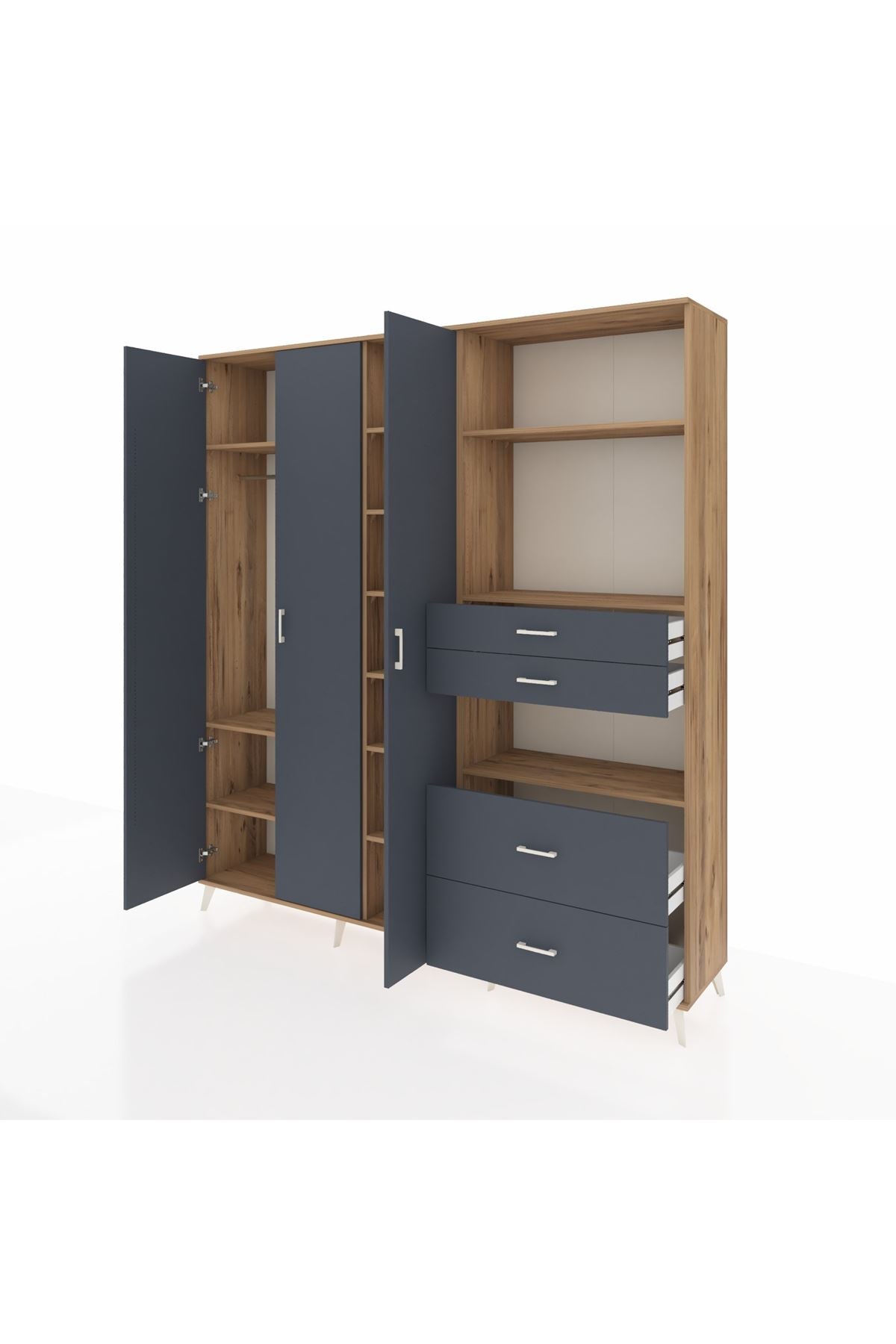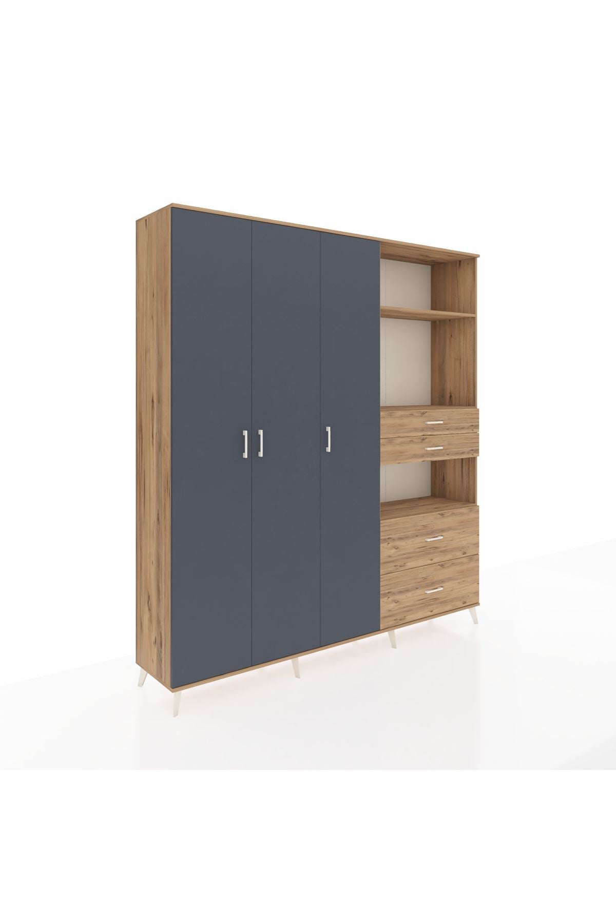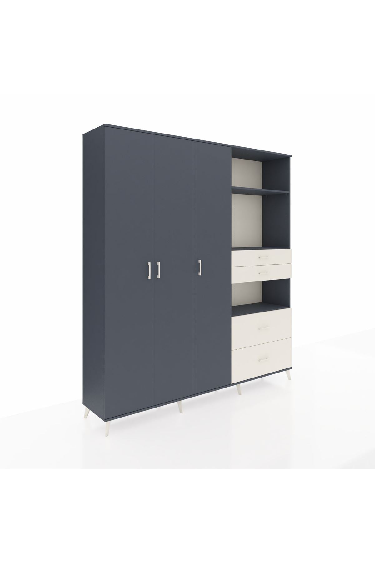 🦾 Dolabımızın metal ayakları, hem modern bir görünüm sağlar hem de sağlam bir zemin oluşturur. Metal kulplar ise dolabın şıklığını tamamlar ve kolay kullanım imkanı sunar.