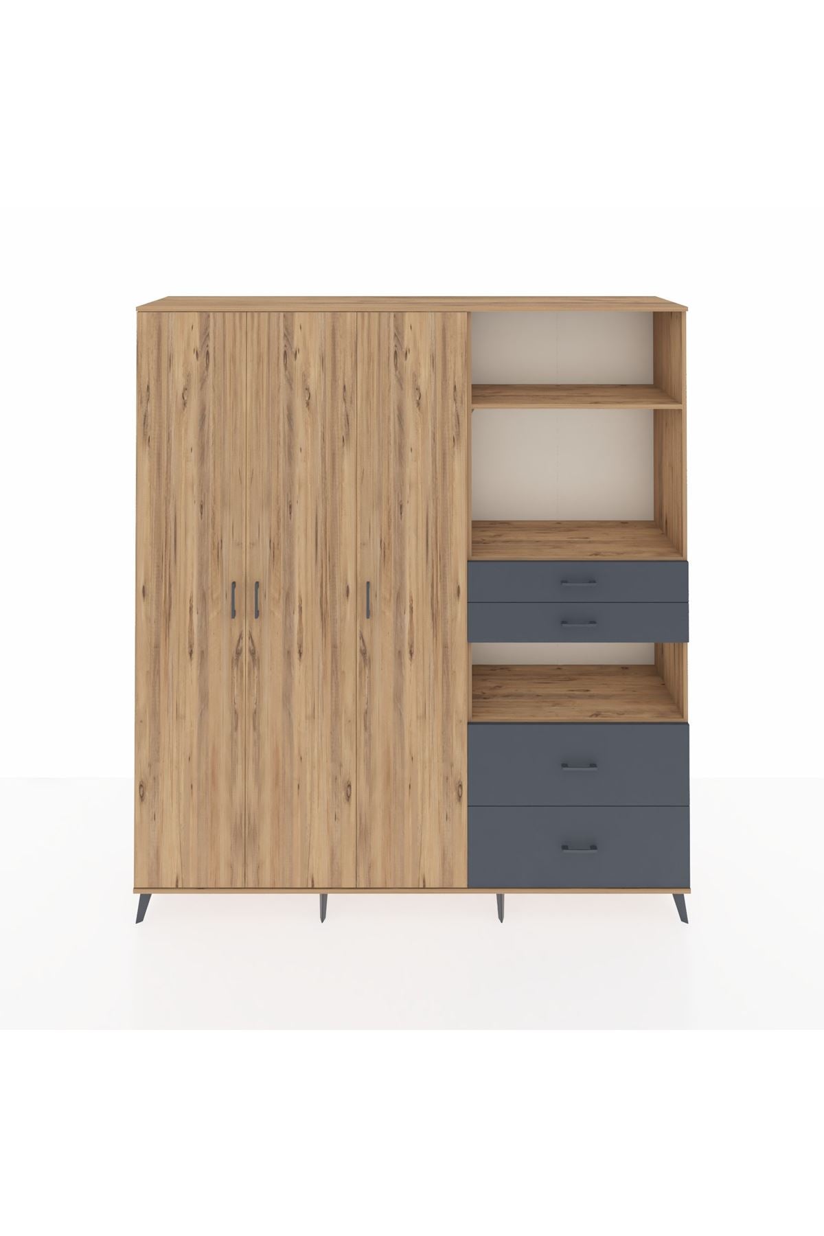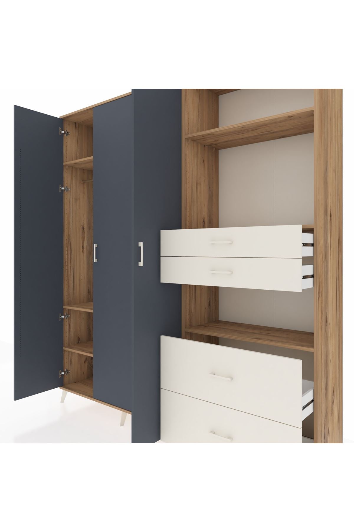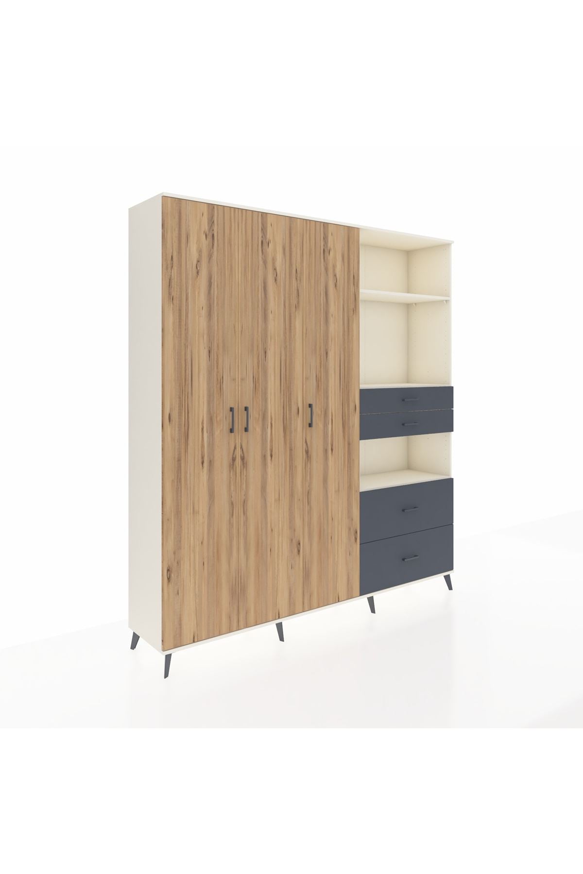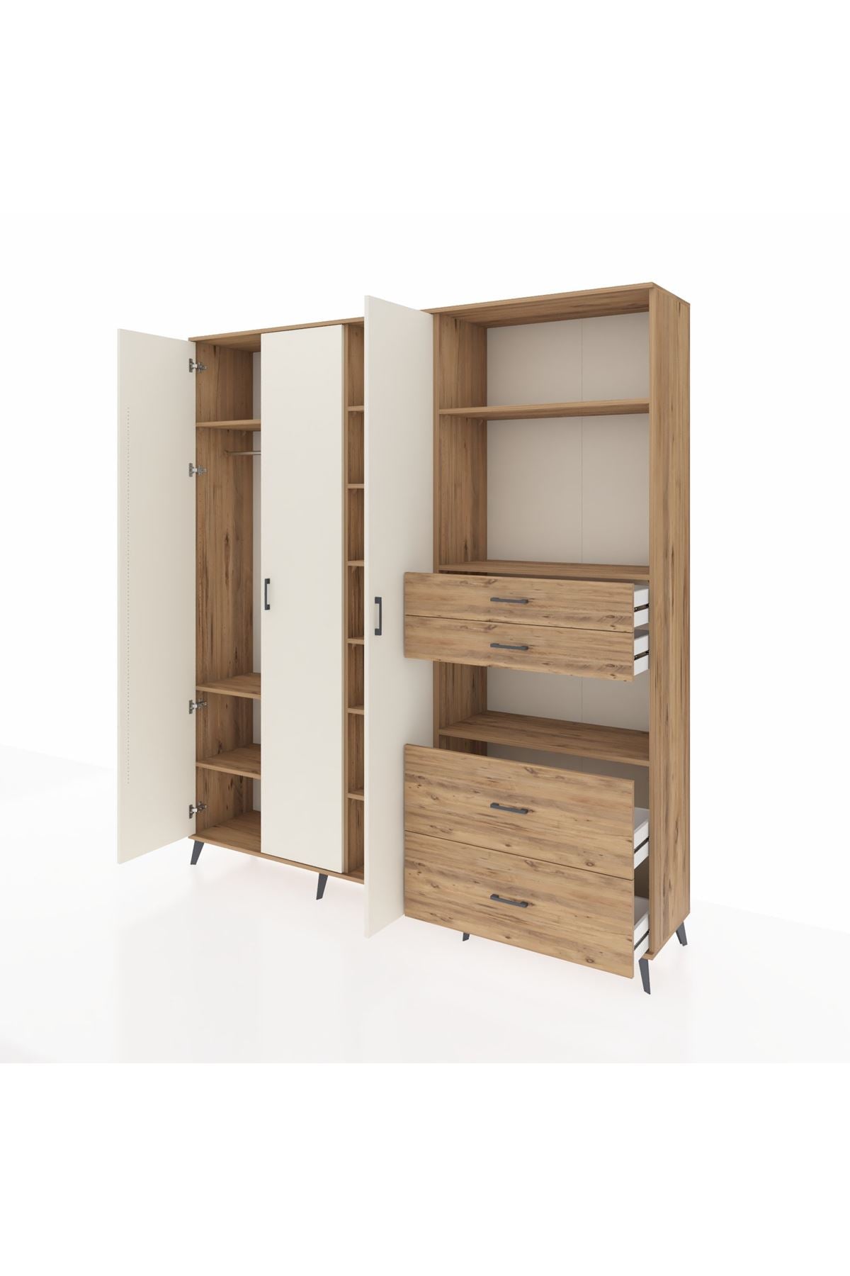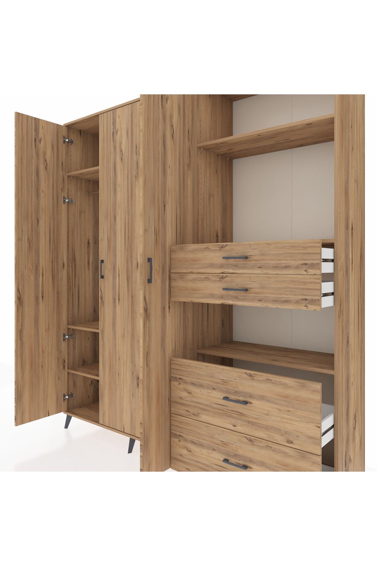 🦾 Dolabımızın metal ayakları, hem modern bir görünüm sağlar hem de sağlam bir zemin oluşturur. Metal kulplar ise dolabın şıklığını tamamlar ve kolay kullanım imkanı sunar.