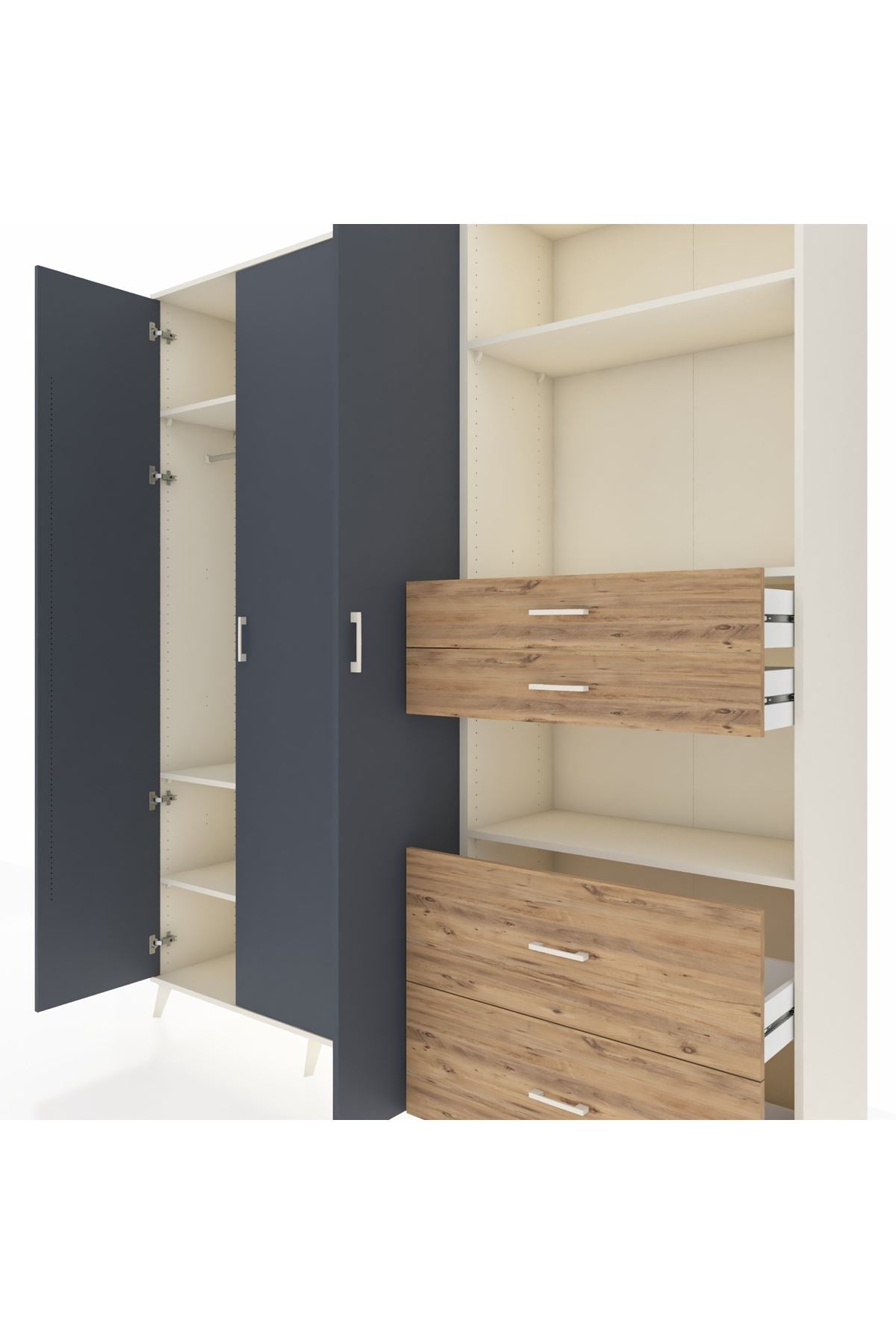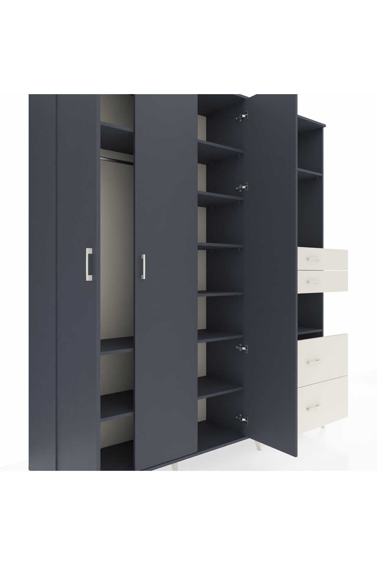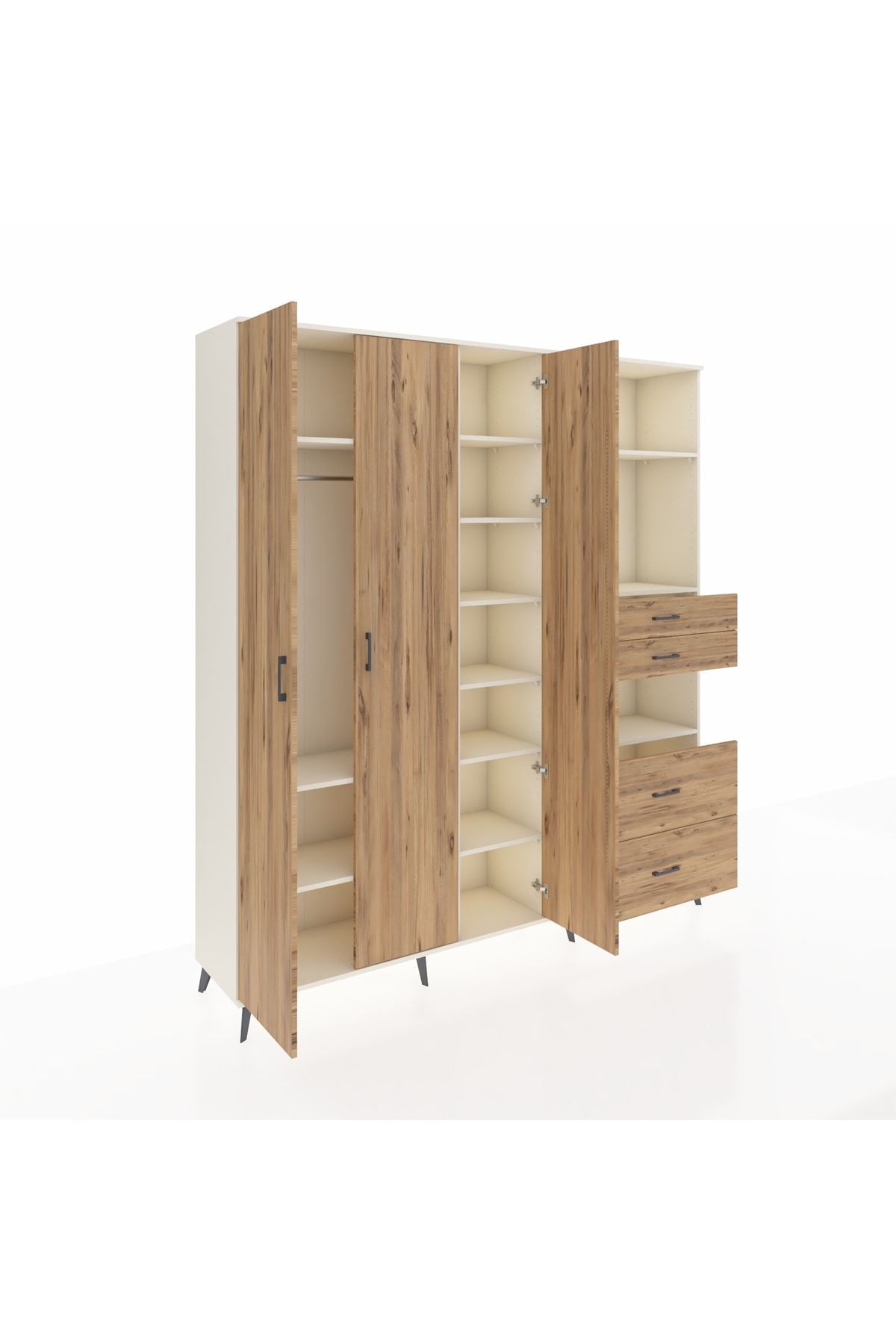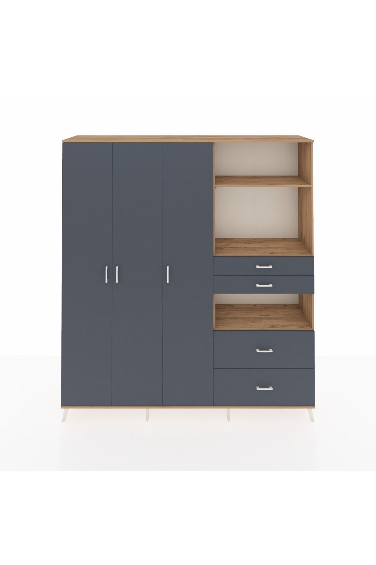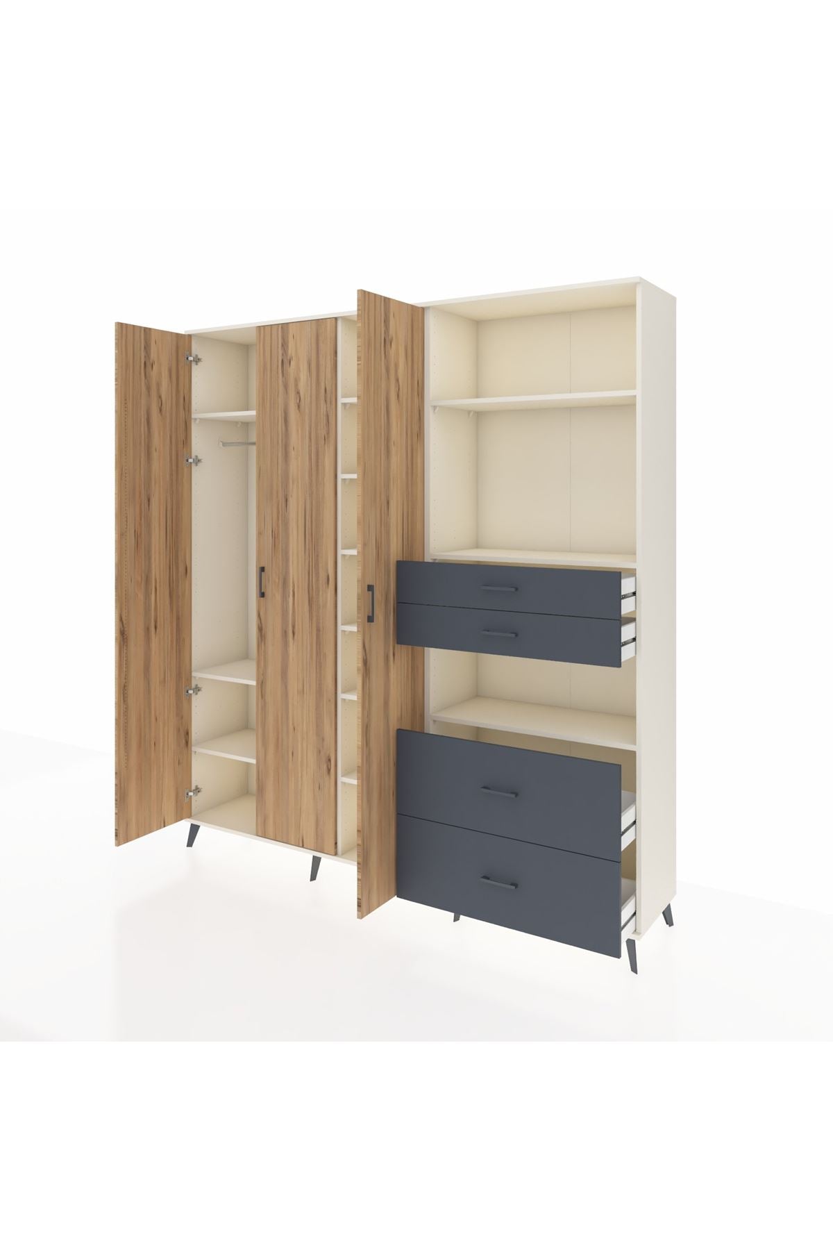 🦾 Dolabımızın metal ayakları, hem modern bir görünüm sağlar hem de sağlam bir zemin oluşturur. Metal kulplar ise dolabın şıklığını tamamlar ve kolay kullanım imkanı sunar.