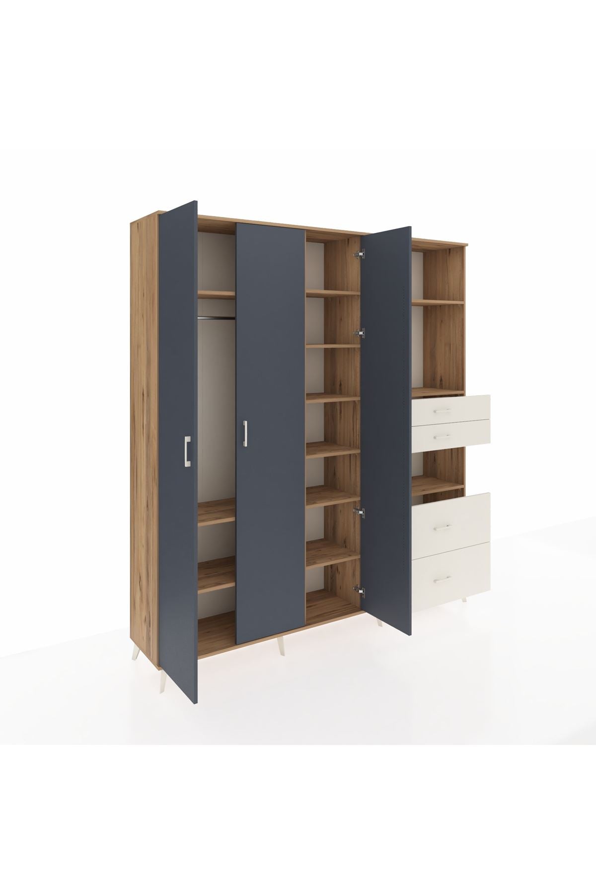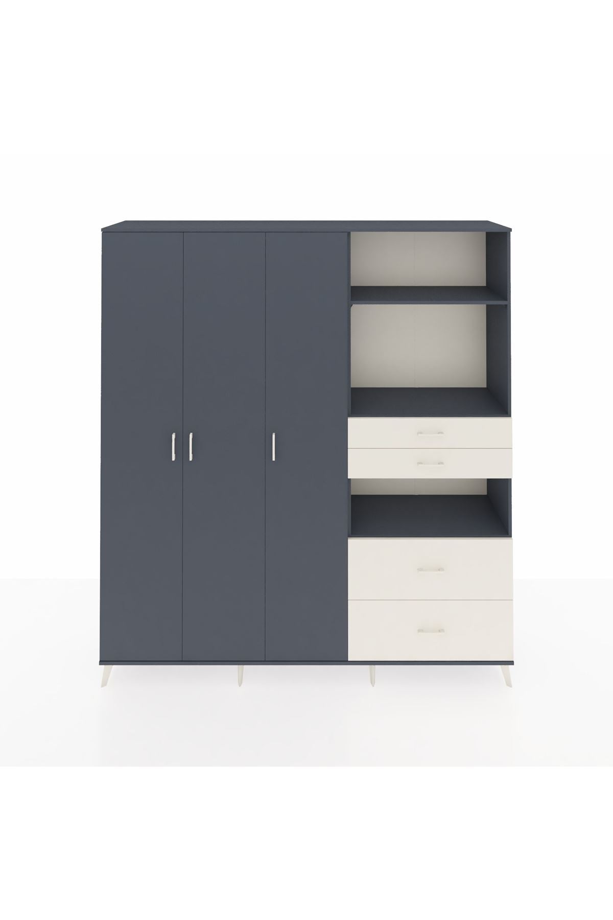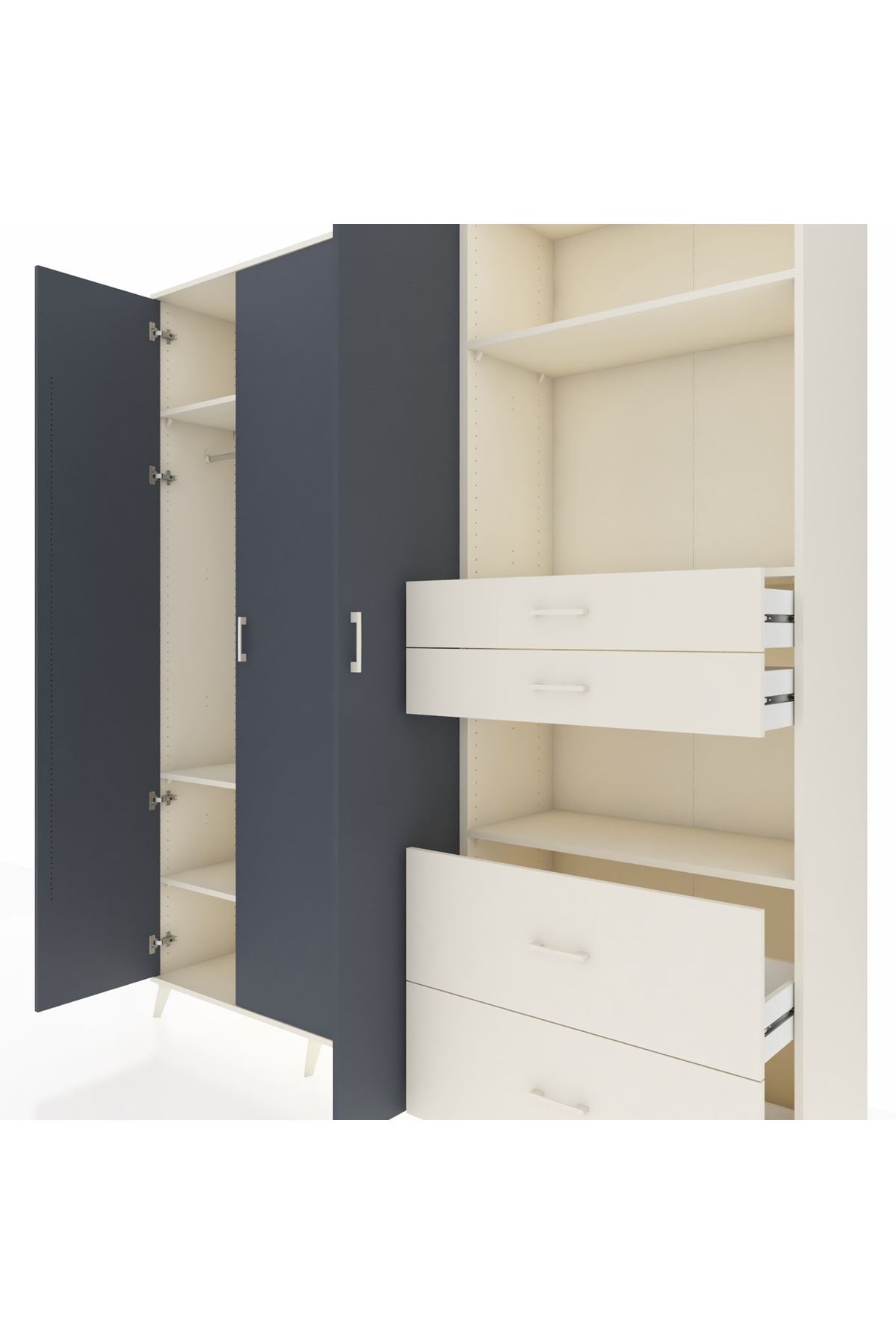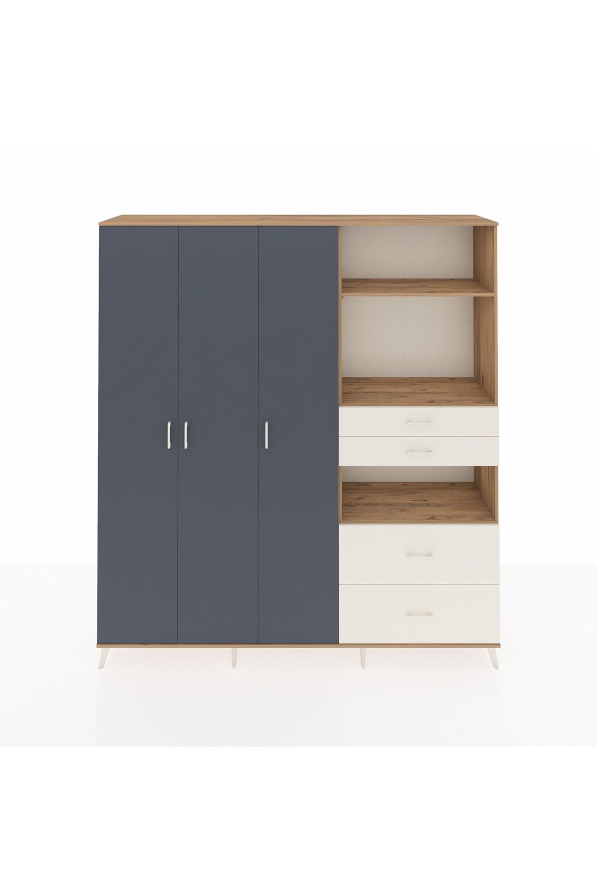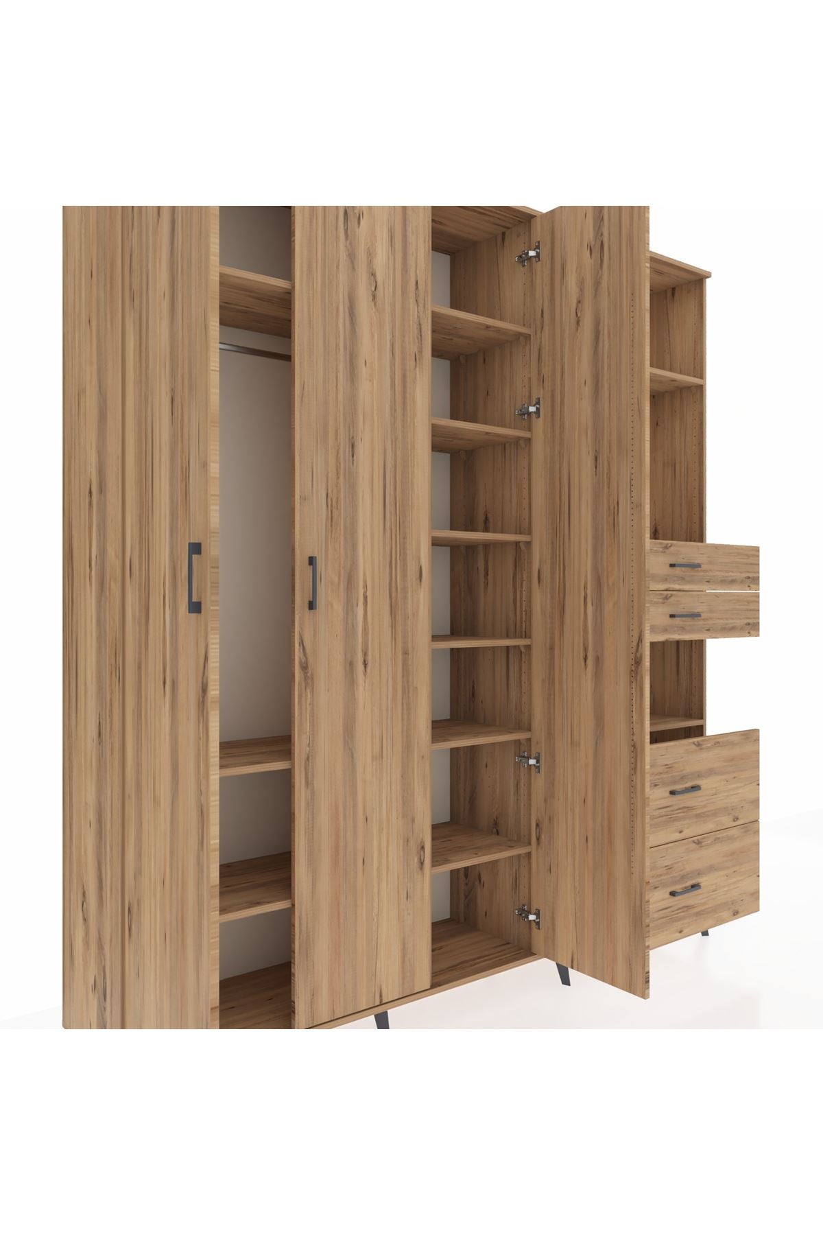 🦾 Dolabımızın metal ayakları, hem modern bir görünüm sağlar hem de sağlam bir zemin oluşturur. Metal kulplar ise dolabın şıklığını tamamlar ve kolay kullanım imkanı sunar.
