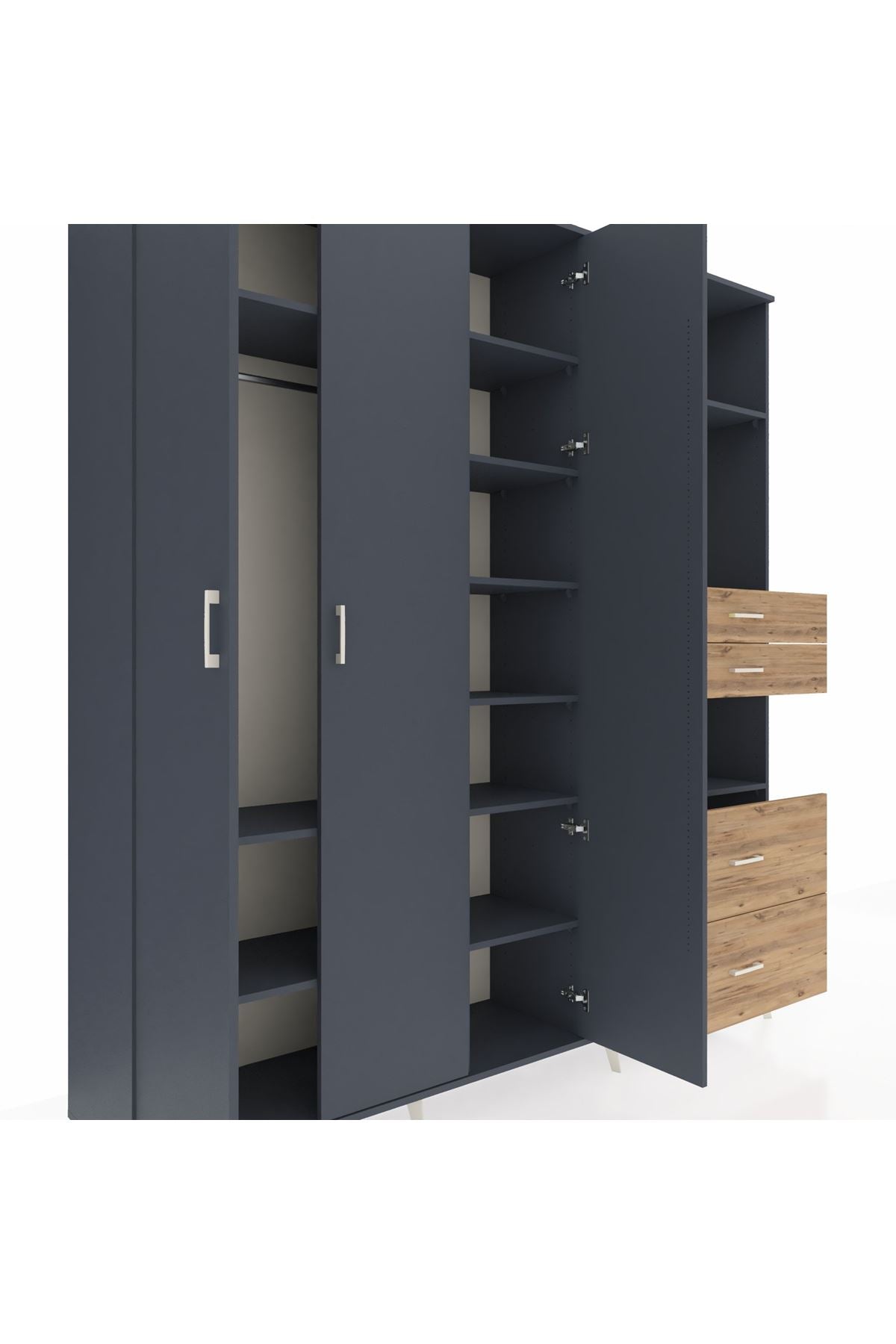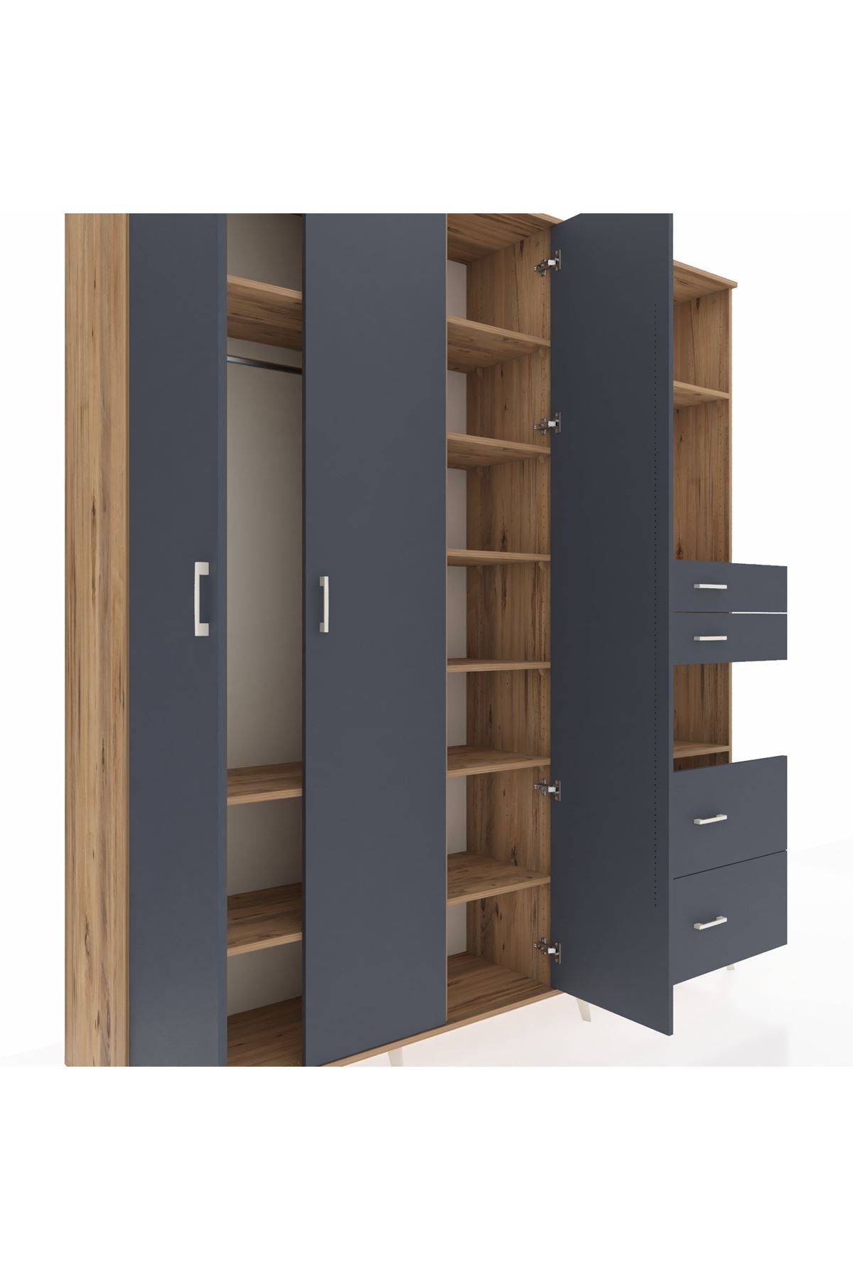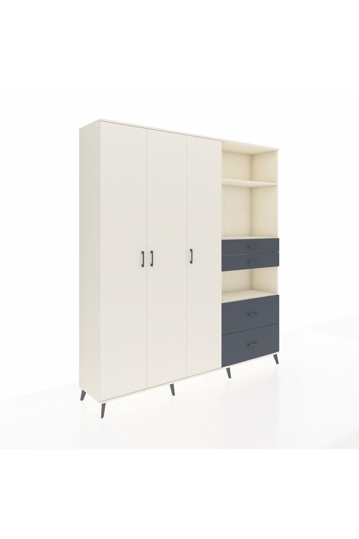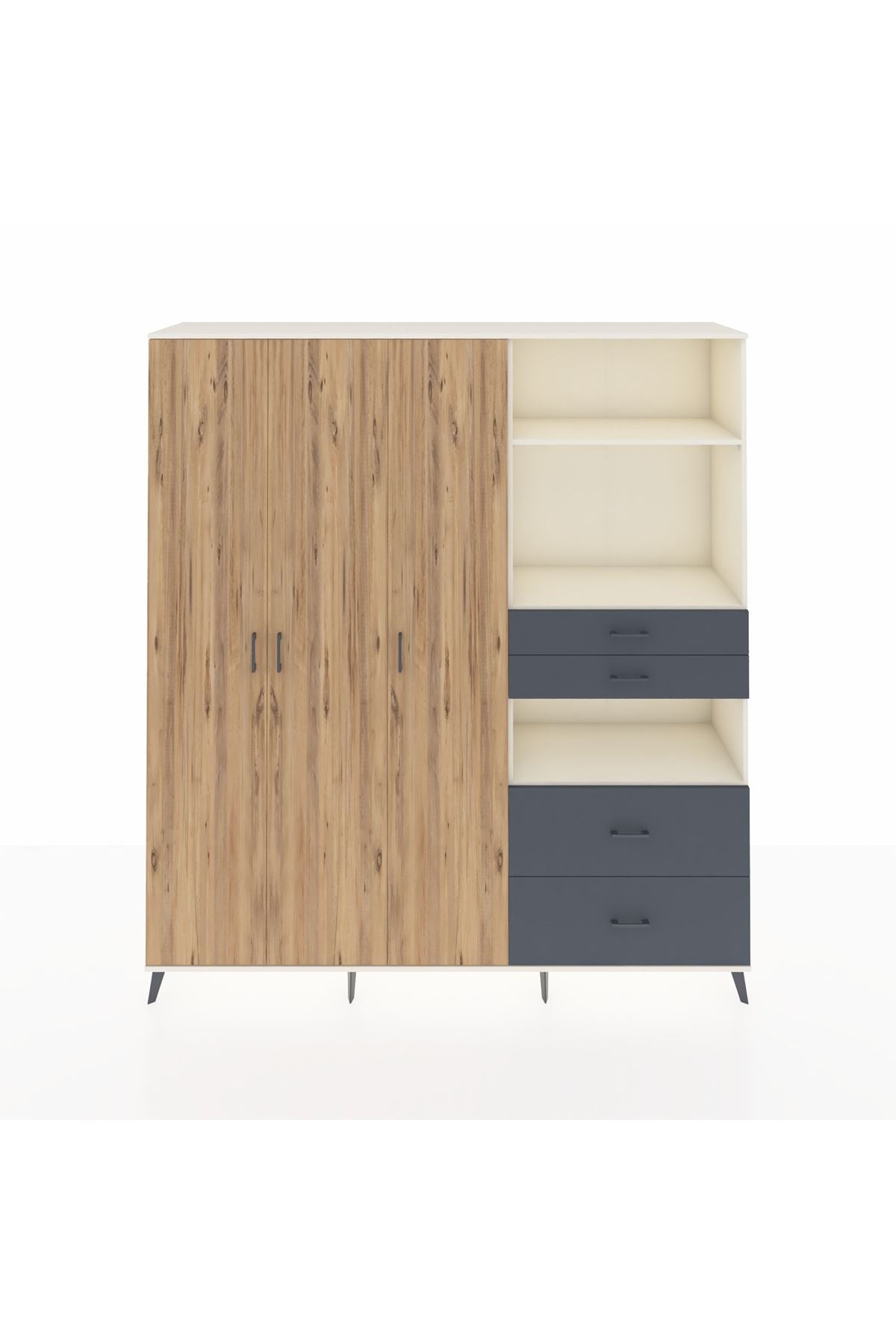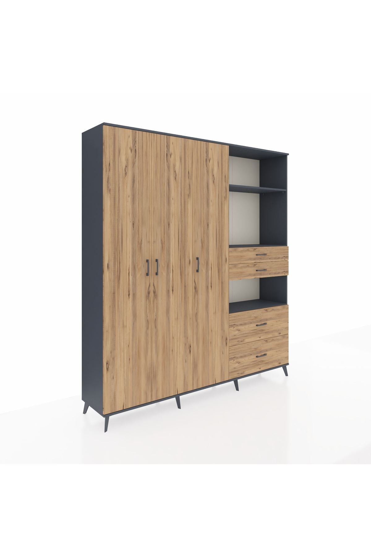 🦾 Dolabımızın metal ayakları, hem modern bir görünüm sağlar hem de sağlam bir zemin oluşturur. Metal kulplar ise dolabın şıklığını tamamlar ve kolay kullanım imkanı sunar.