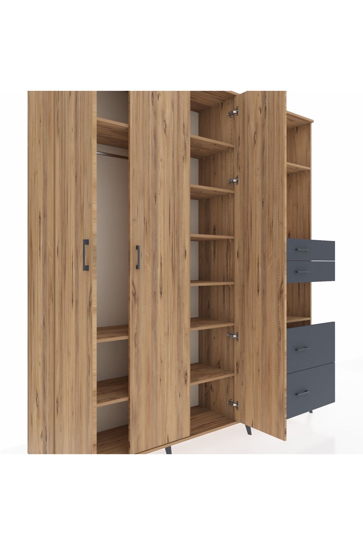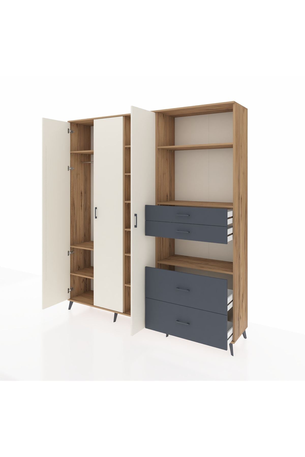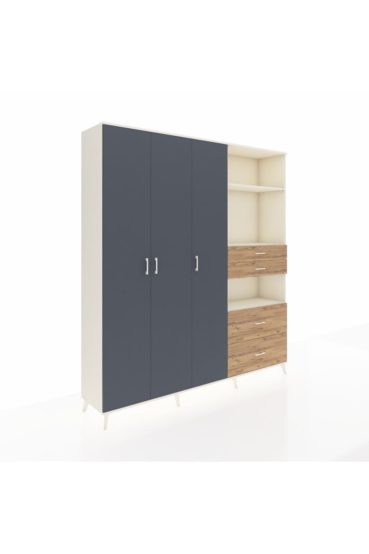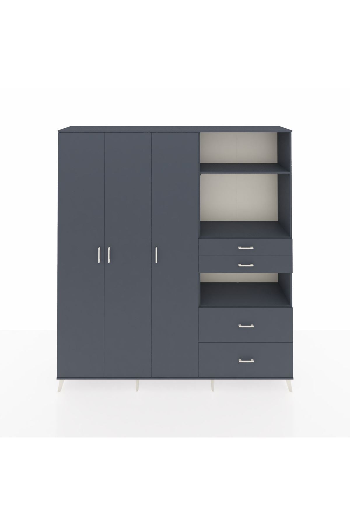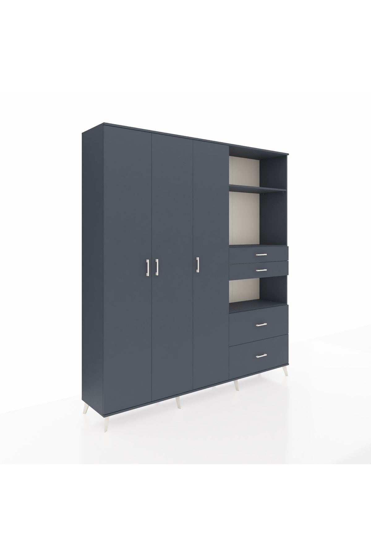 🦾 Dolabımızın metal ayakları, hem modern bir görünüm sağlar hem de sağlam bir zemin oluşturur. Metal kulplar ise dolabın şıklığını tamamlar ve kolay kullanım imkanı sunar.