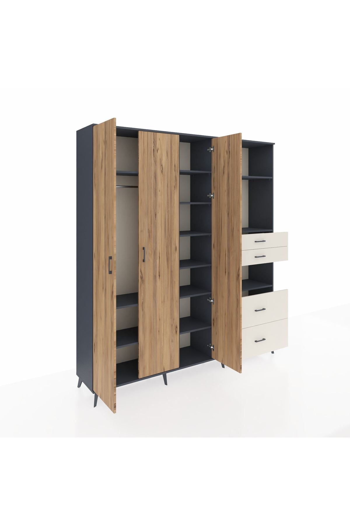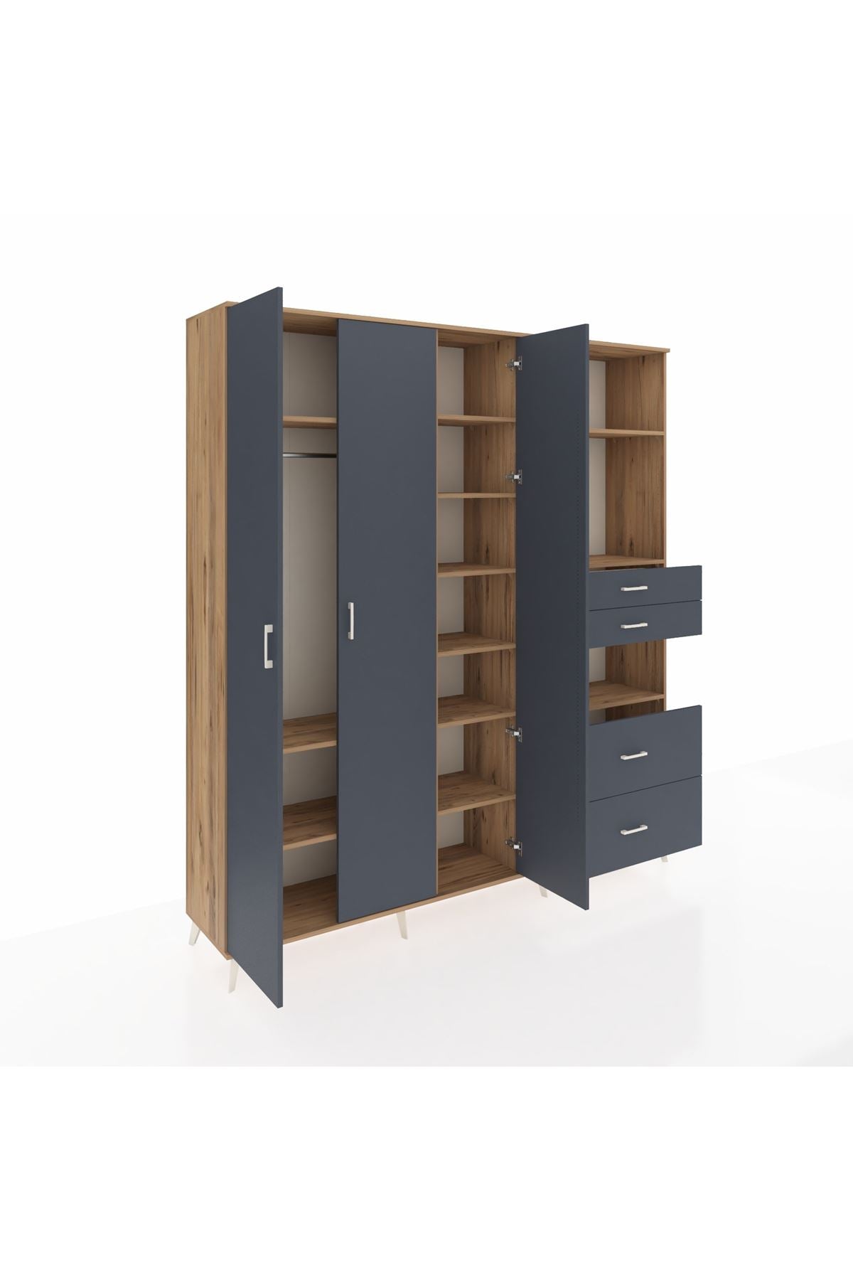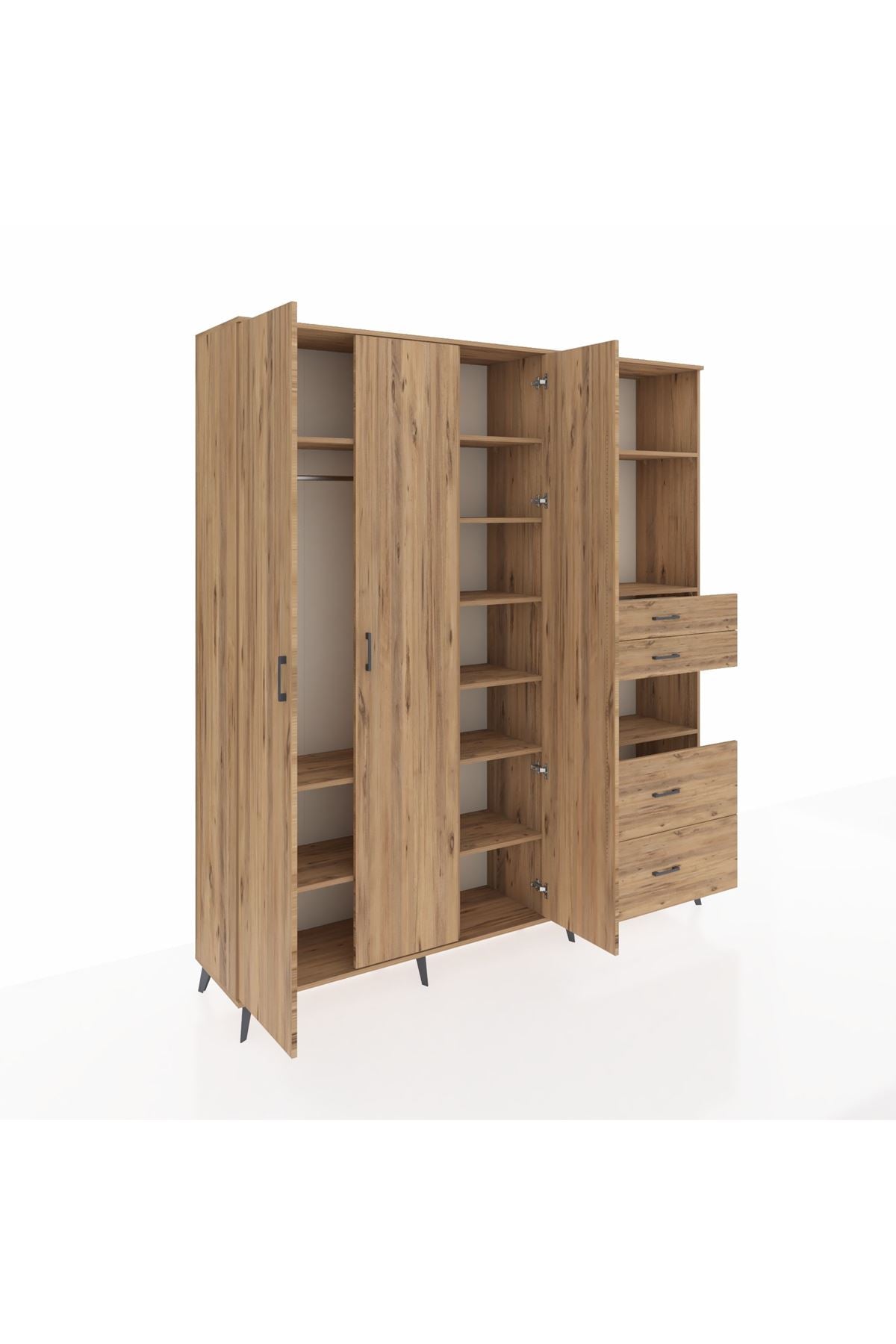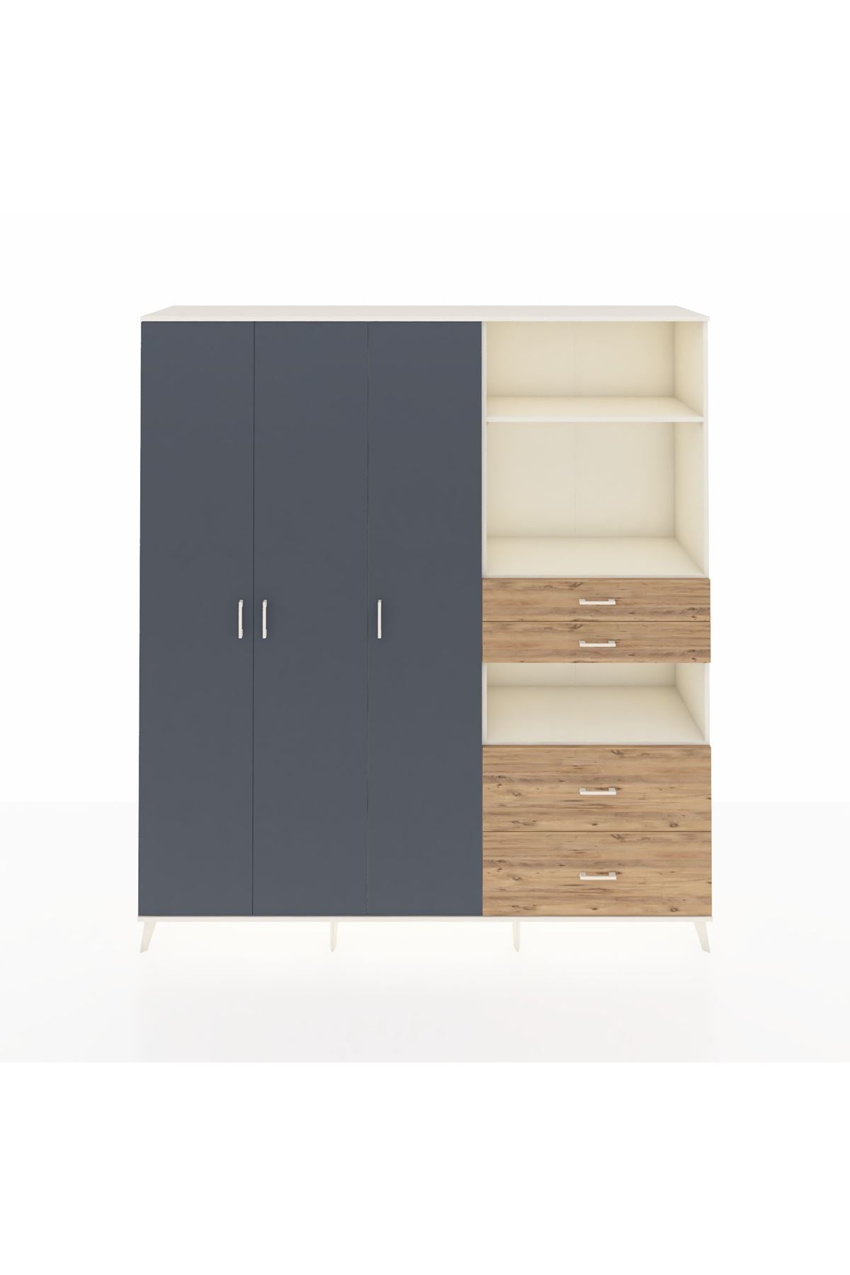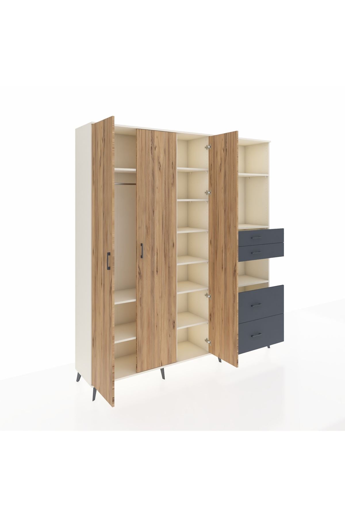 🦾 Dolabımızın metal ayakları, hem modern bir görünüm sağlar hem de sağlam bir zemin oluşturur. Metal kulplar ise dolabın şıklığını tamamlar ve kolay kullanım imkanı sunar.