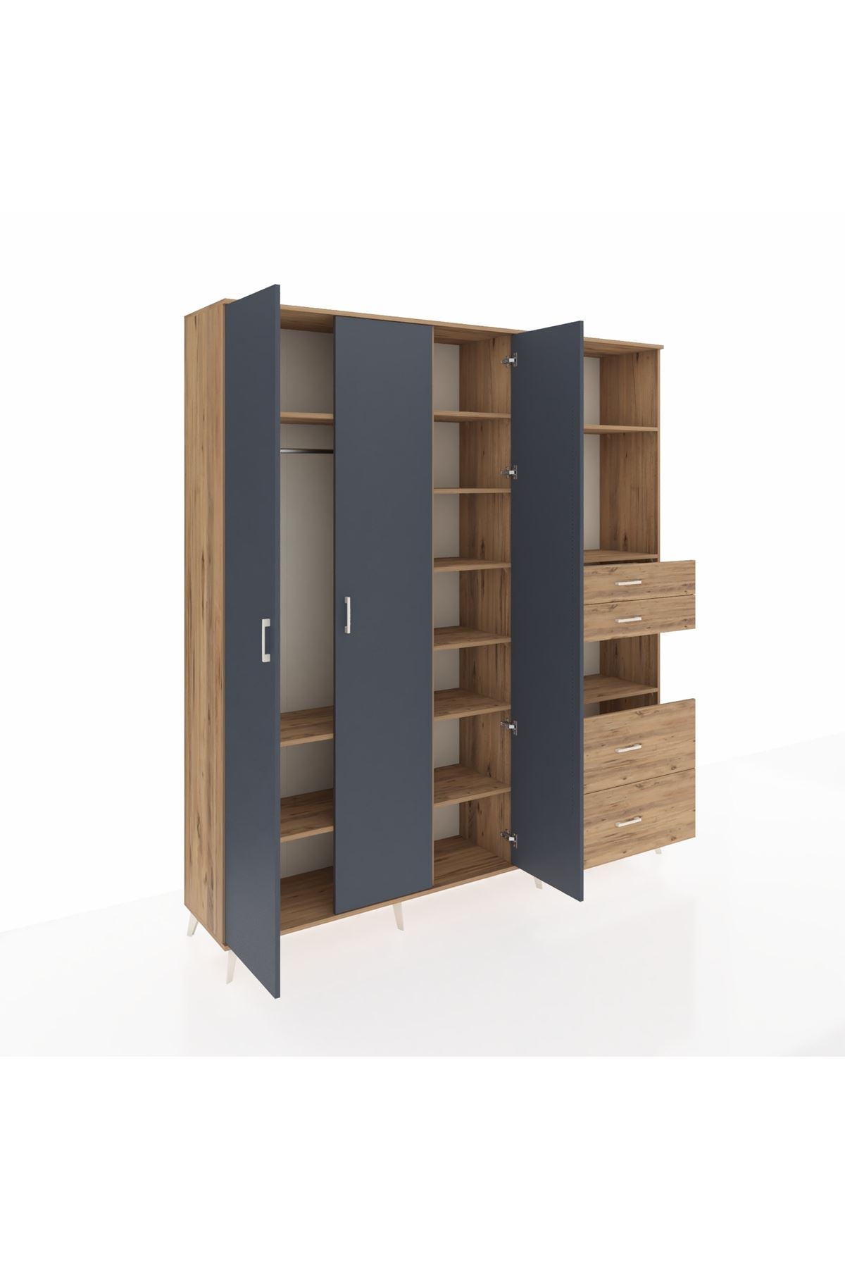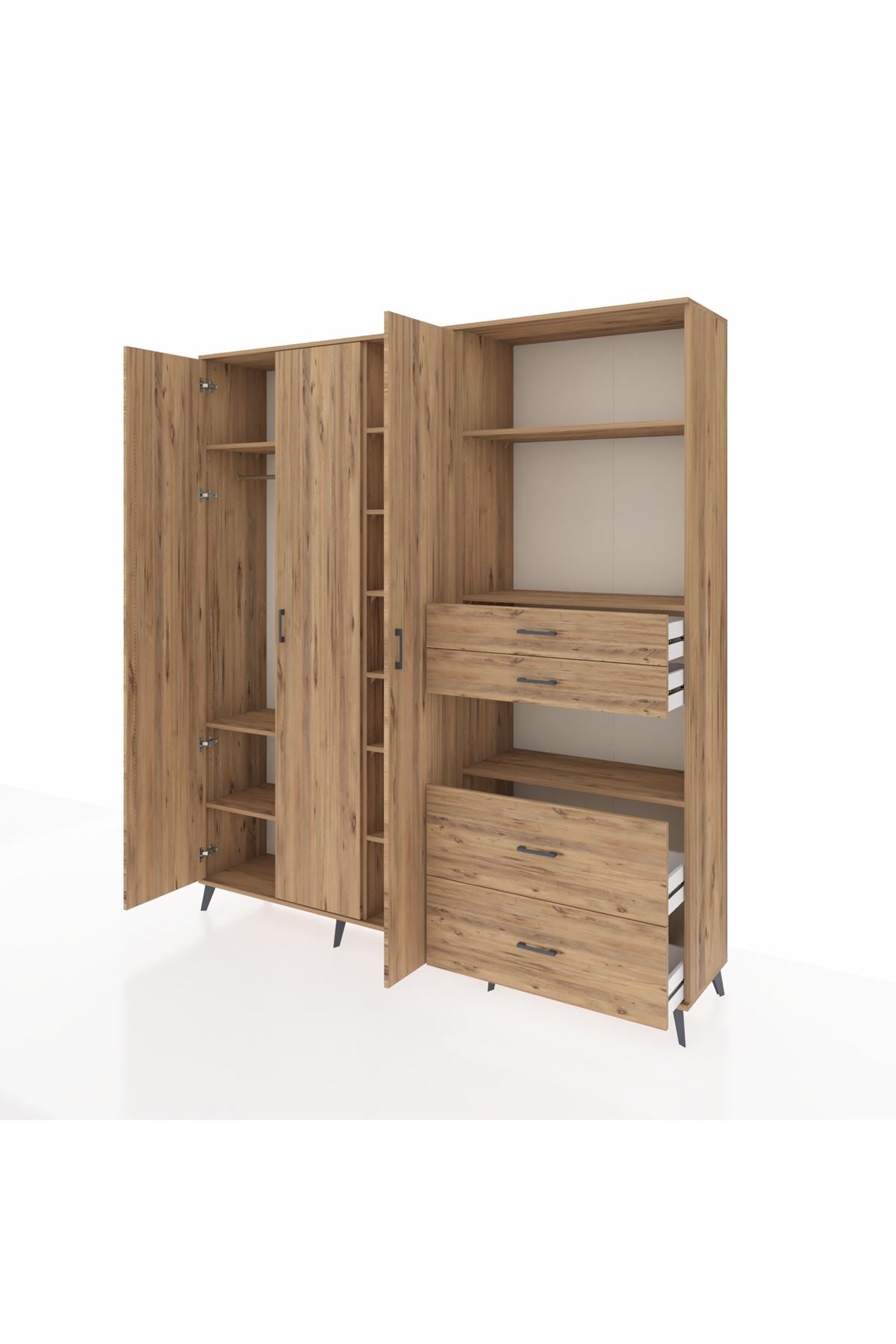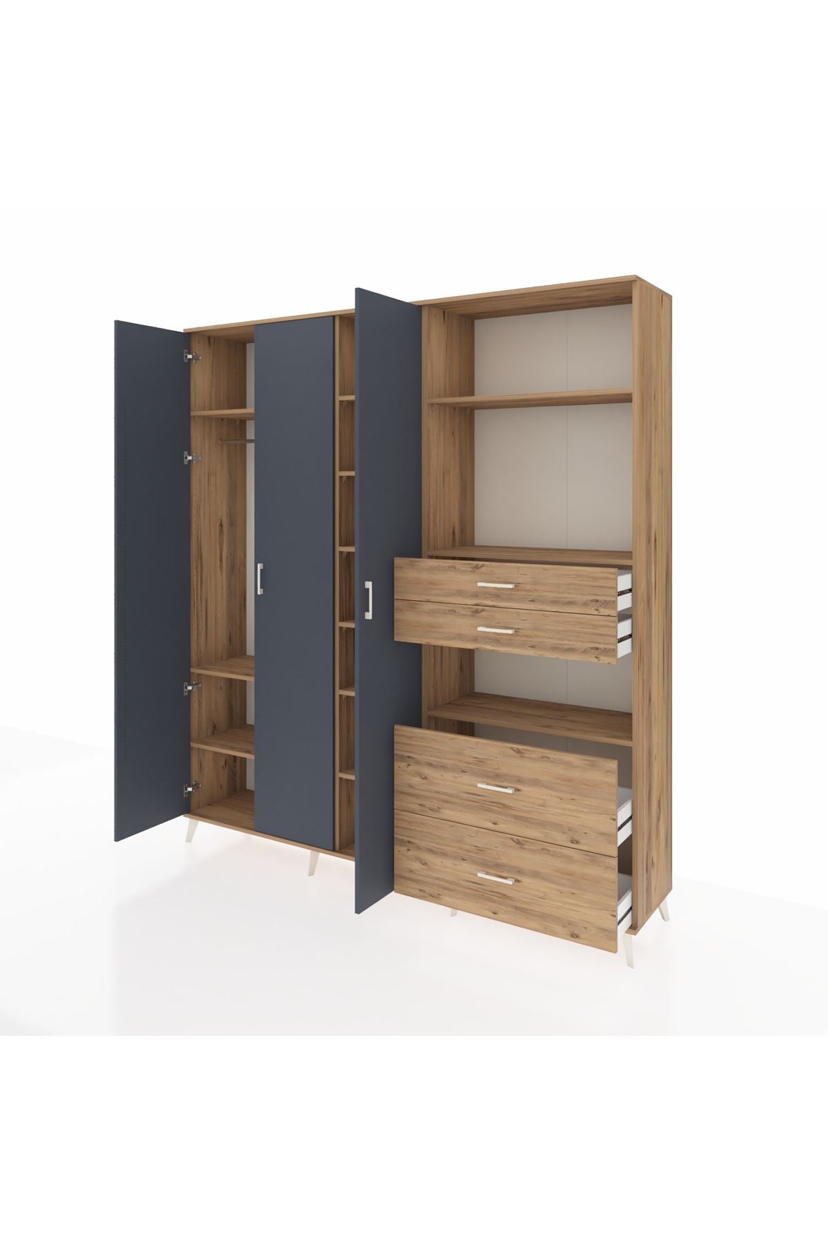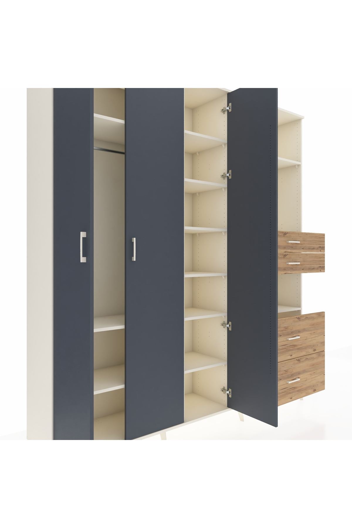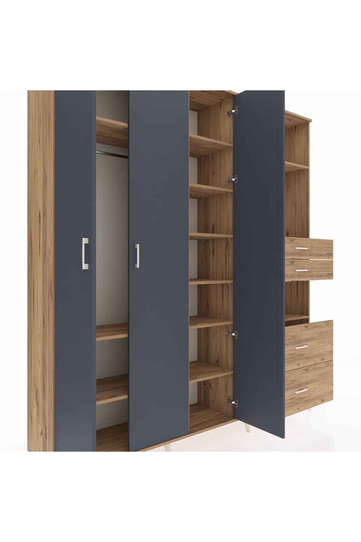 🦾 Dolabımızın metal ayakları, hem modern bir görünüm sağlar hem de sağlam bir zemin oluşturur. Metal kulplar ise dolabın şıklığını tamamlar ve kolay kullanım imkanı sunar.