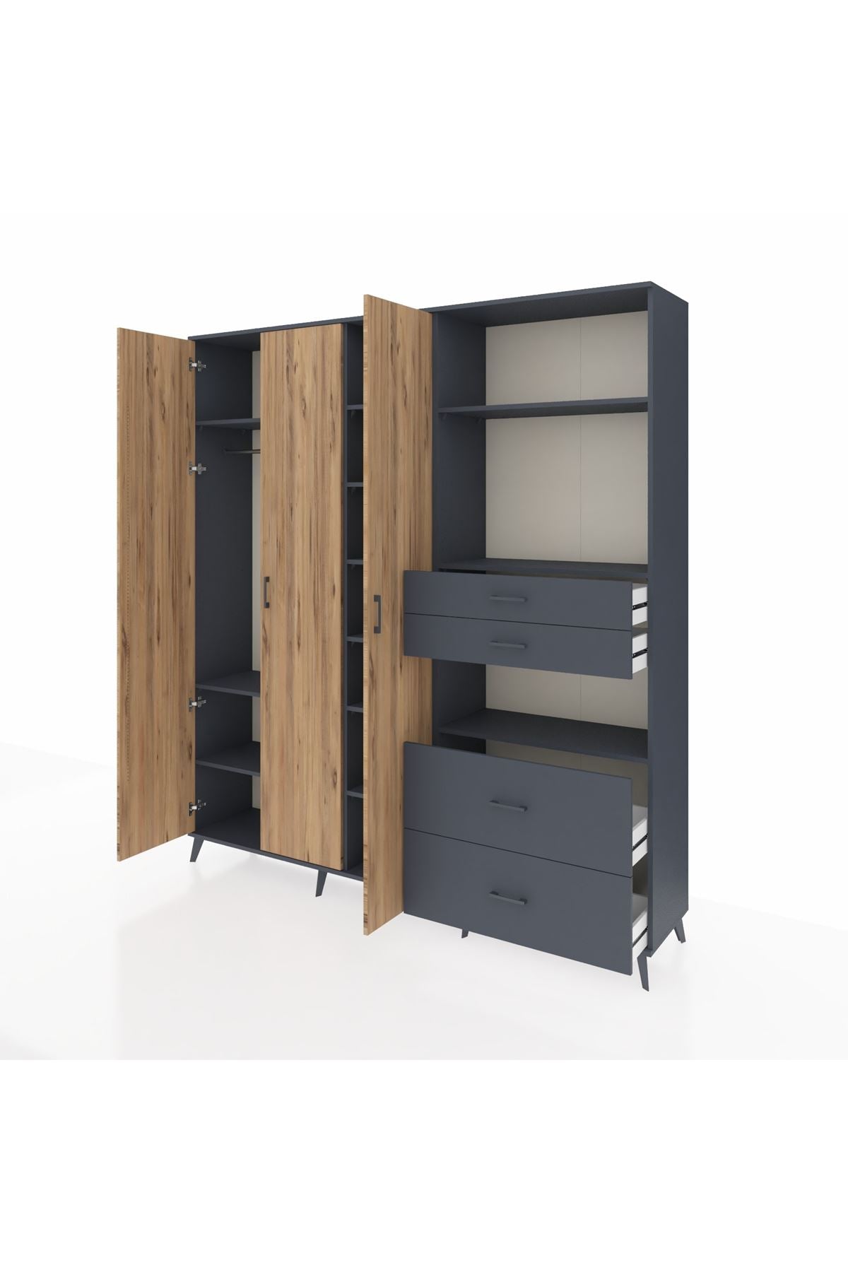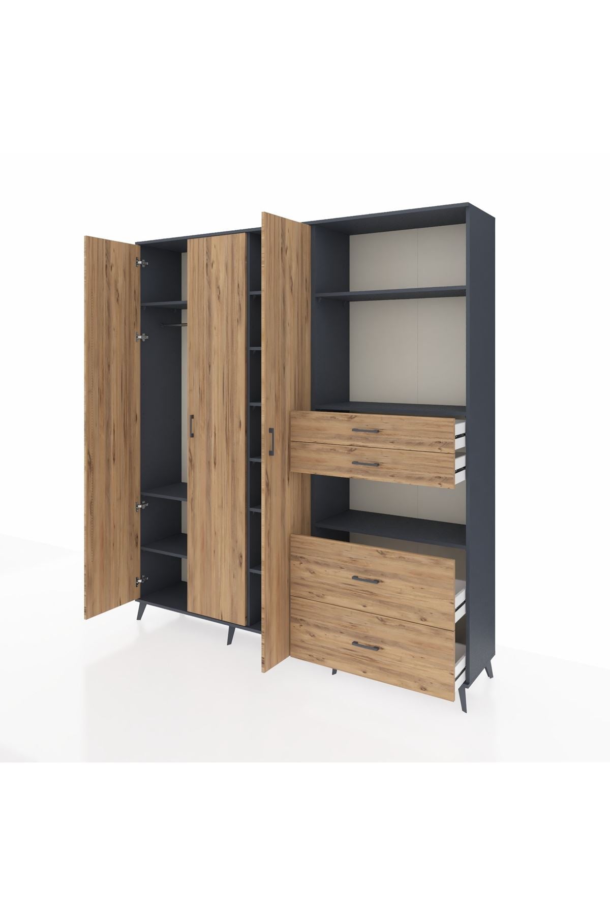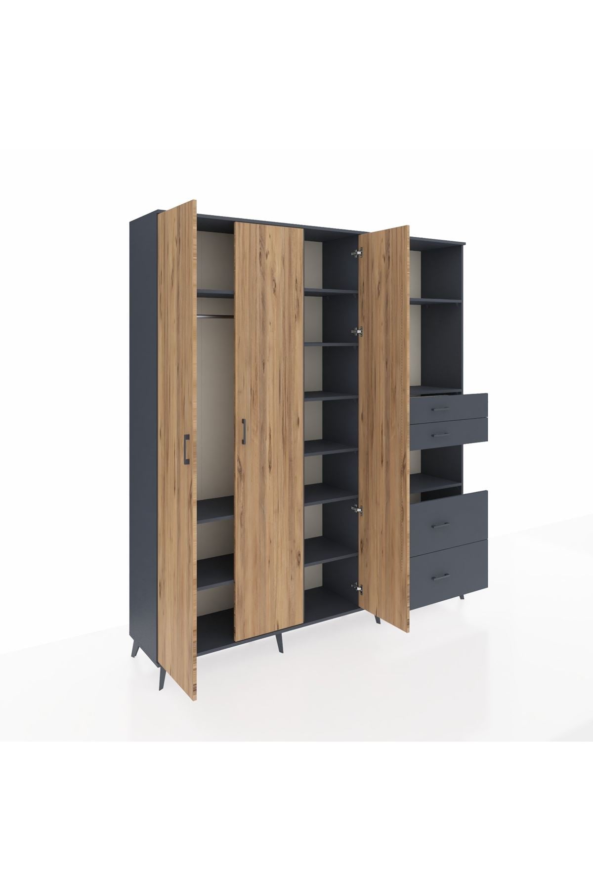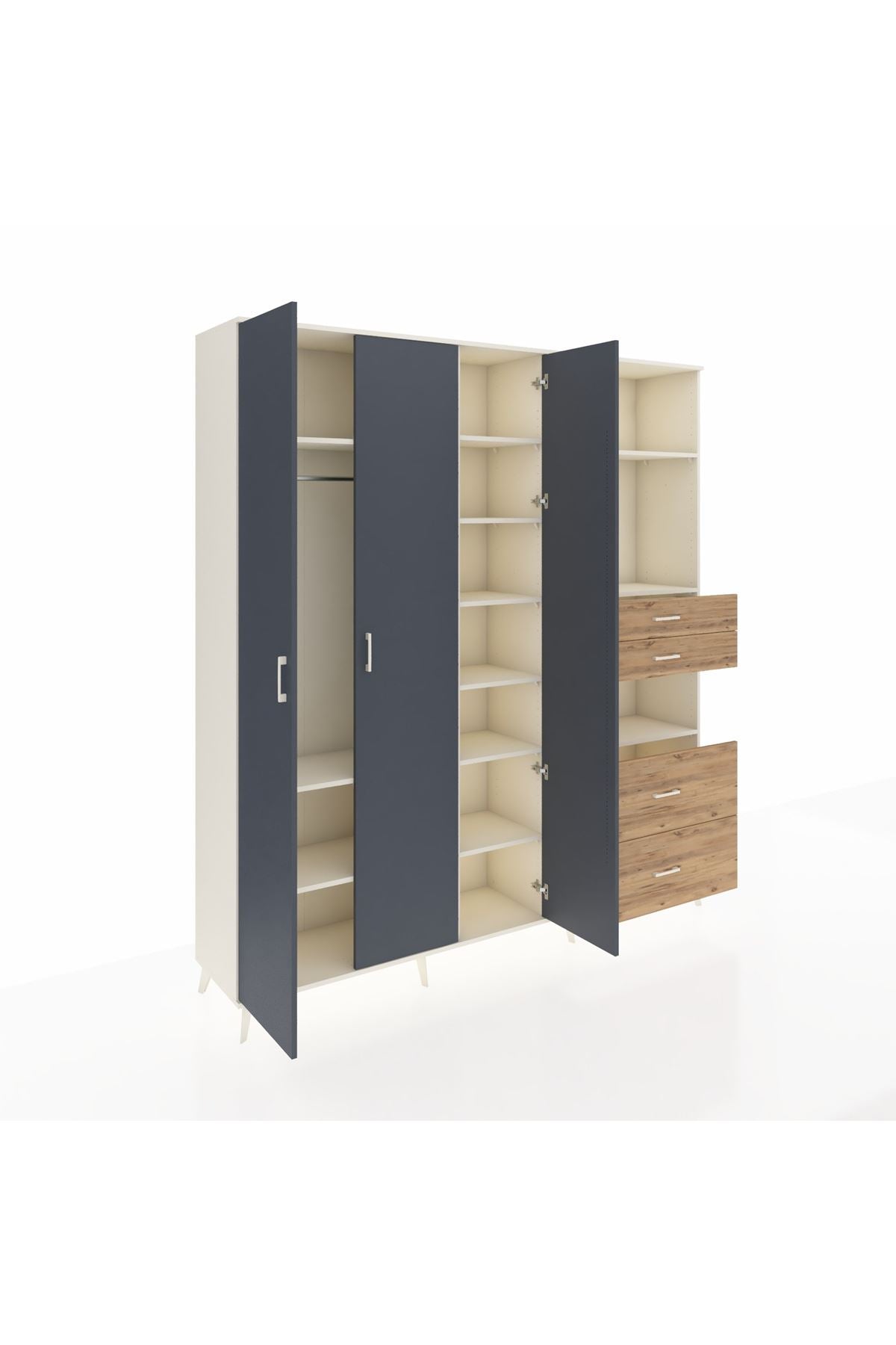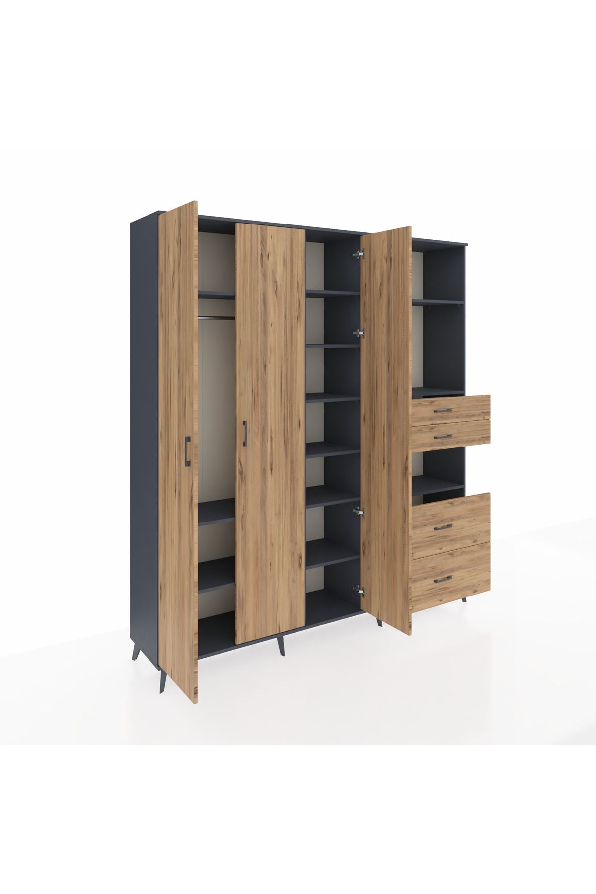 🦾 Dolabımızın metal ayakları, hem modern bir görünüm sağlar hem de sağlam bir zemin oluşturur. Metal kulplar ise dolabın şıklığını tamamlar ve kolay kullanım imkanı sunar.