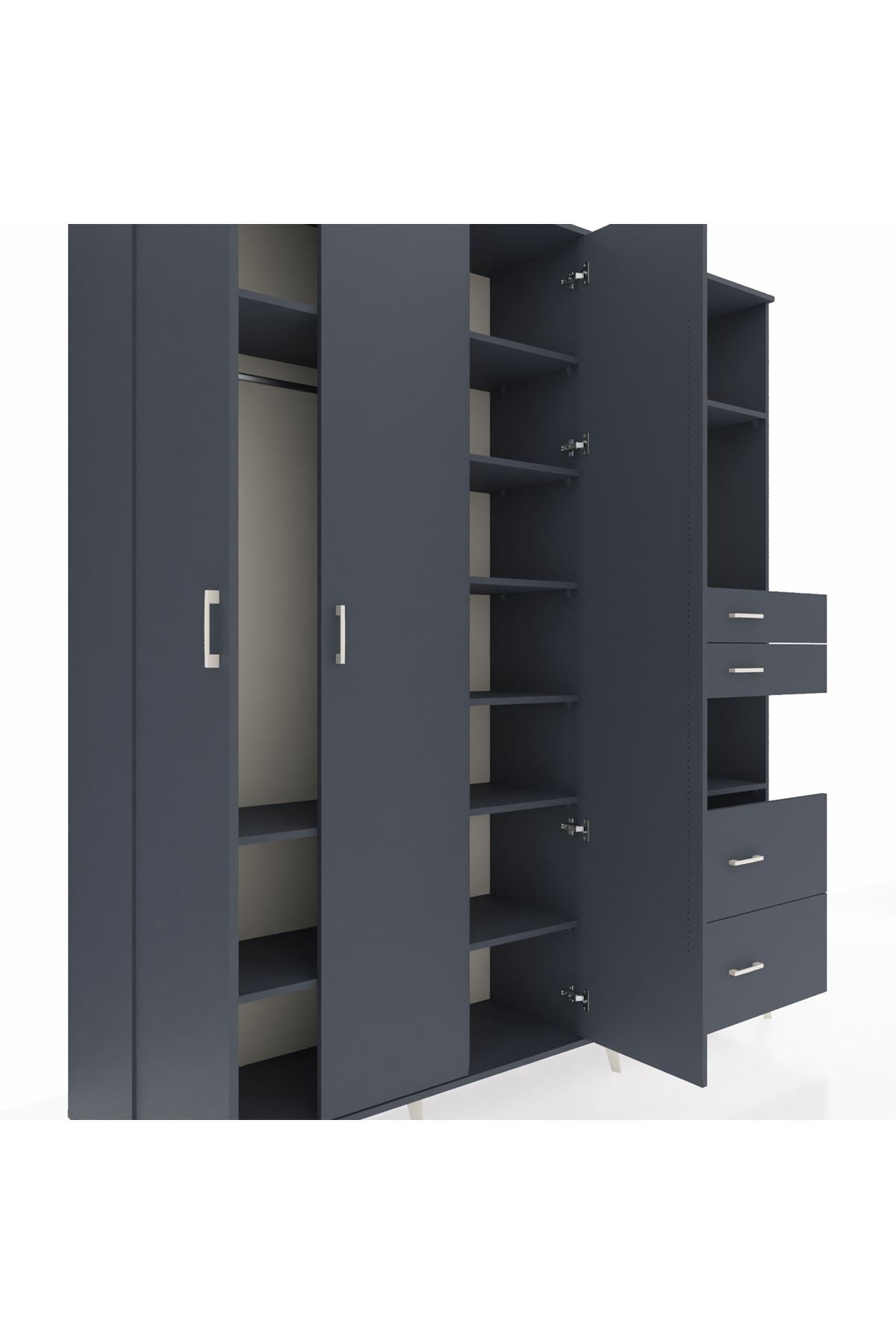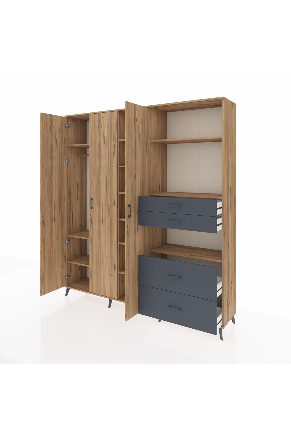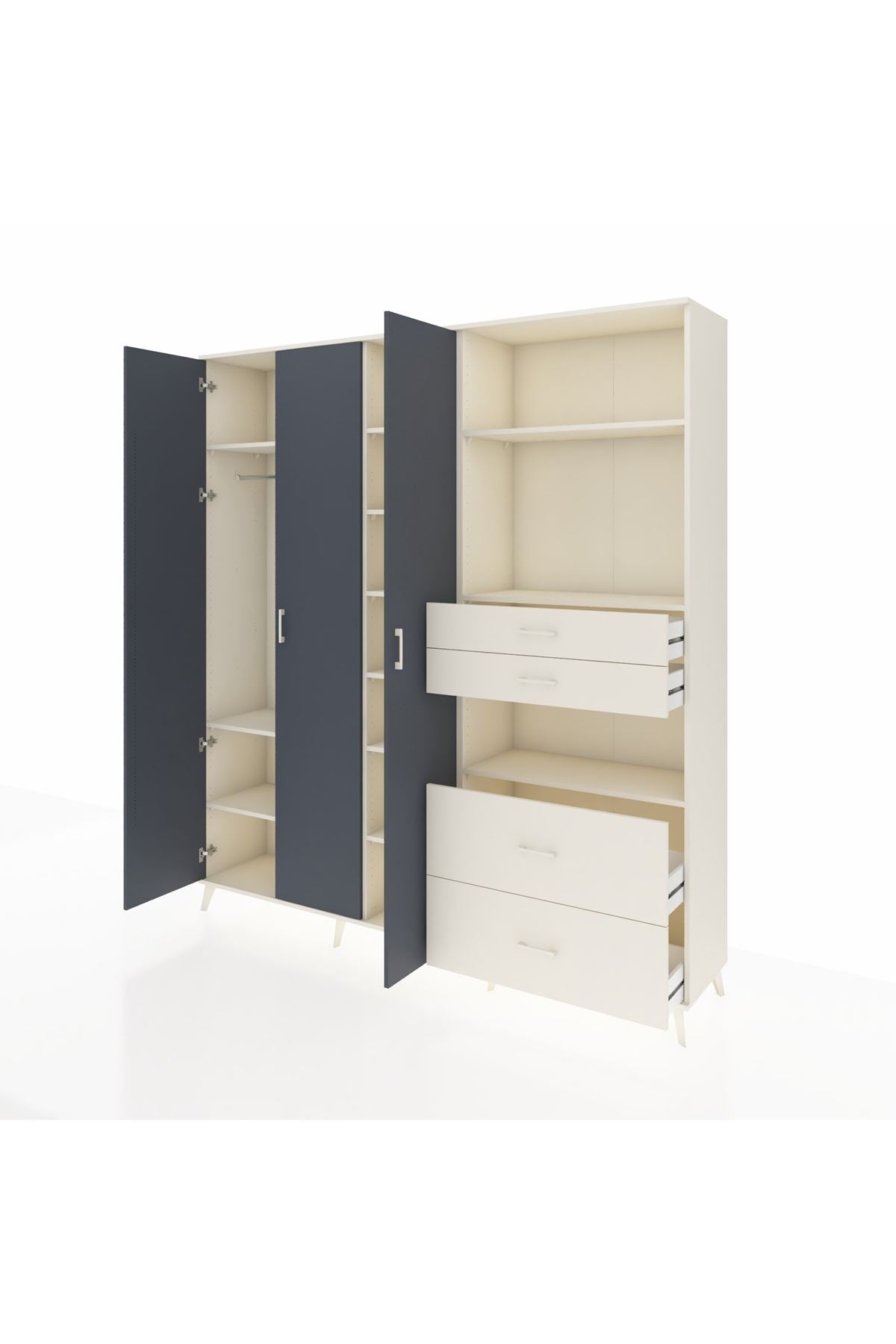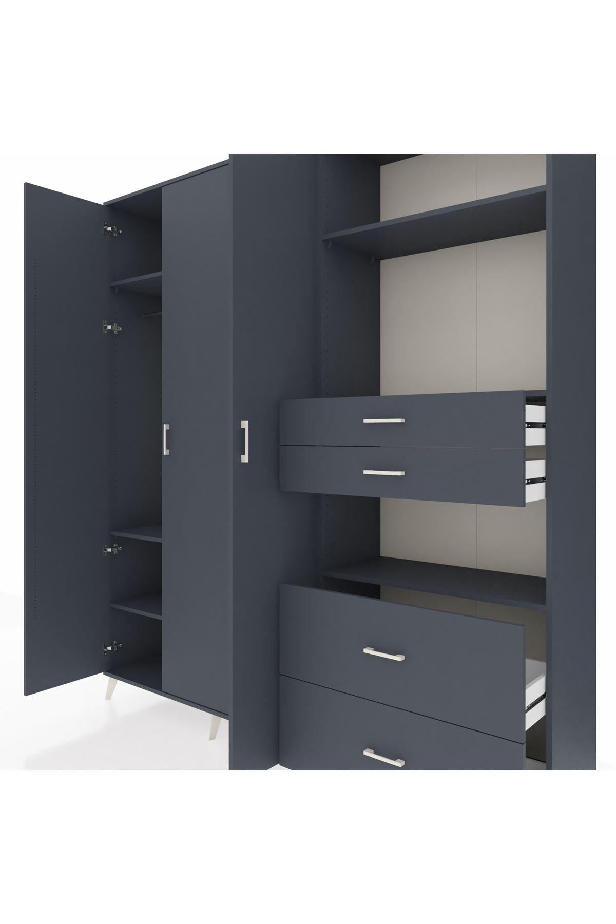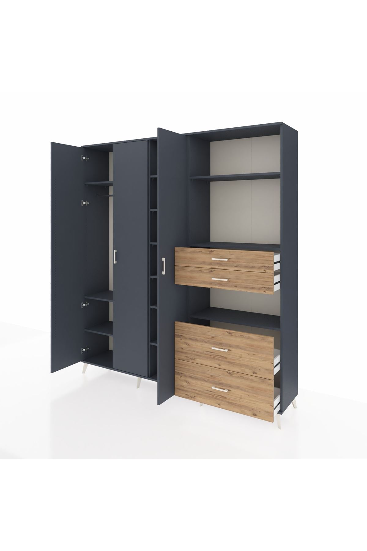🦾 Dolabımızın metal ayakları, hem modern bir görünüm sağlar hem de sağlam bir zemin oluşturur. Metal kulplar ise dolabın şıklığını tamamlar ve kolay kullanım imkanı sunar.