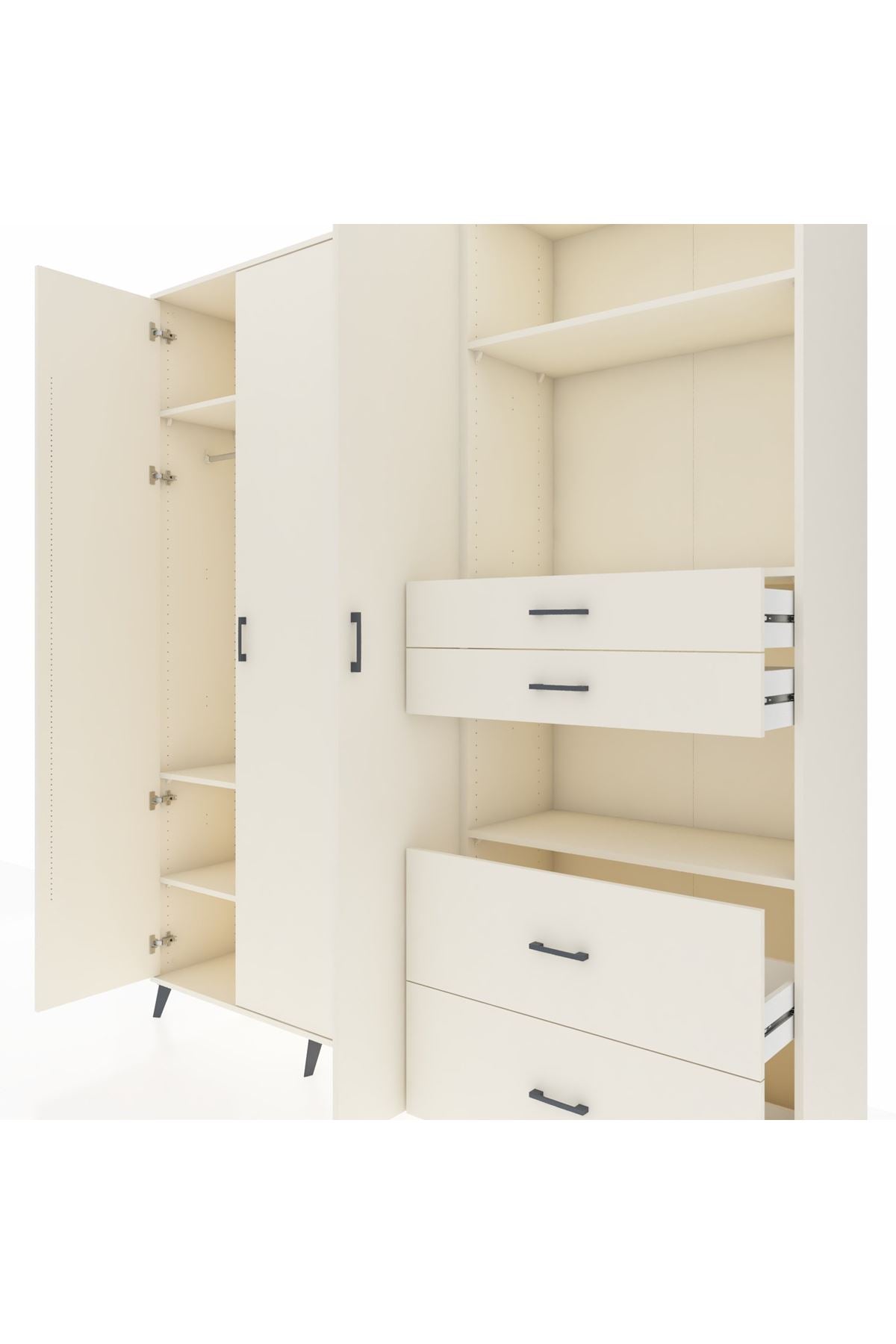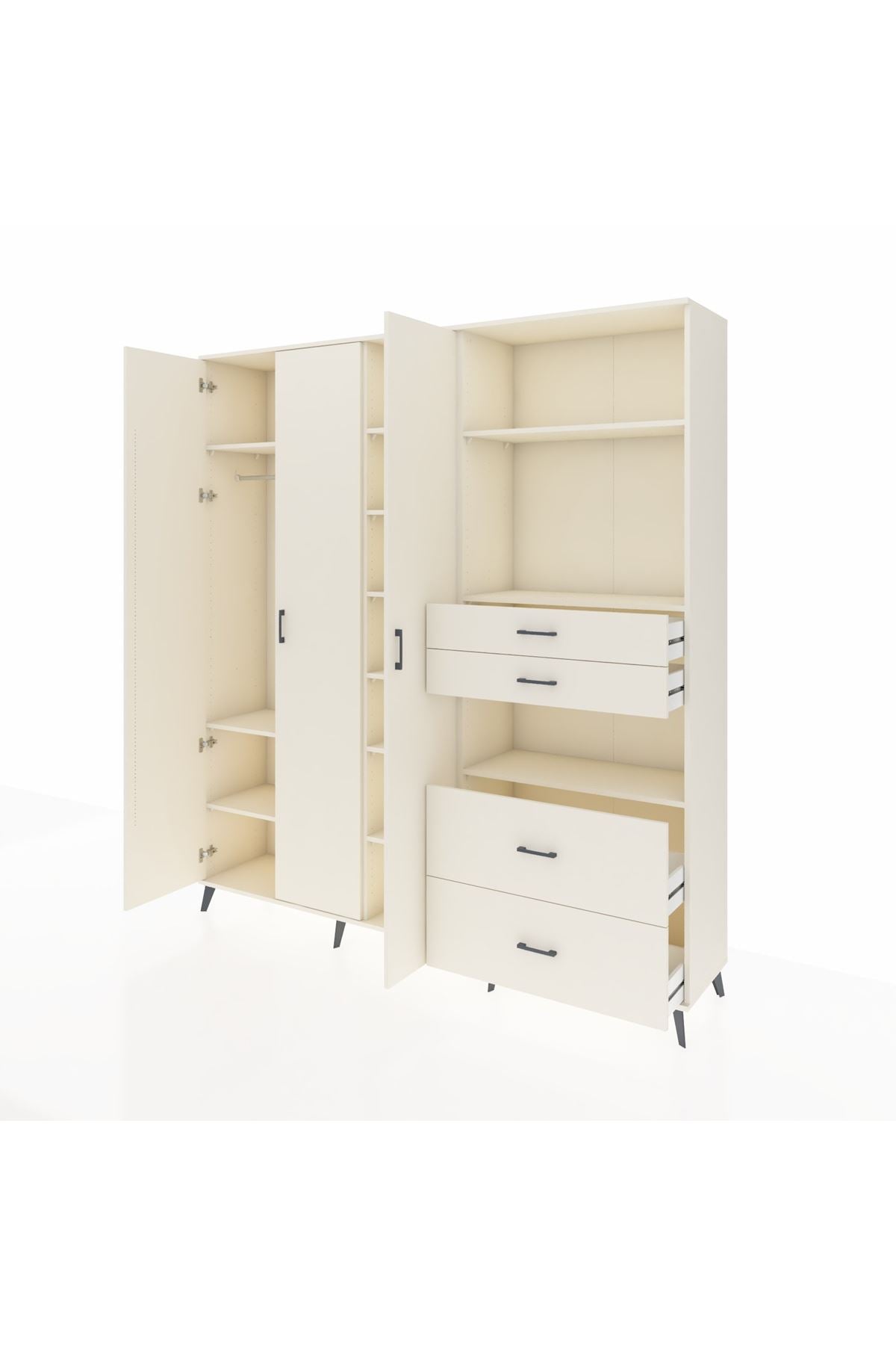 - 🛏️ Yatak Odası: Geniş iç hacmi ve düzenli raf sistemi sayesinde kıyafetlerinizi, aksesuarlarınızı ve diğer eşyalarınızı kolayca saklayabilirsiniz.