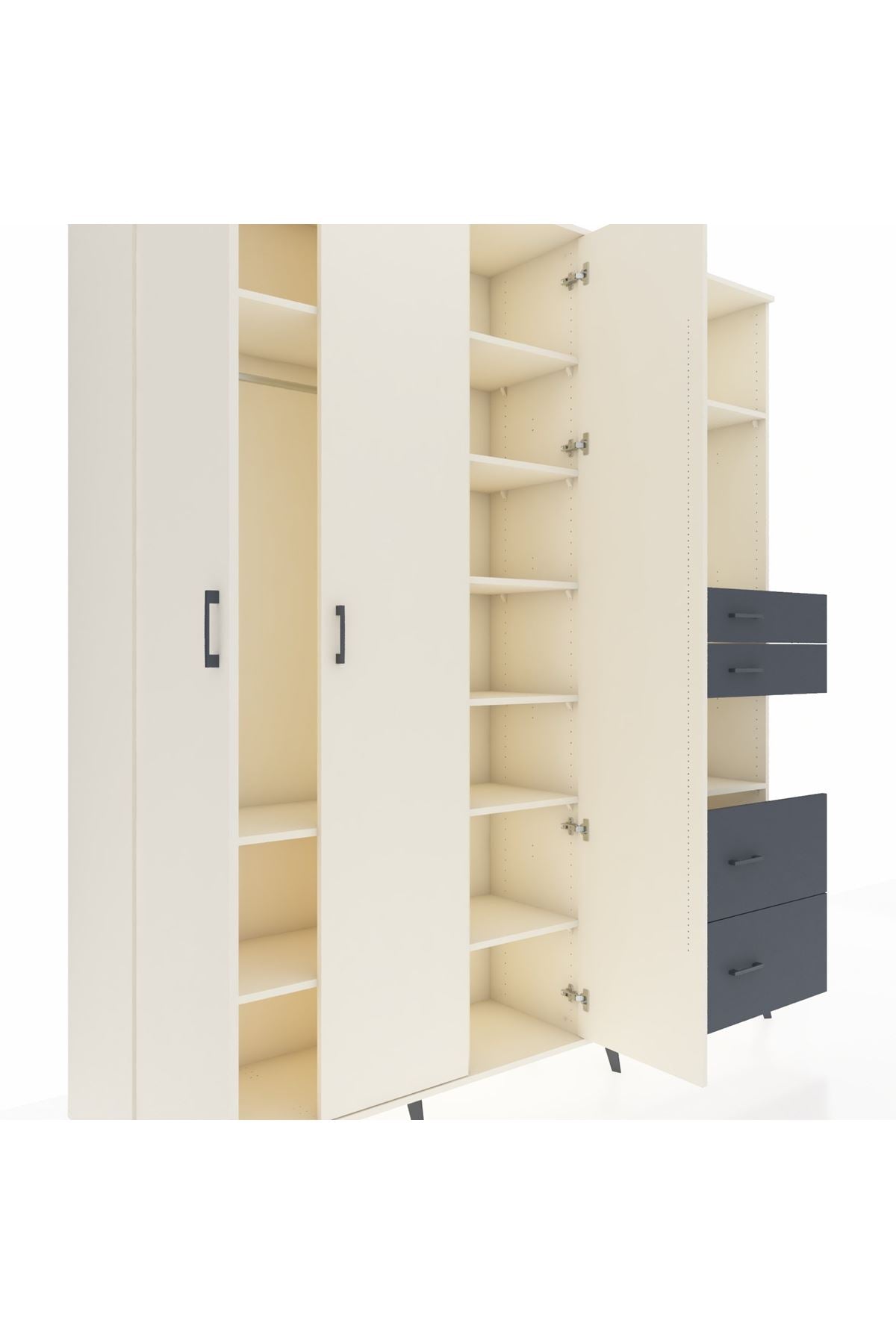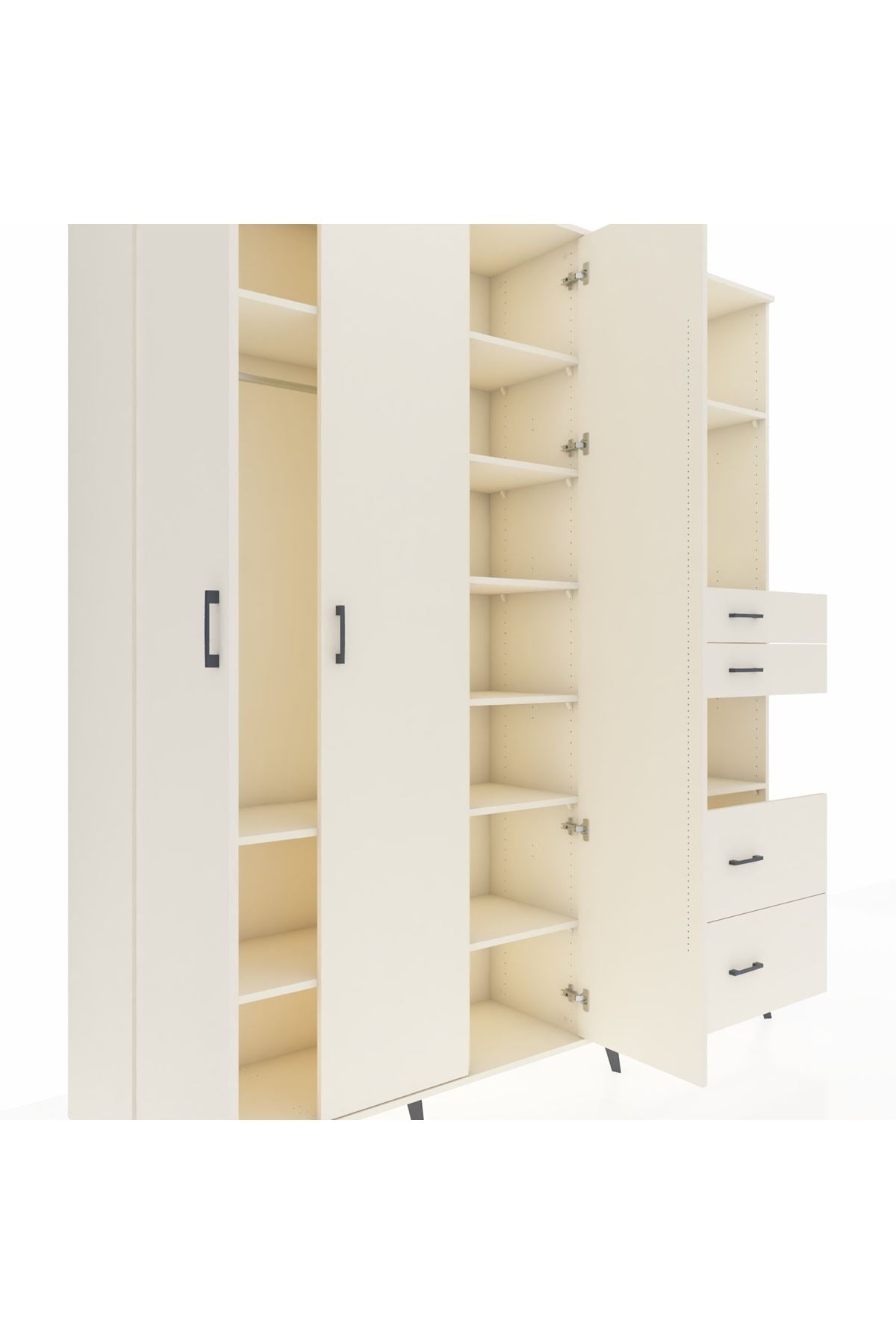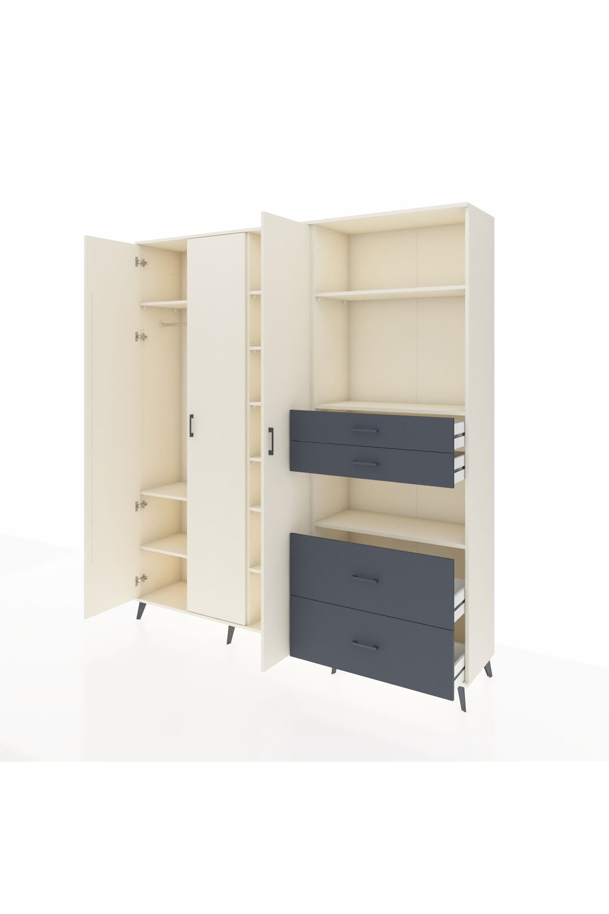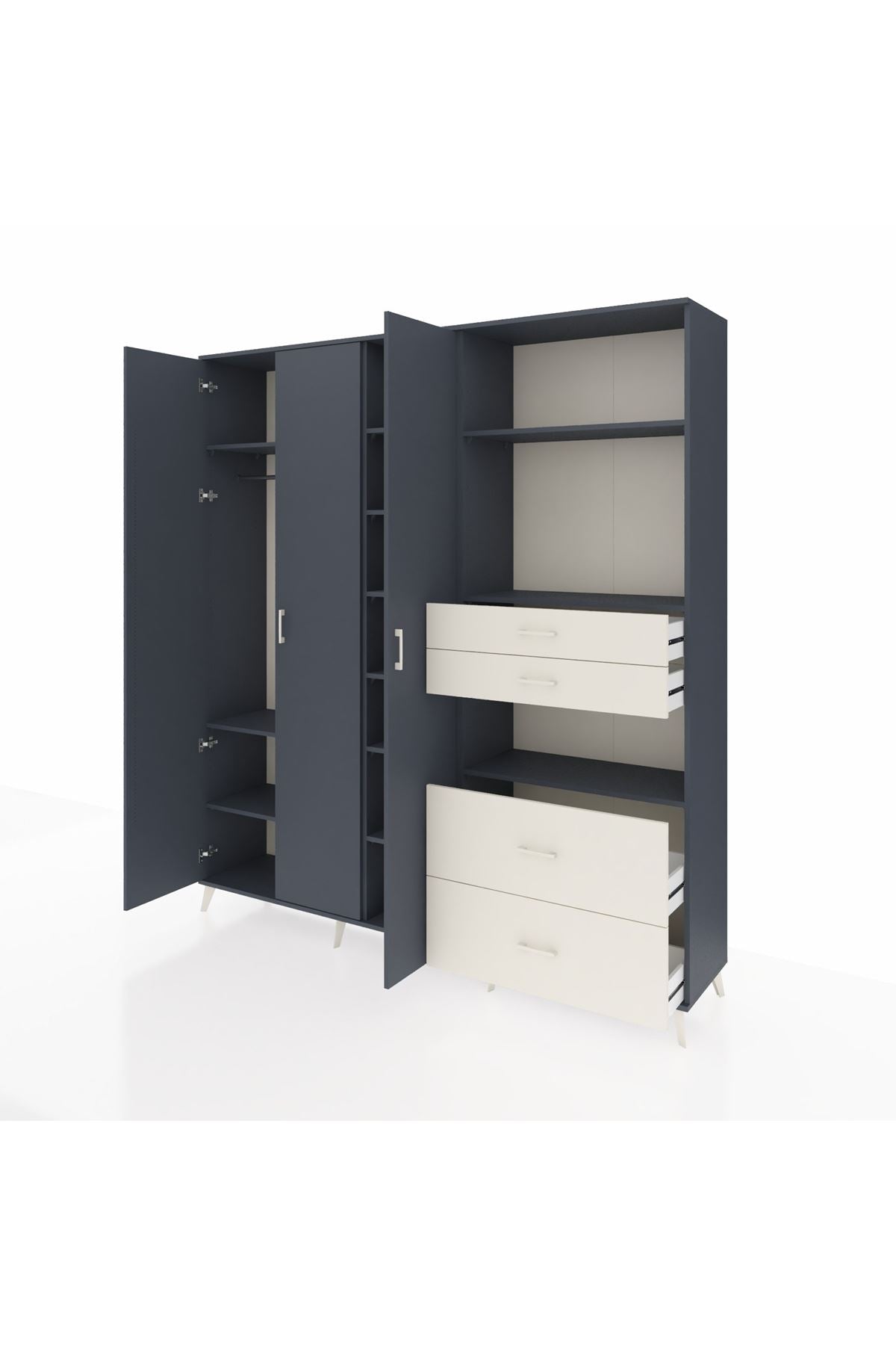 Hyperion Dolap 12 Raflı 4 Çekmeceli Tek Askılı 220x44x243