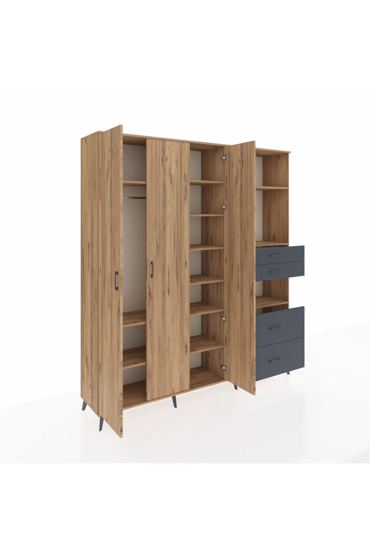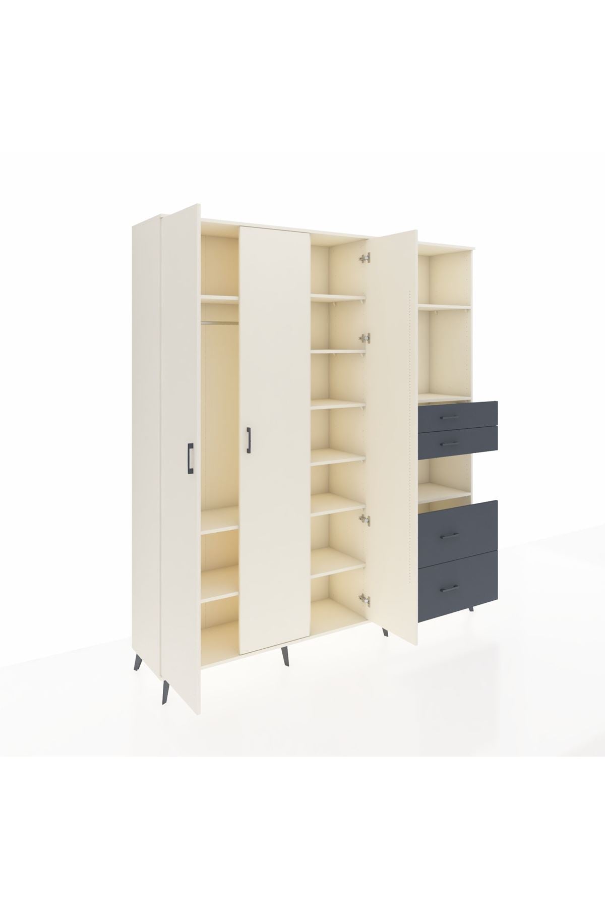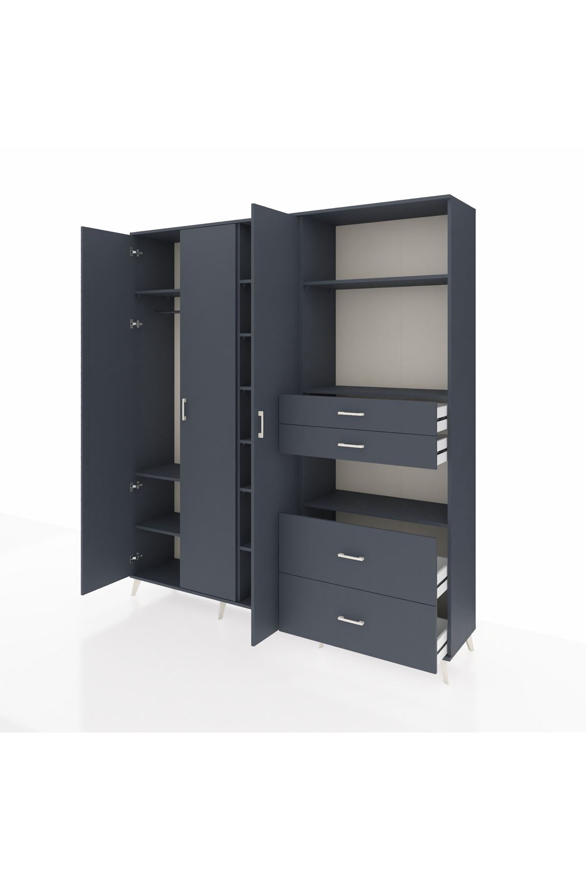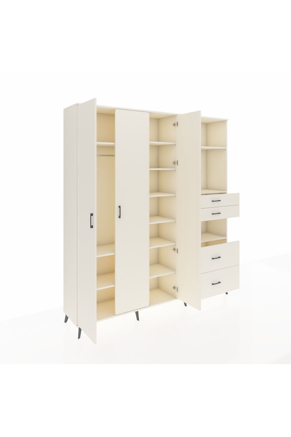 Hyperion Dolap 12 Raflı 4 Çekmeceli Tek Askılı 220x44x243
