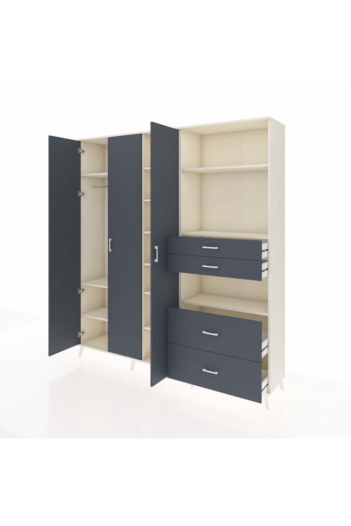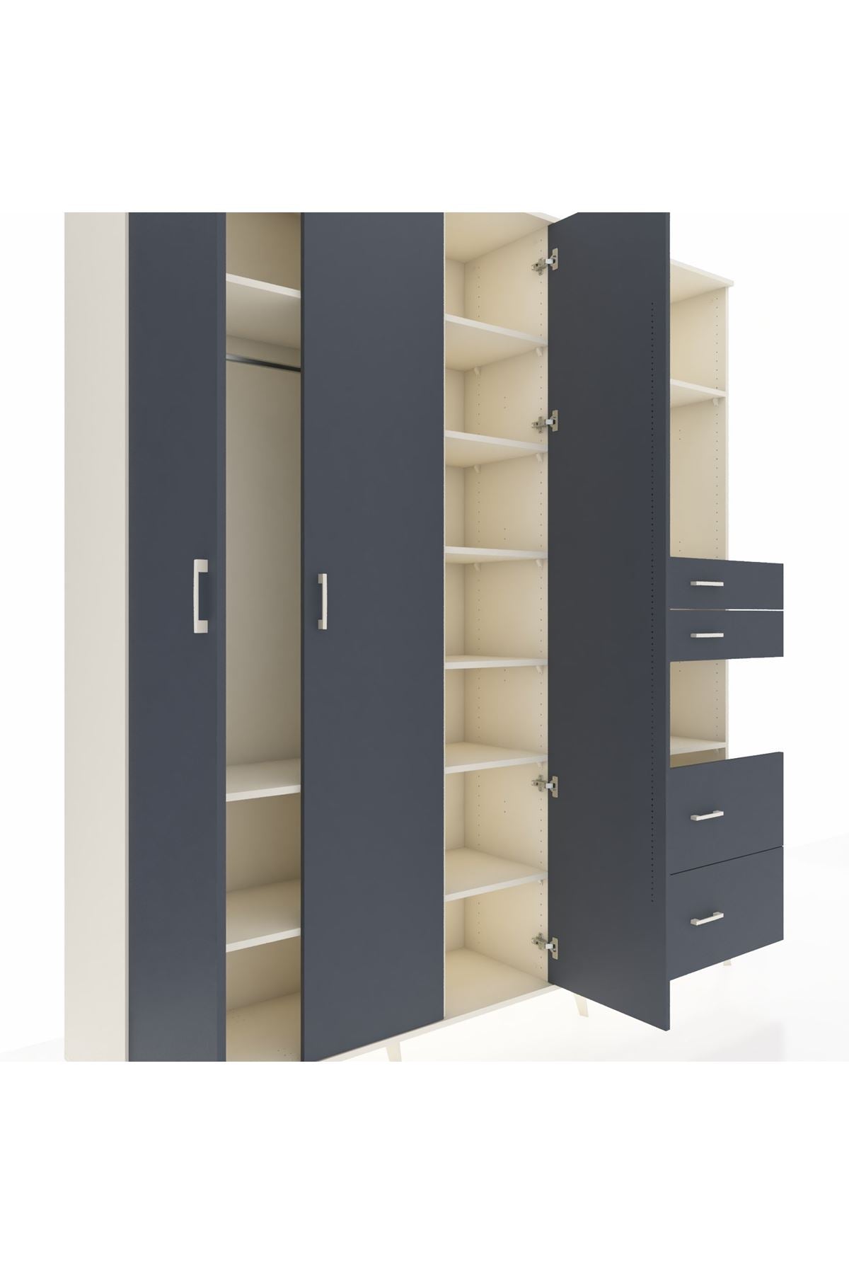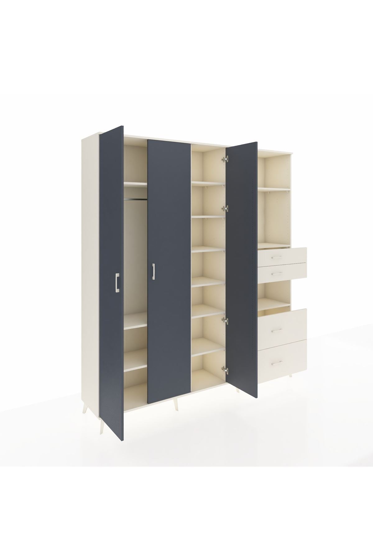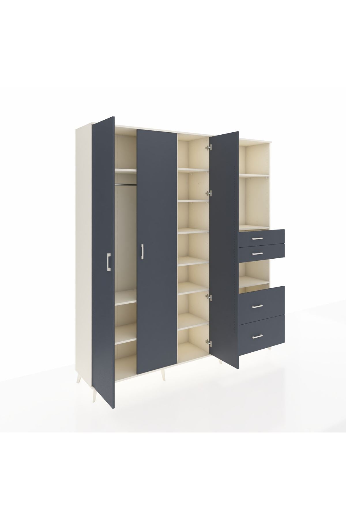 Hyperion Dolap 12 Raflı 4 Çekmeceli Tek Askılı 220x44x243