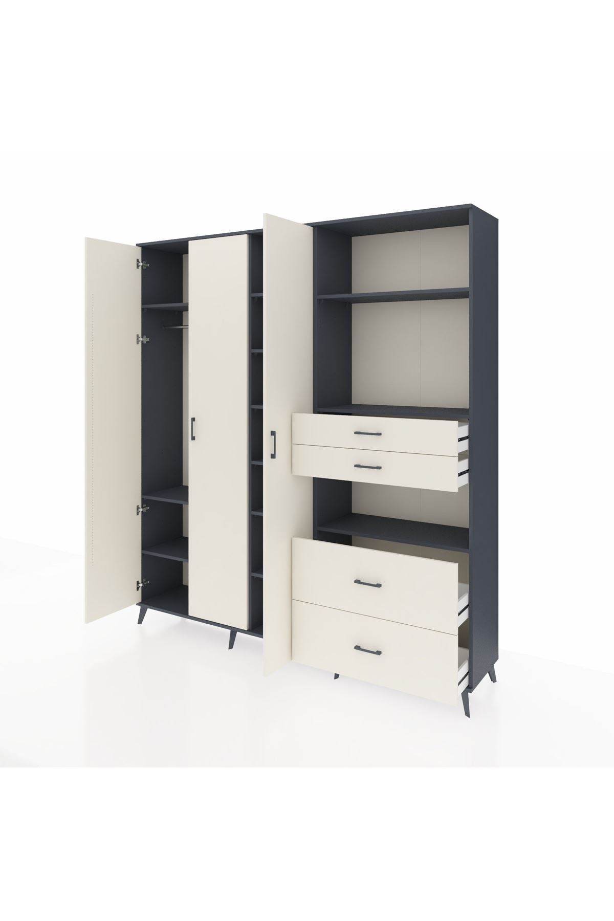 📌 Hyperion Dolap 12 Raflı 4 Çekmeceli Tek Askılı 220x44x243