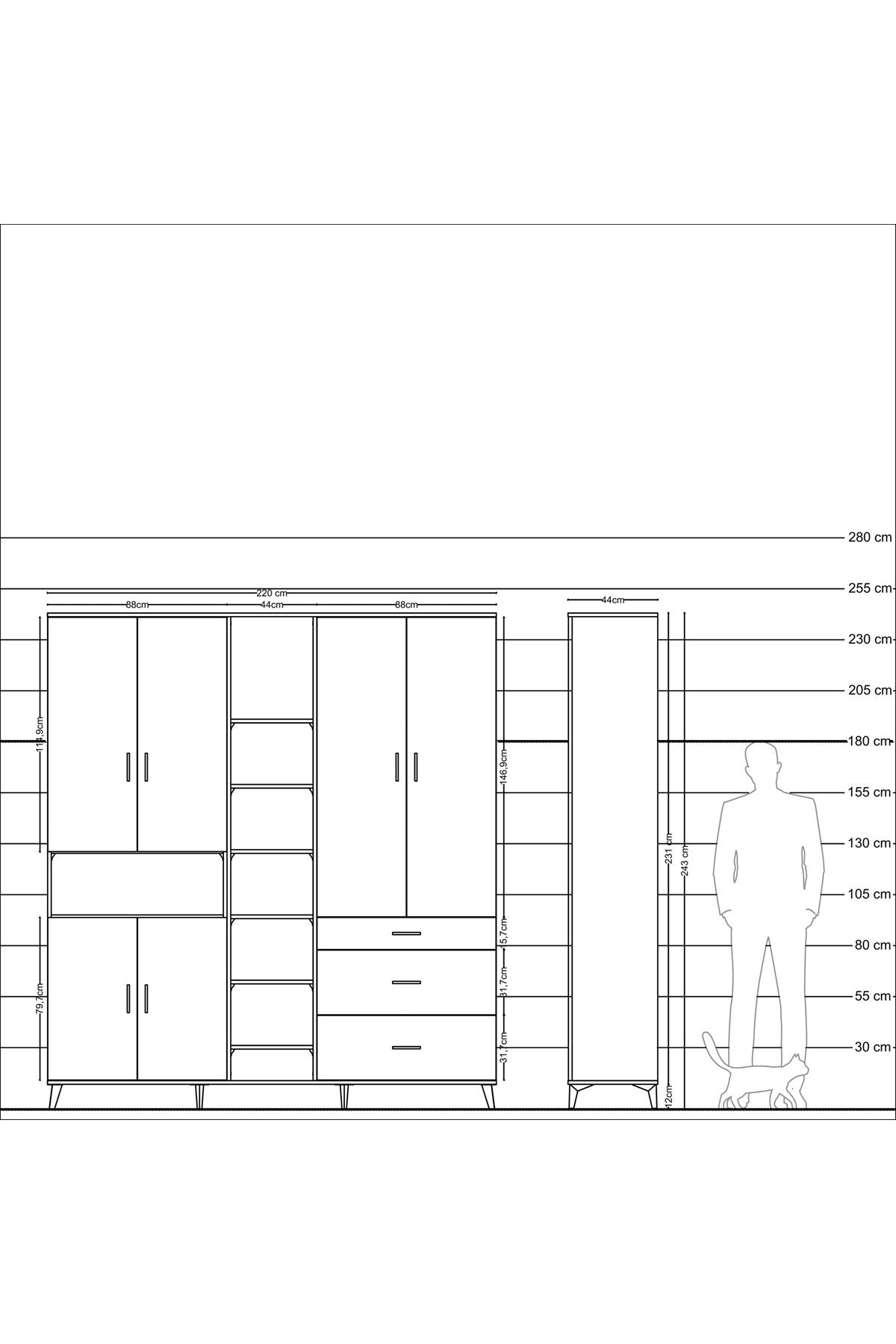 Hyperion Dolap 13 Raflı 3 Çekmeceli 6 Kapaklı 220x44x243