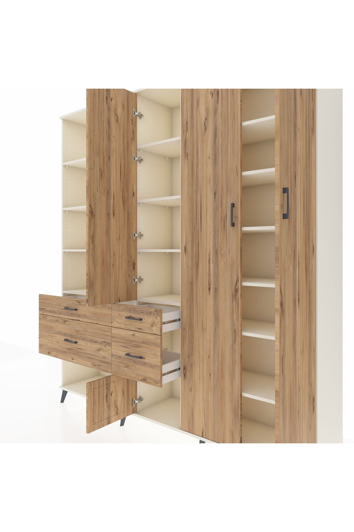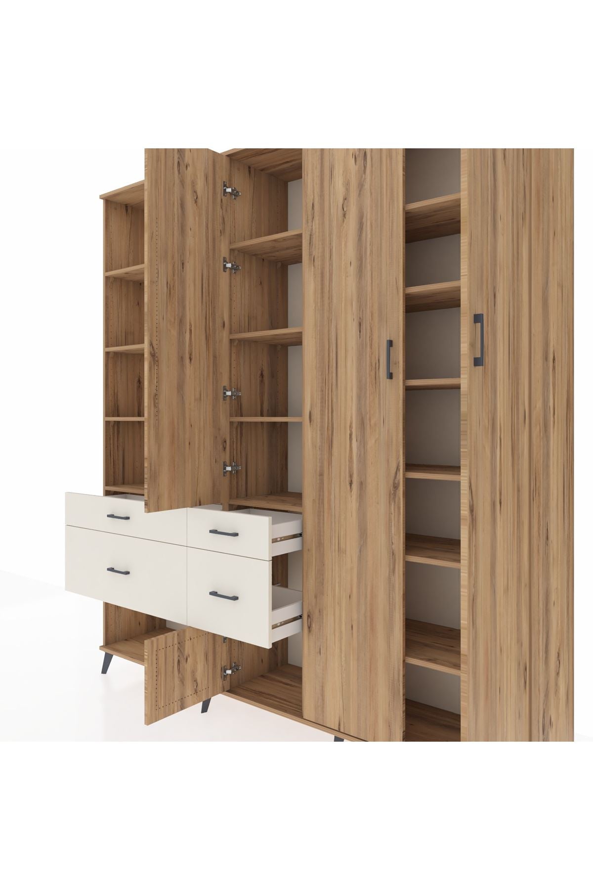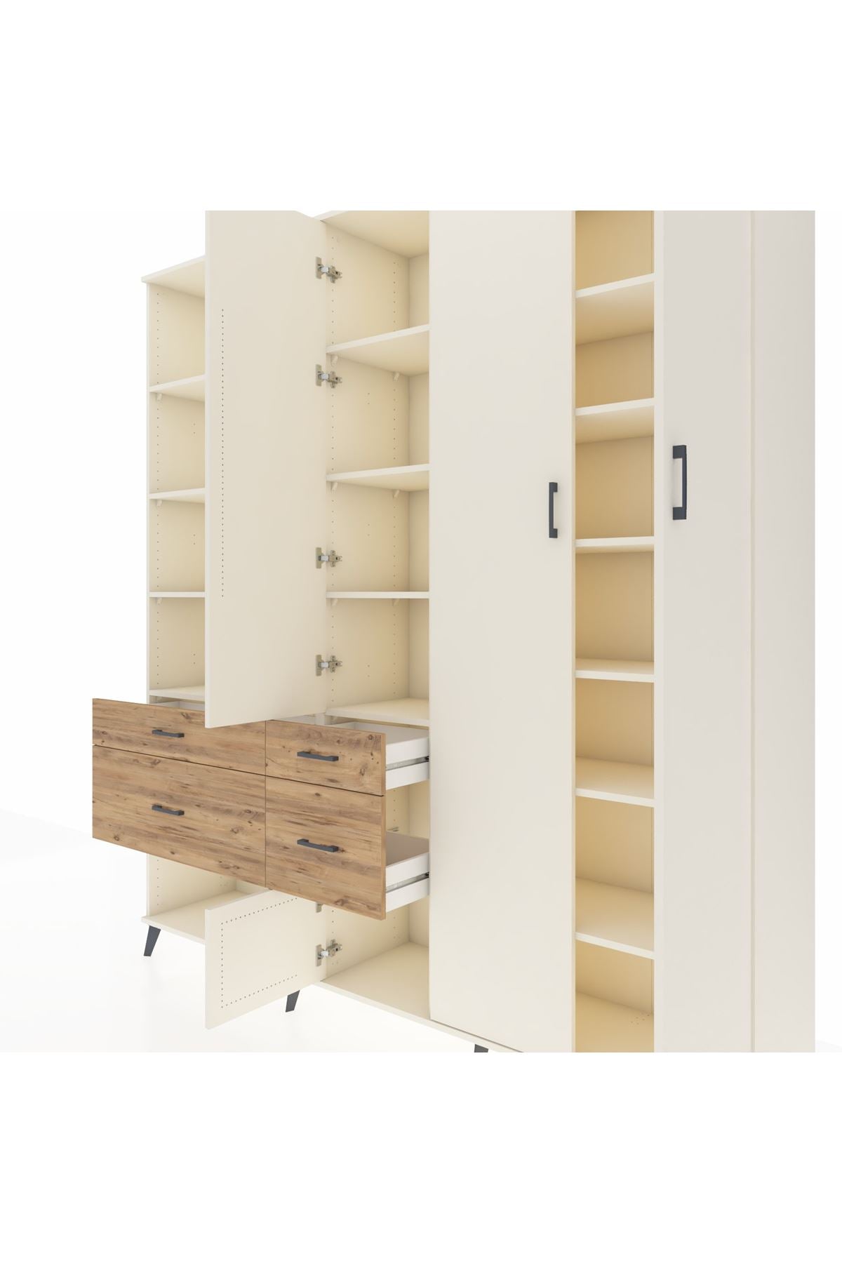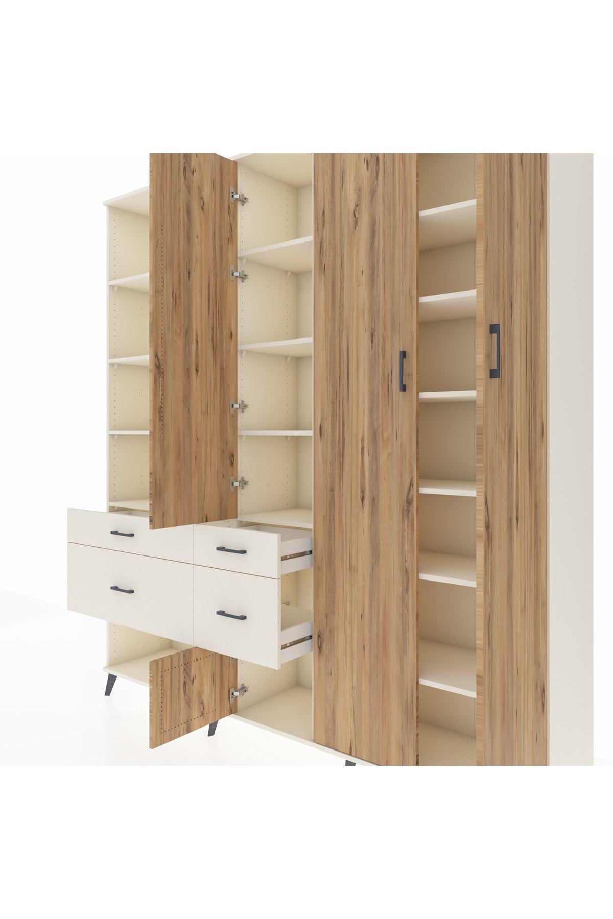 📌 Hyperion Dolap 14 Raflı 4 Çekmeceli 4 Kapaklı 220x44x243