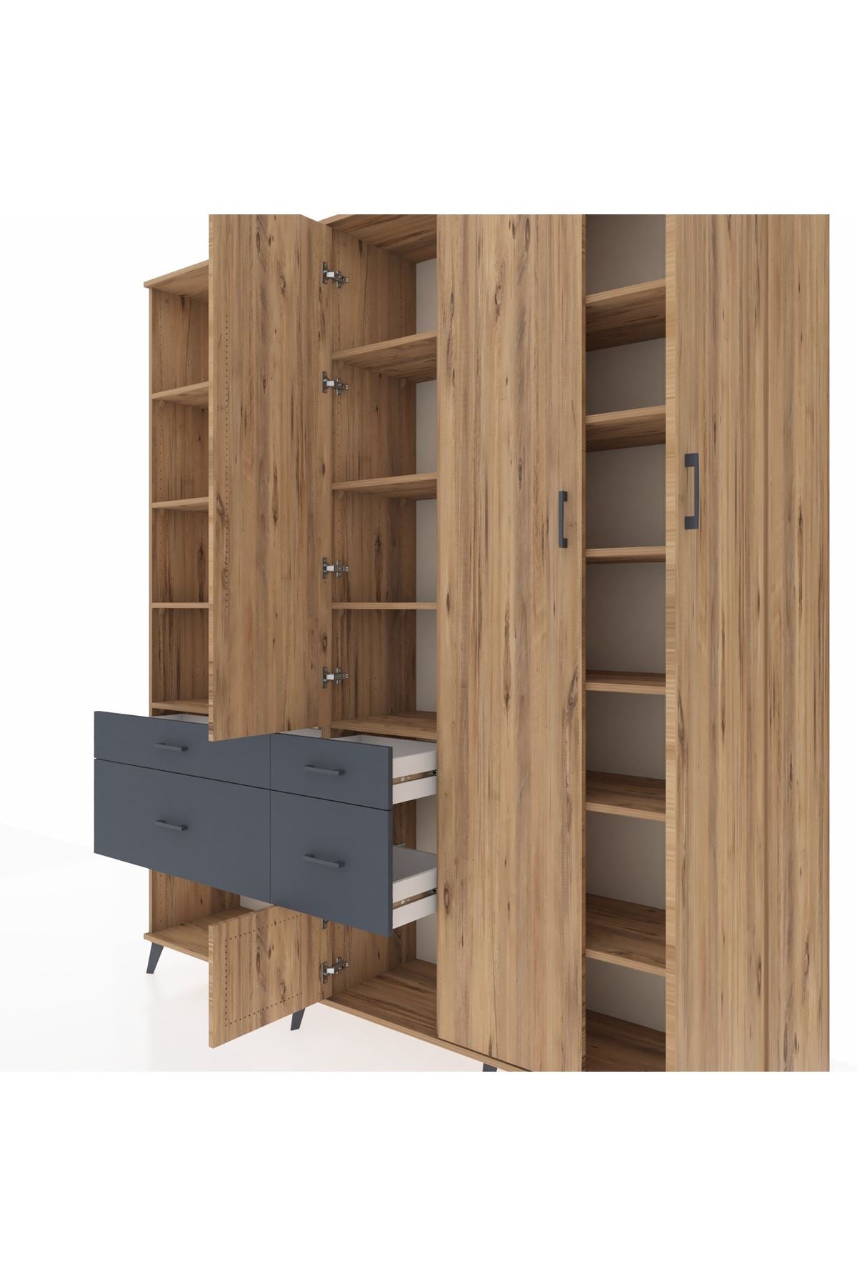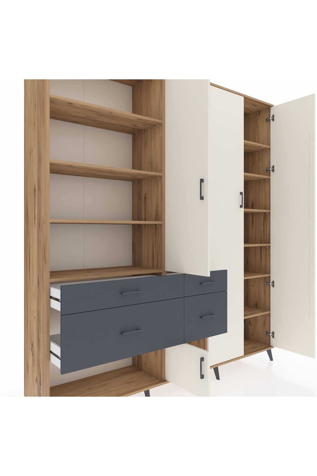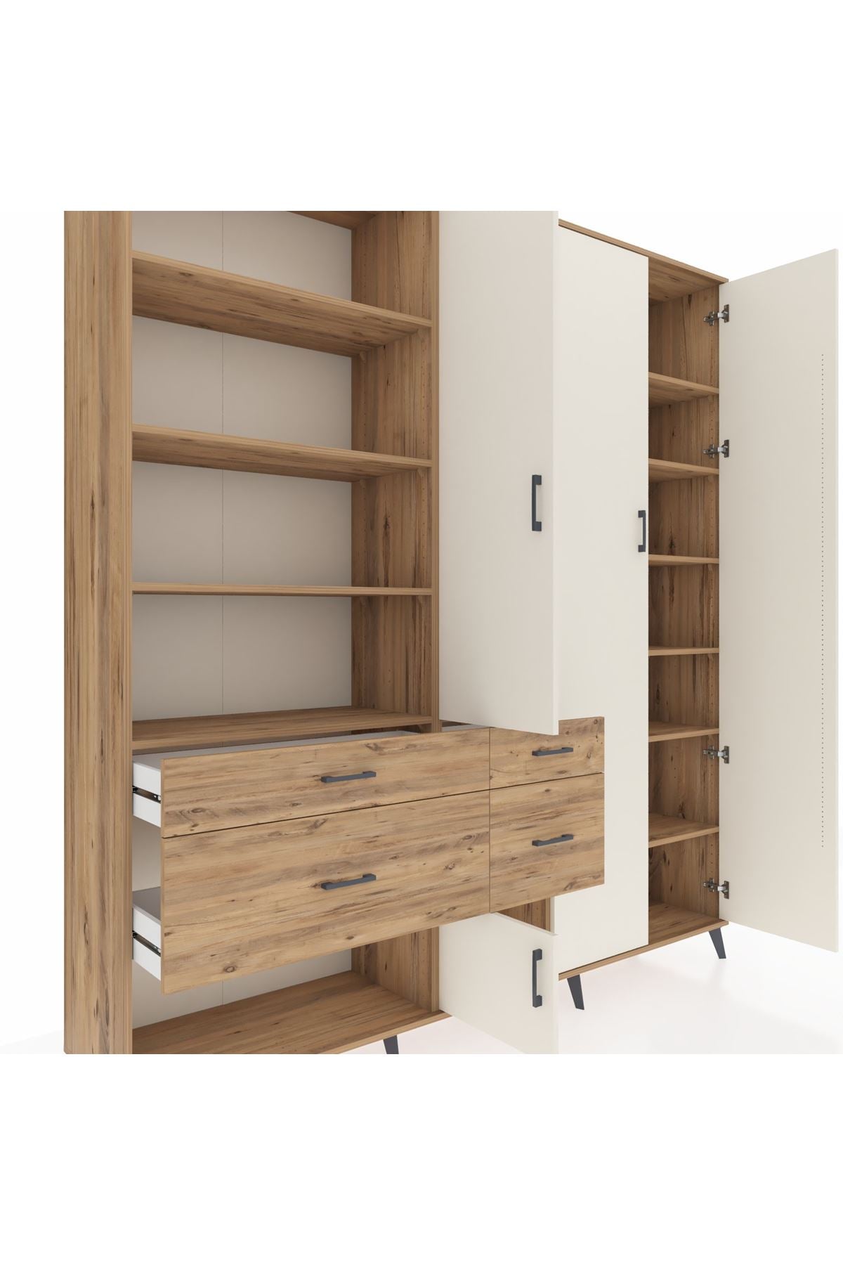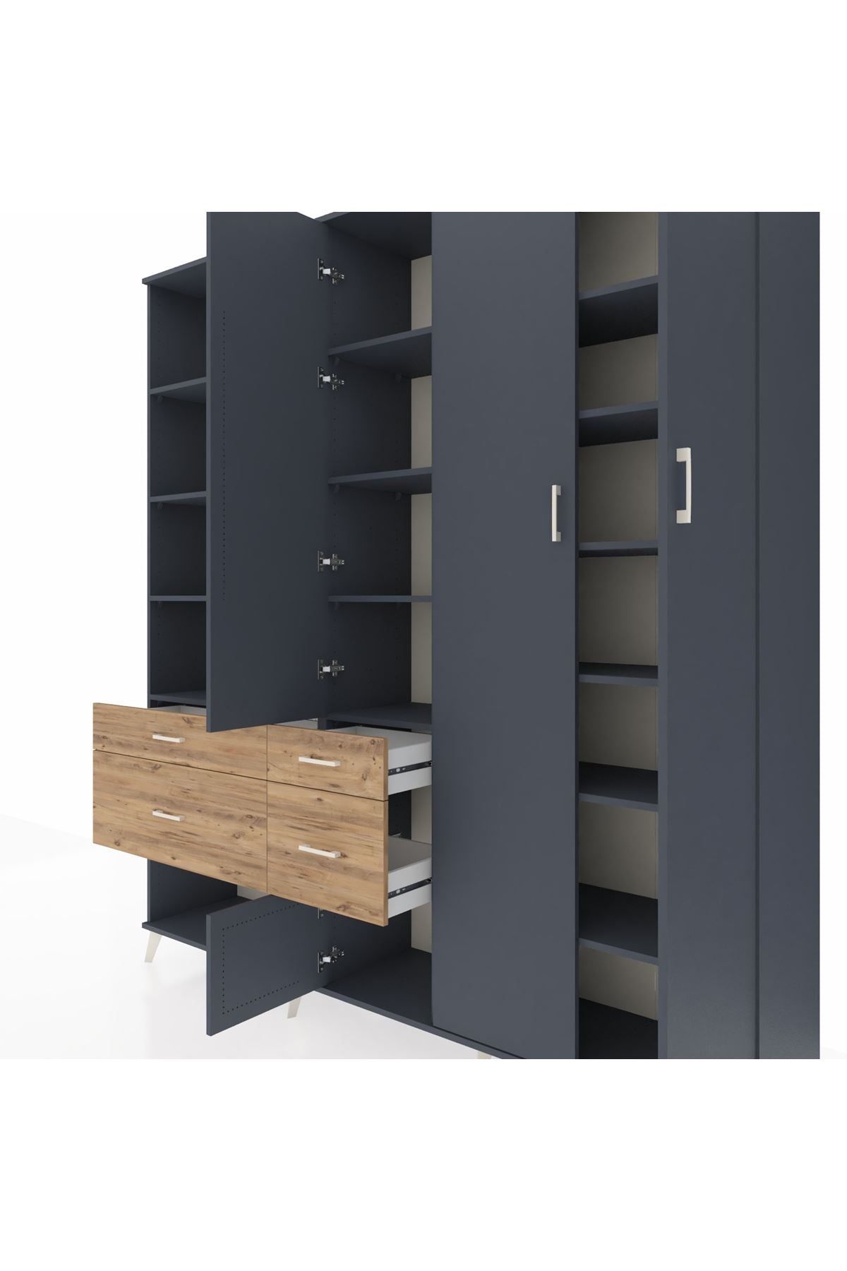📌 Hyperion Dolap 14 Raflı 4 Çekmeceli 4 Kapaklı 220x44x243