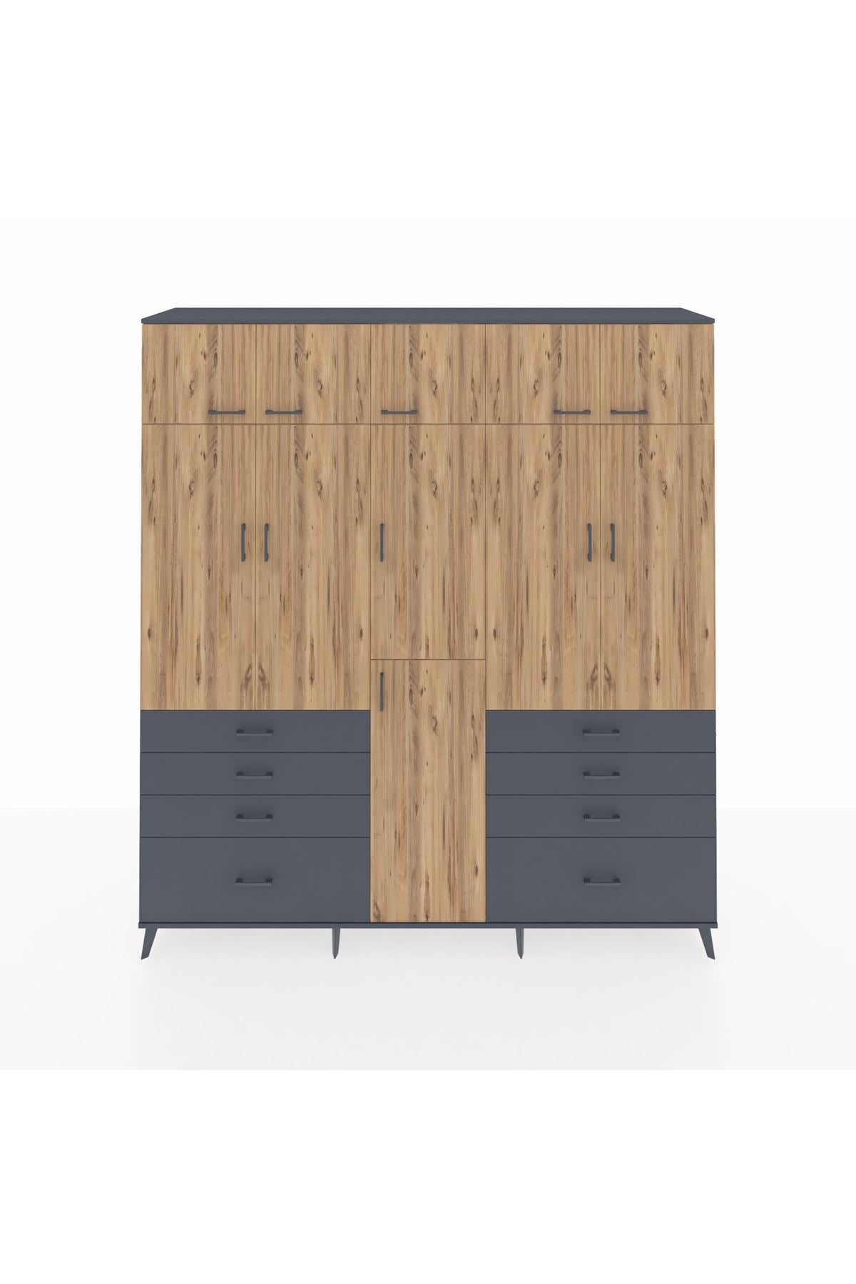 Hyperion Dolap 8 Raflı 8 Çekmeceli 3 Askılı 220x44x243 Antrasit-Çam/Antrasit
