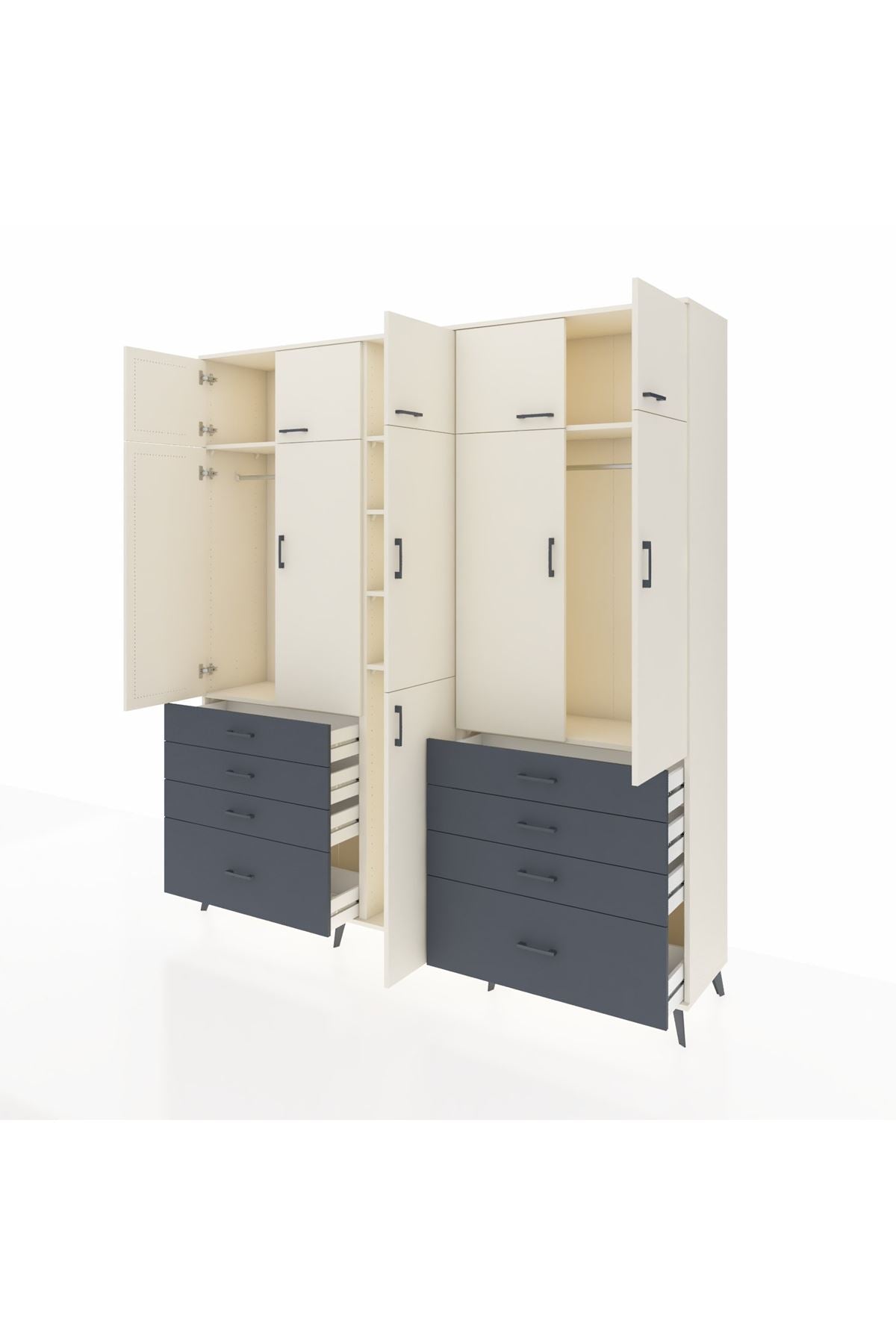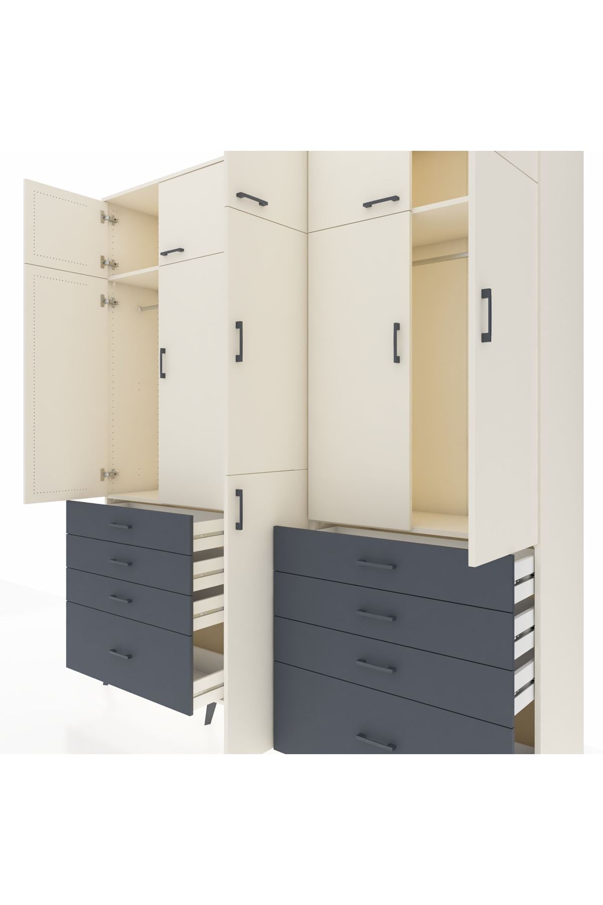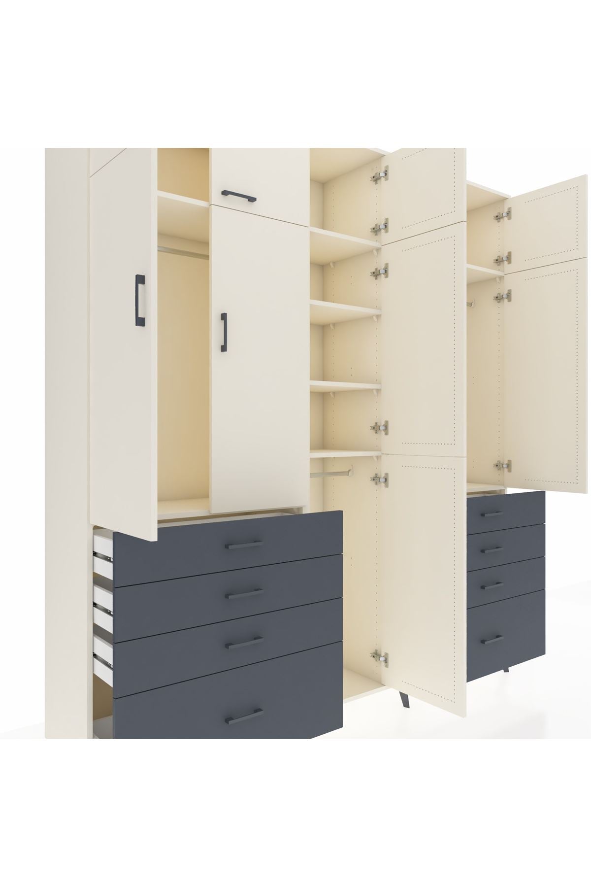 Hyperion Dolap 8 Raflı 8 Çekmeceli 3 Askılı 220x44x243 Aytaşı-Aytaşı/Antrasit