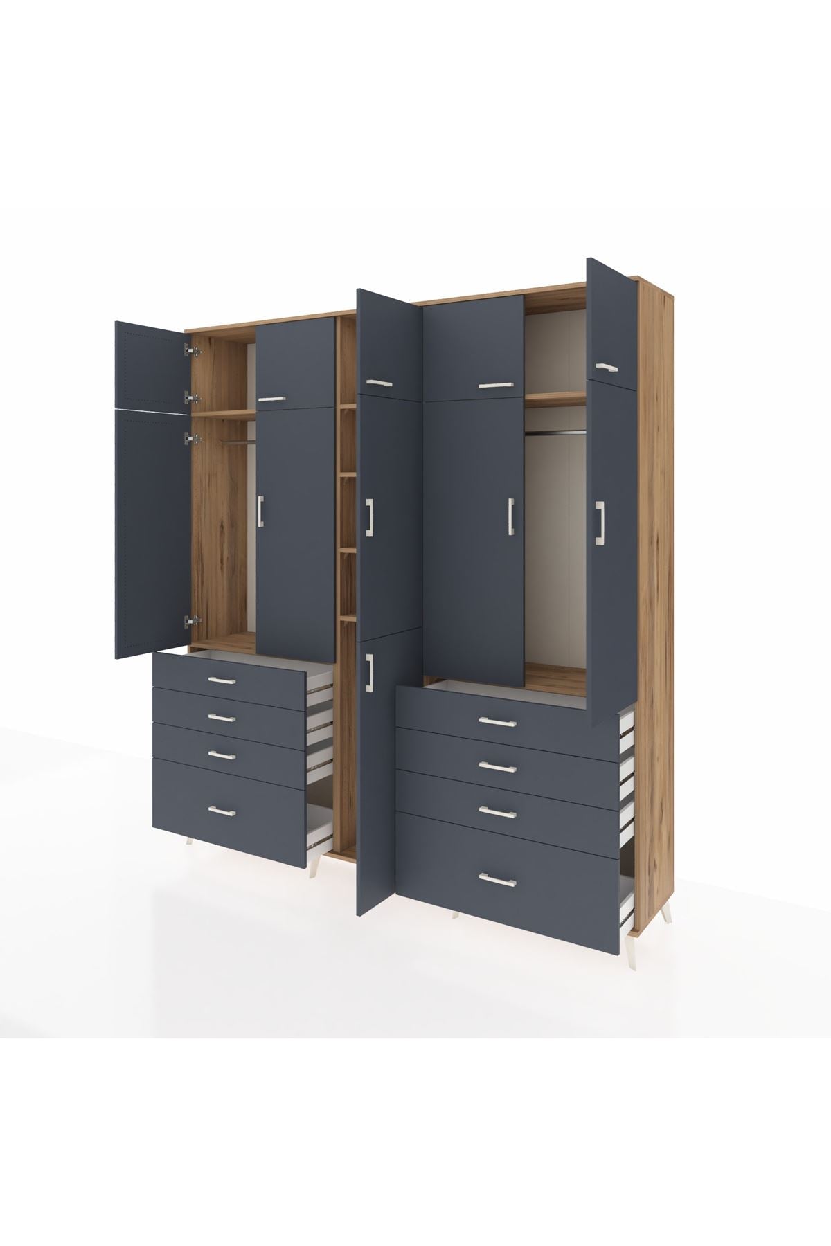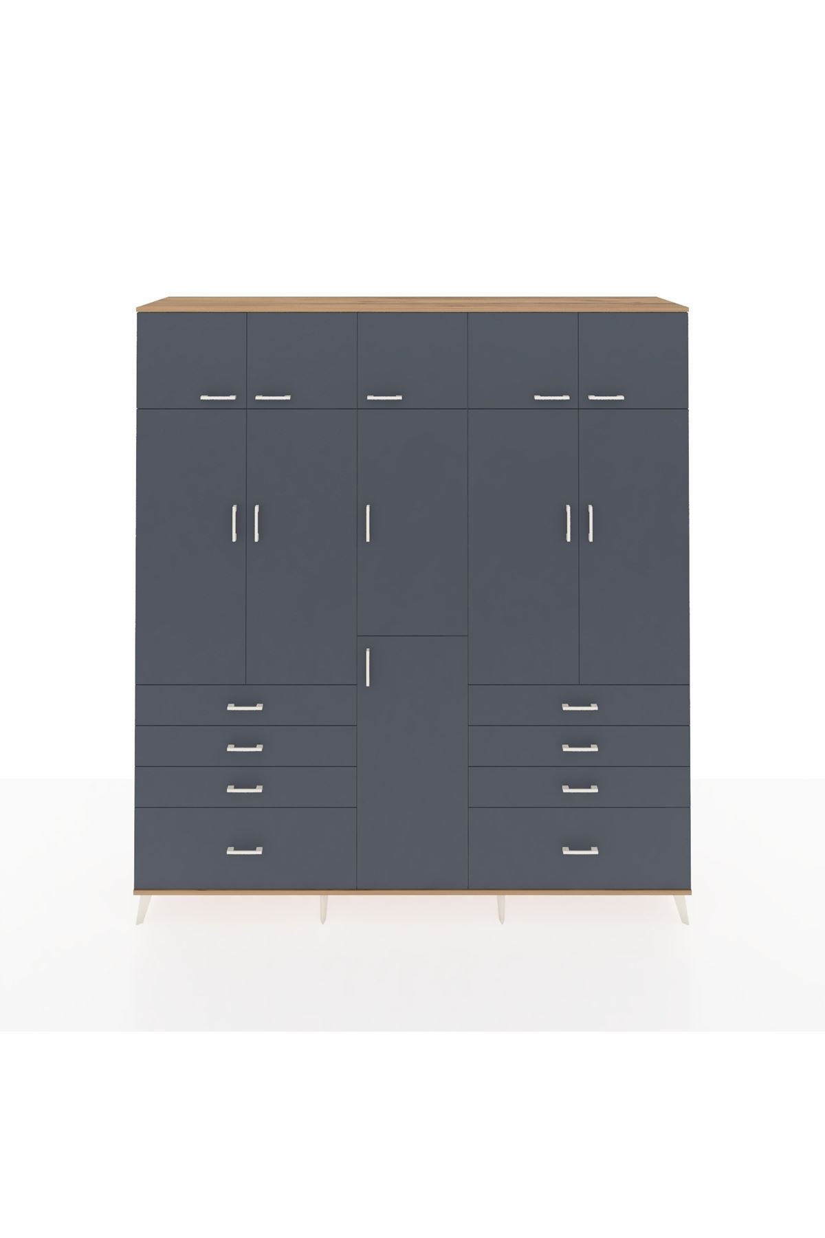 Hyperion Dolap 8 Raflı 8 Çekmeceli 3 Askılı 220x44x243 Çam-Antrasit/Antrasit