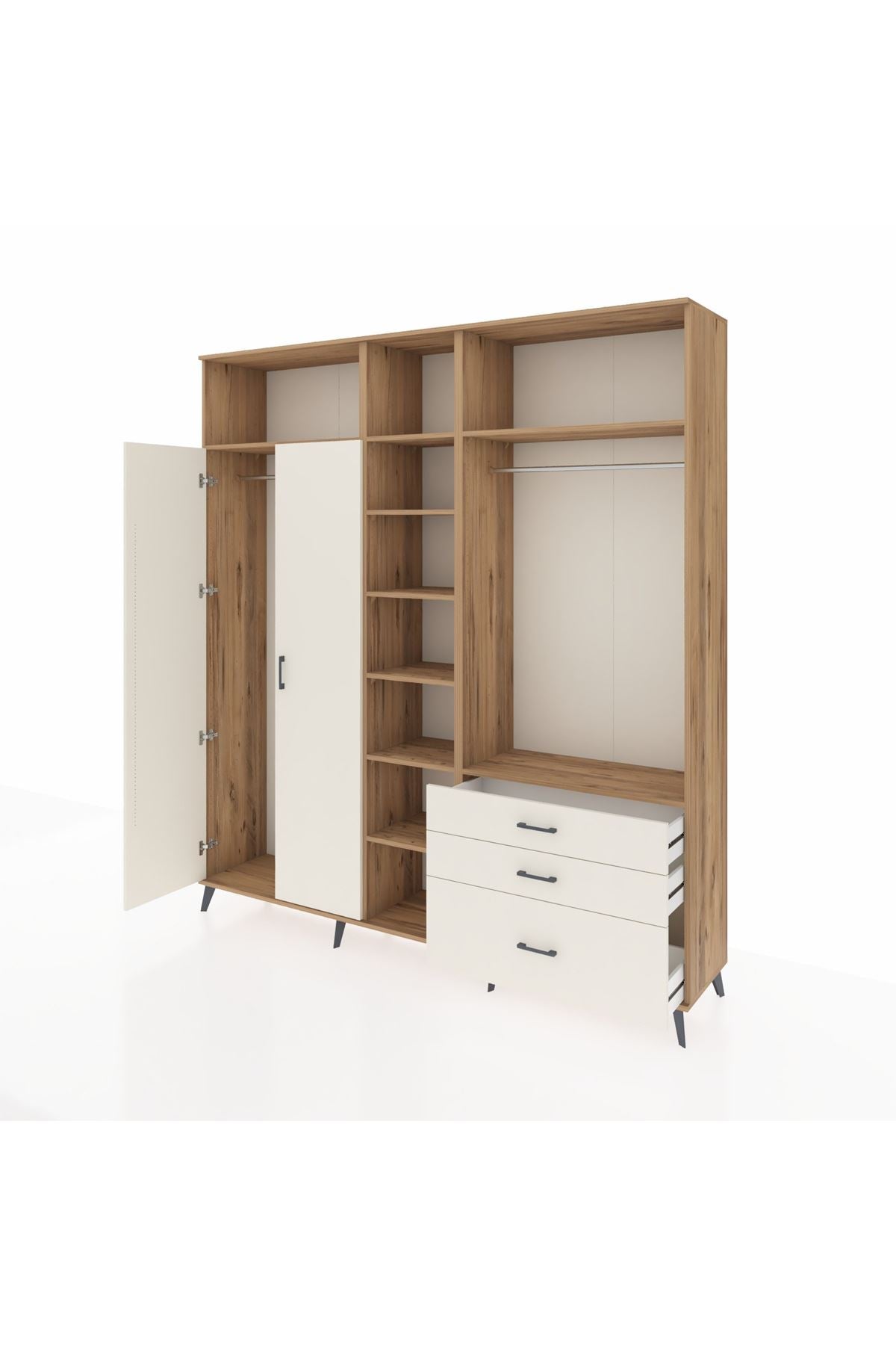 Hyperion Dolap 9 Raflı 3 Çekmeceli 2 Askılı 220x44x243 Çam-Aytaşı/Aytaşı