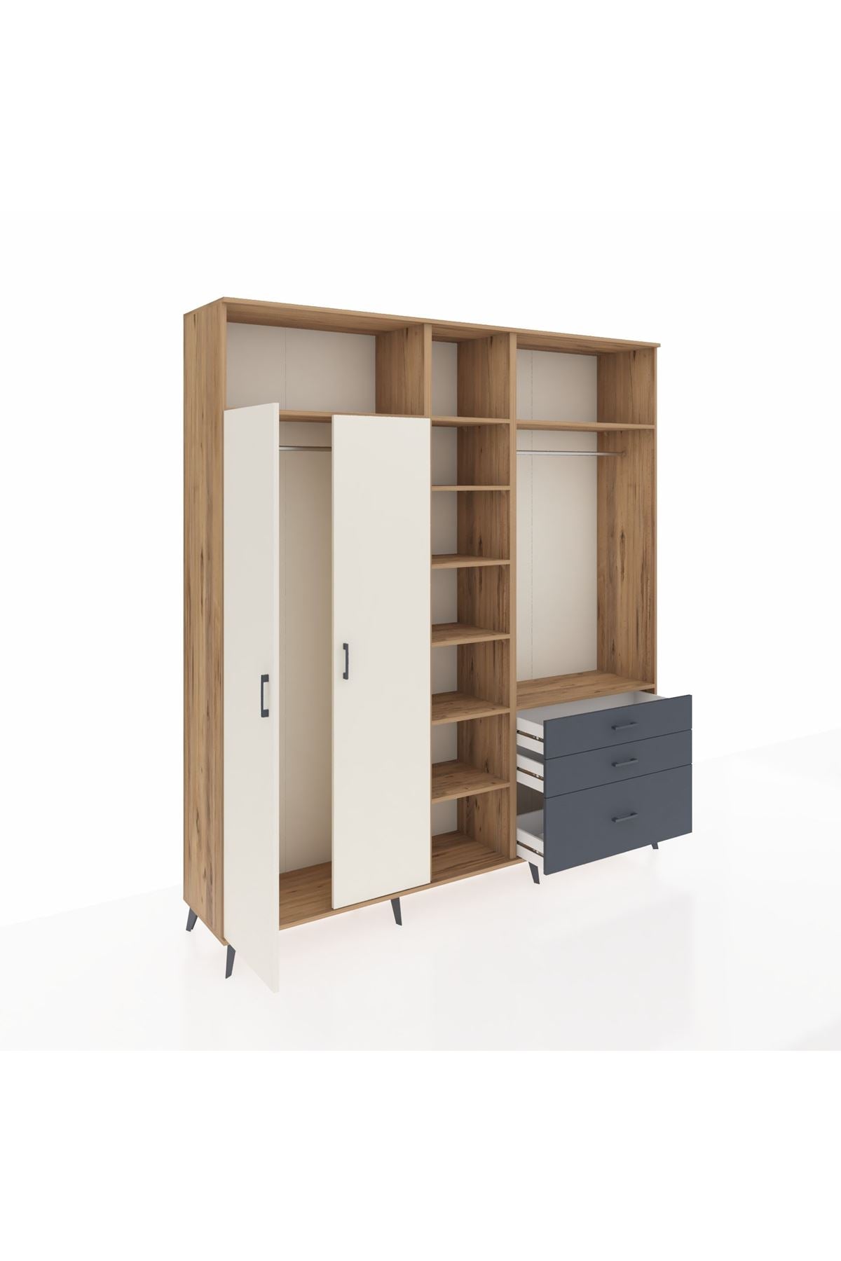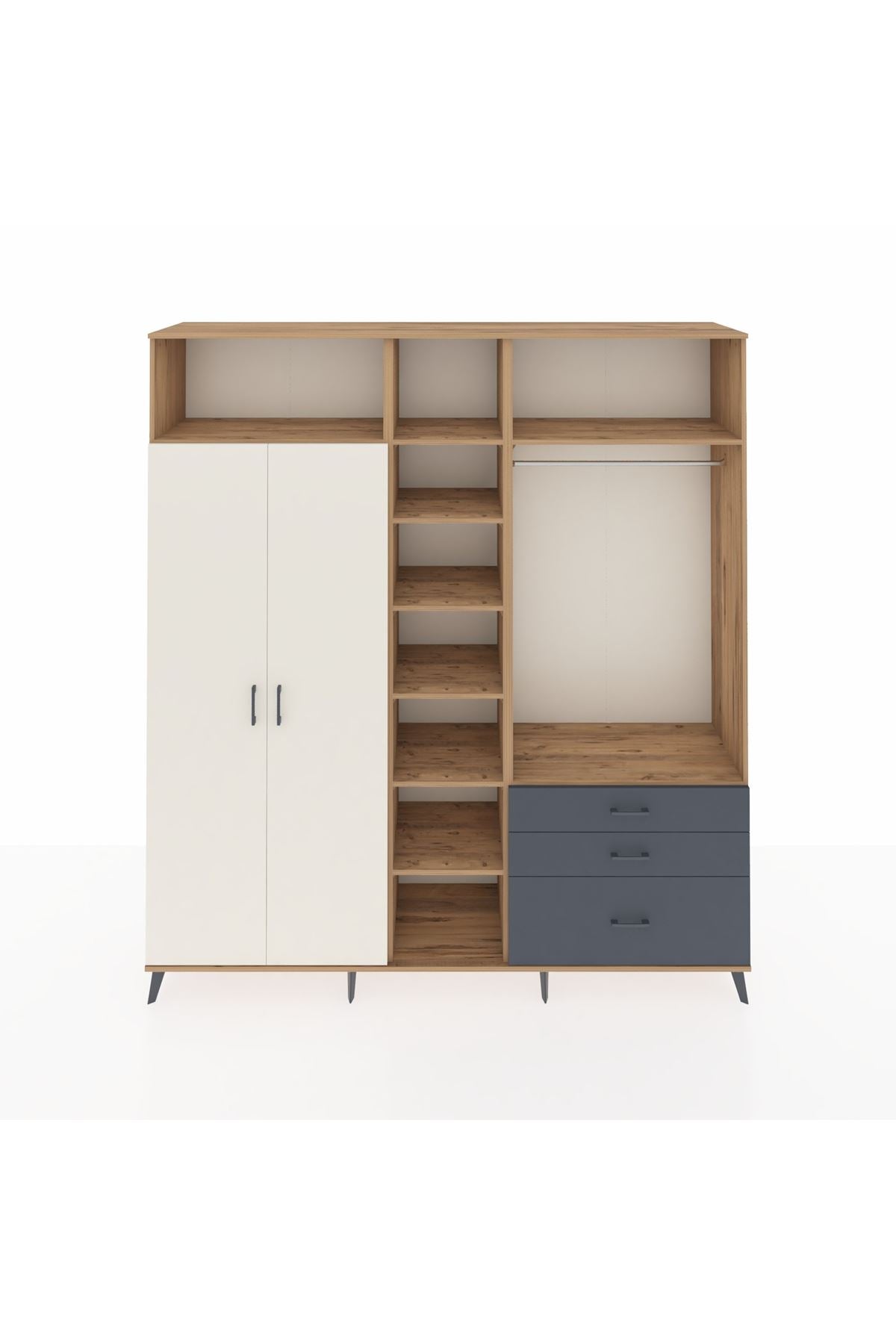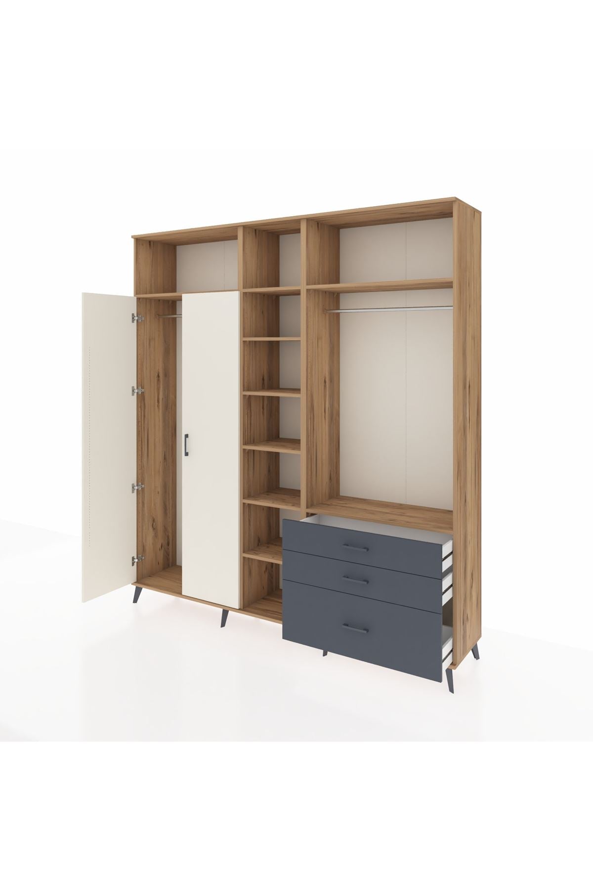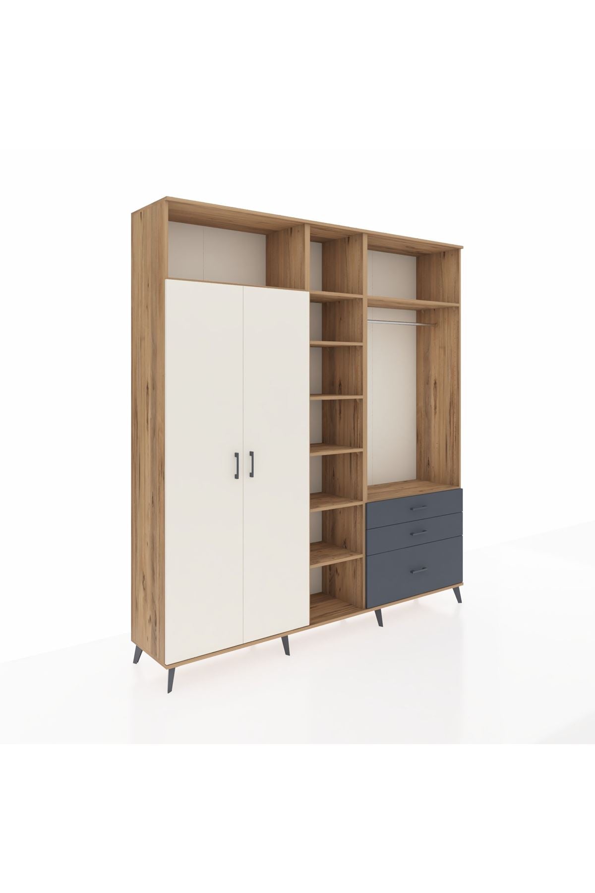 Hyperion Dolap 9 Raflı 3 Çekmeceli 2 Askılı 220x44x243 Çam-Aytaşı/Antrasit