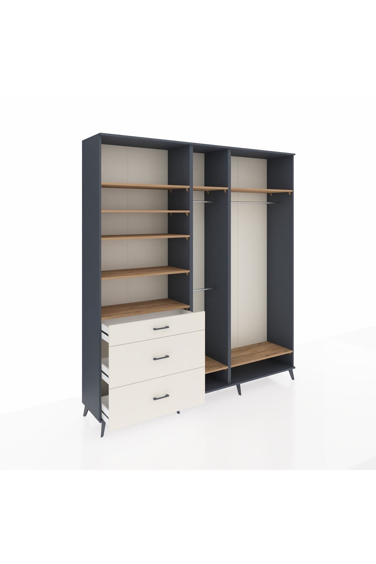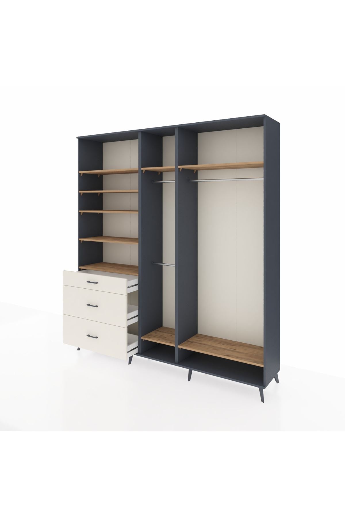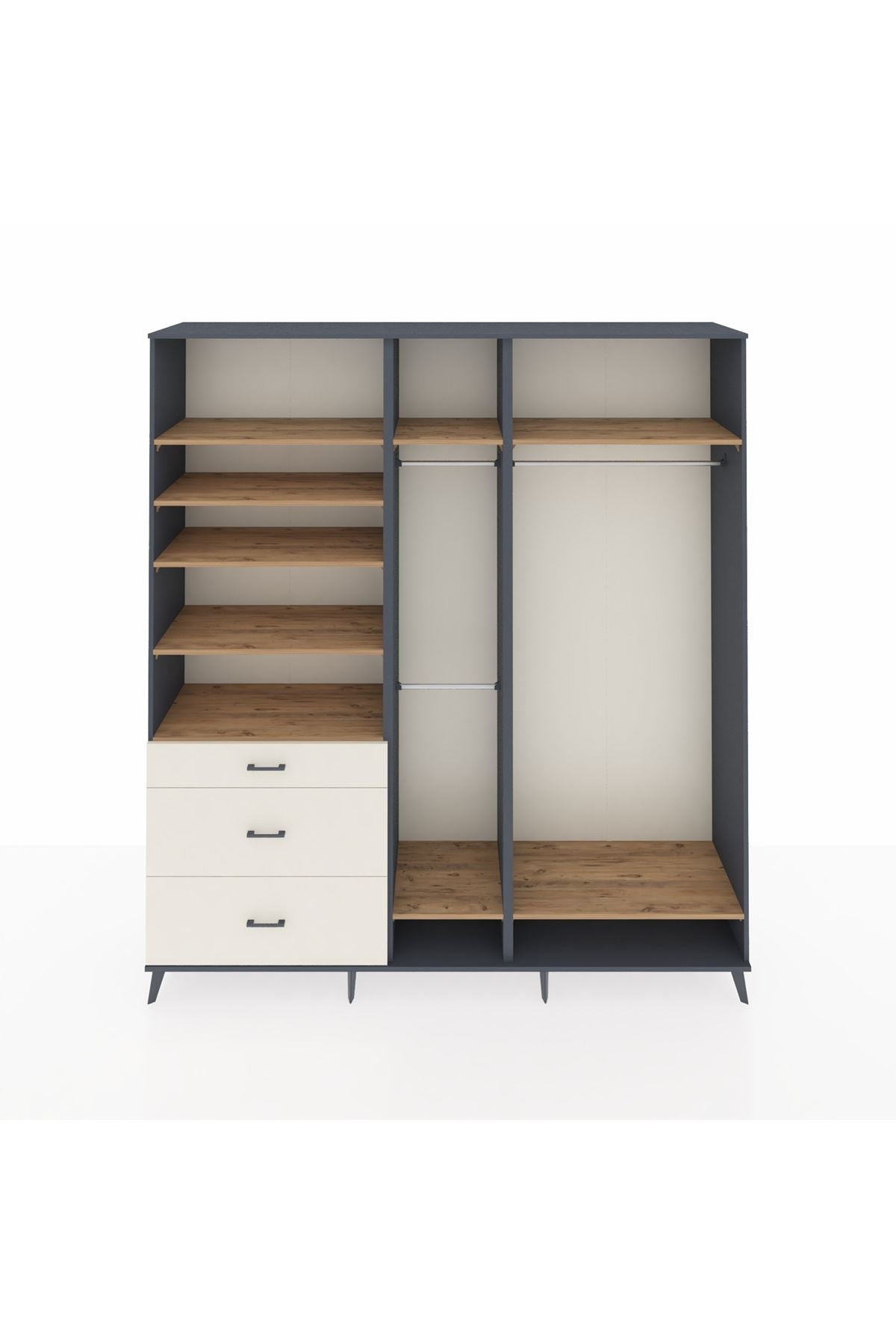 Hyperion Dolap 9 Raflı 3 Çekmeceli 3 Askılı 220x44x243 Antrasit-Çam/Aytaşı