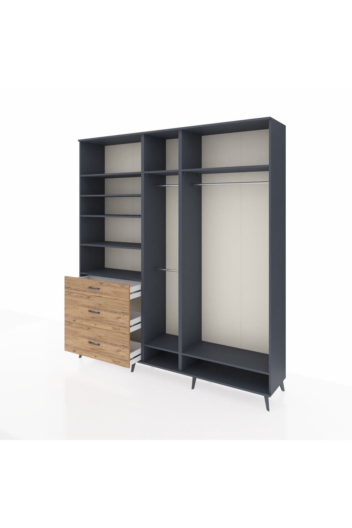Hyperion Dolap 9 Raflı 3 Çekmeceli 3 Askılı 220x44x243 Antrasit-Antrasit/Çam