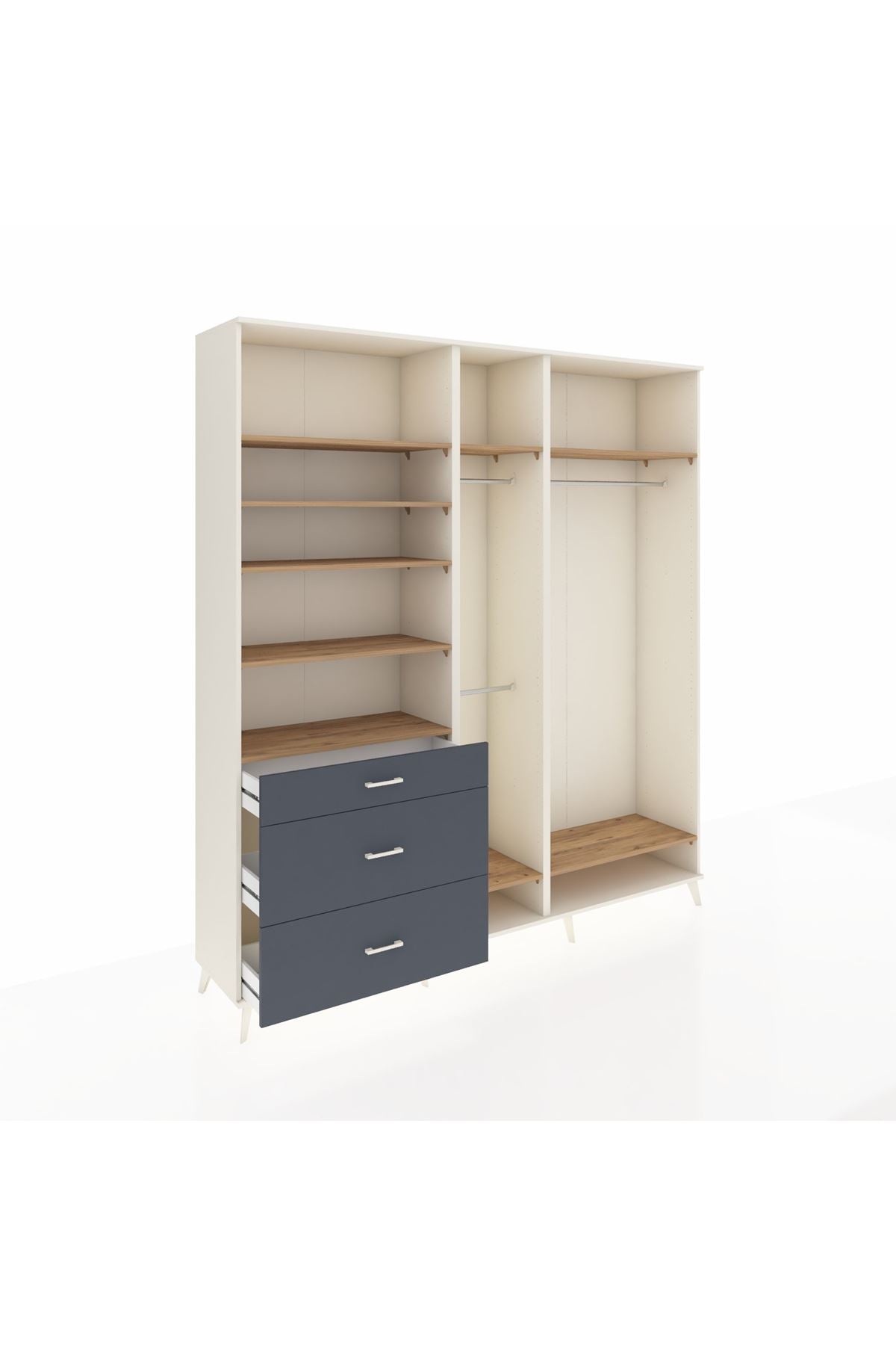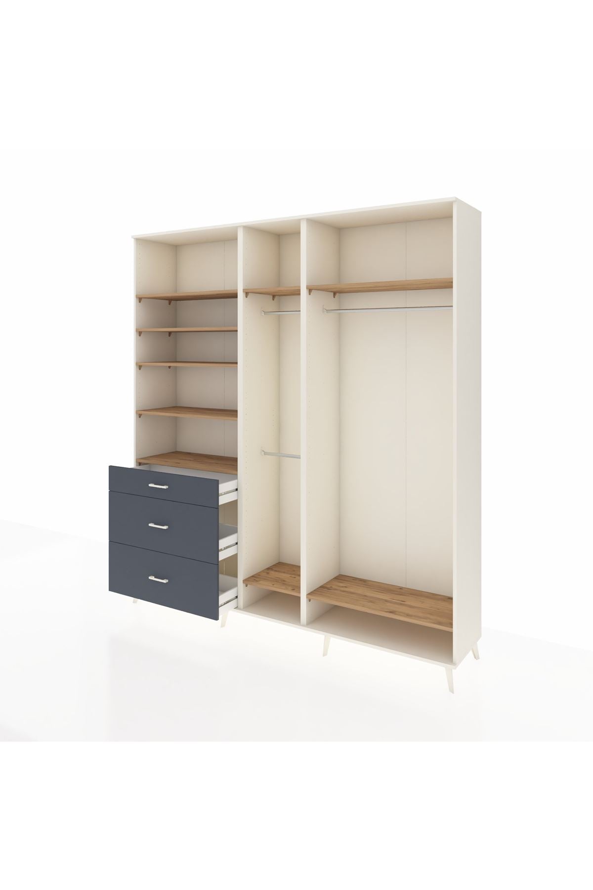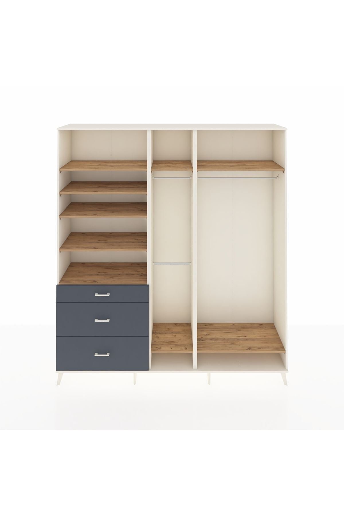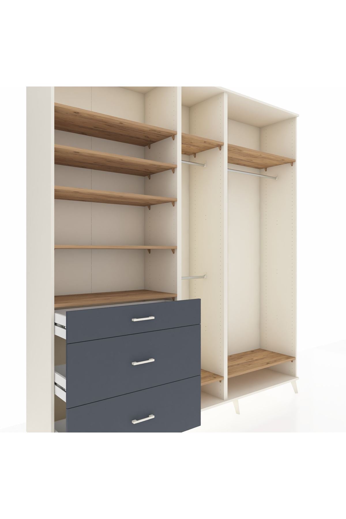 Hyperion Dolap 9 Raflı 3 Çekmeceli 3 Askılı 220x44x243 Aytaşı-Çam/Antrasit