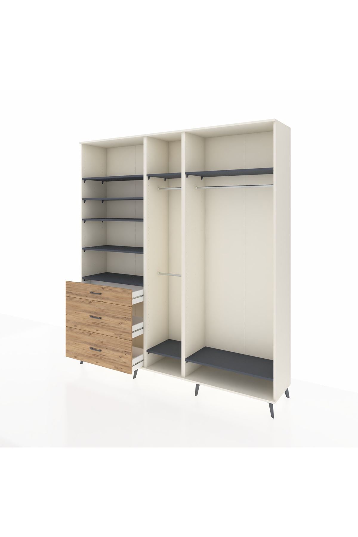 Hyperion Dolap 9 Raflı 3 Çekmeceli 3 Askılı 220x44x243 Aytaşı-Antrasit/Çam
