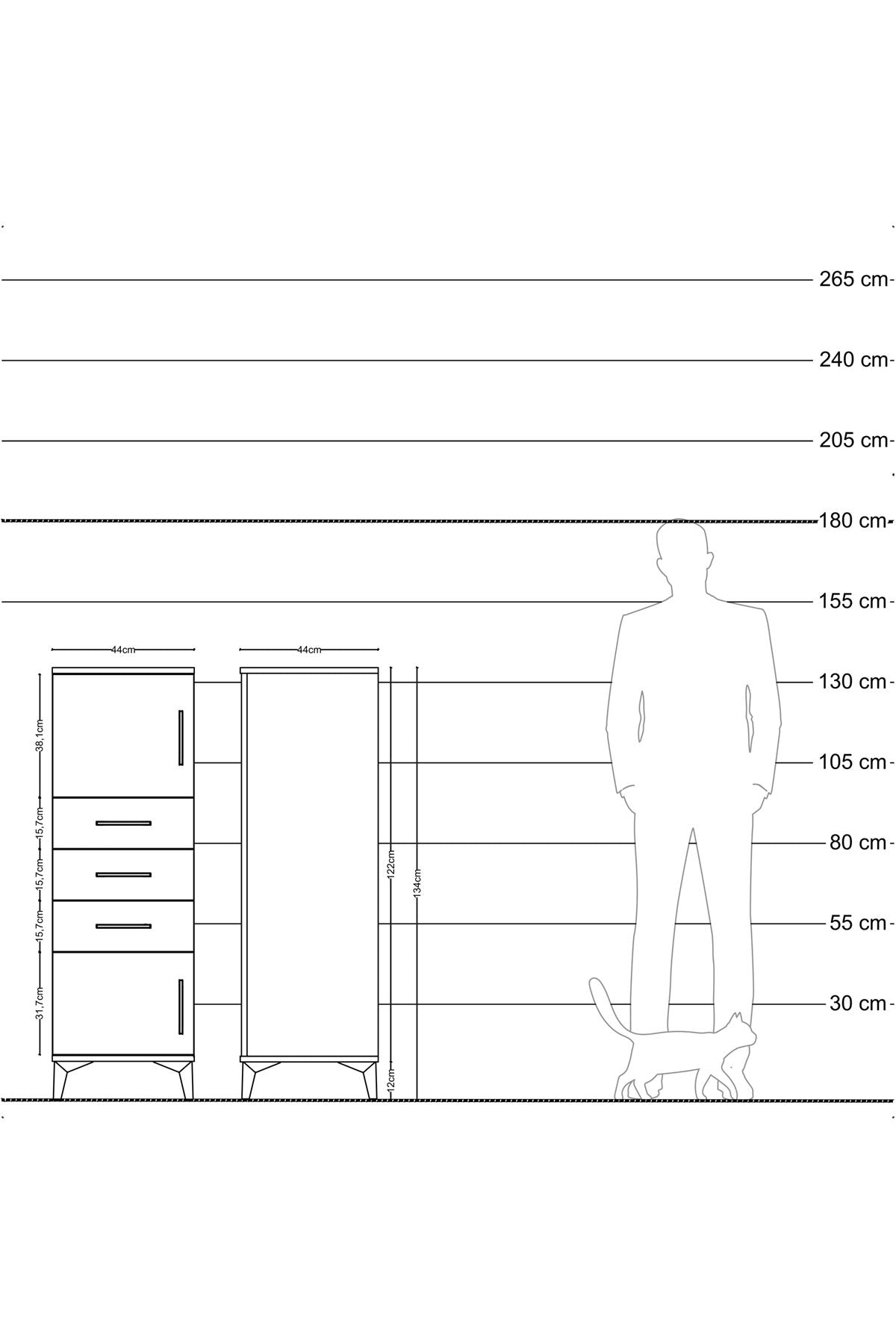 Hyperion Dolap Tek Raflı 3 Çekmeceli 2 Kapaklı 44x44x134 Aytaşı-Aytaşı