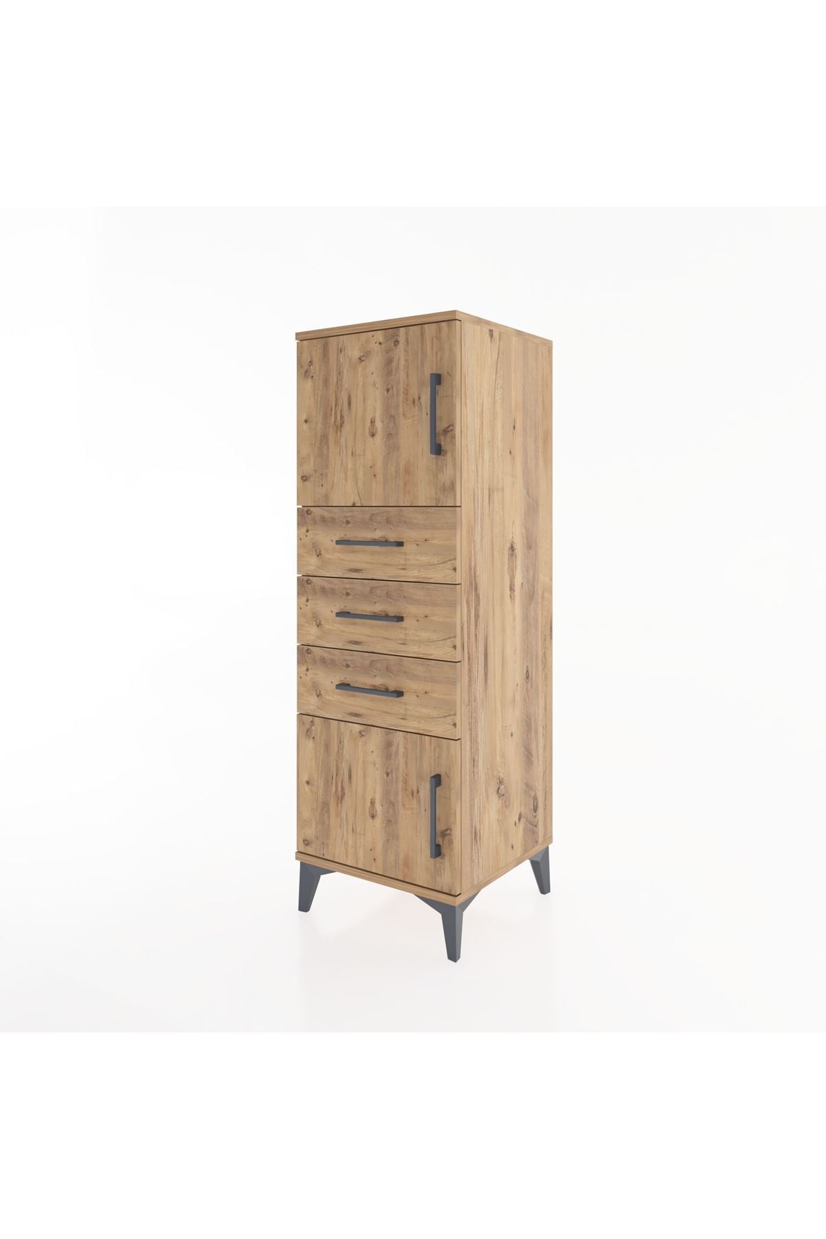 Hyperion Dolap Tek Raflı 3 Çekmeceli 2 Kapaklı 44x44x134 Çam-Çam