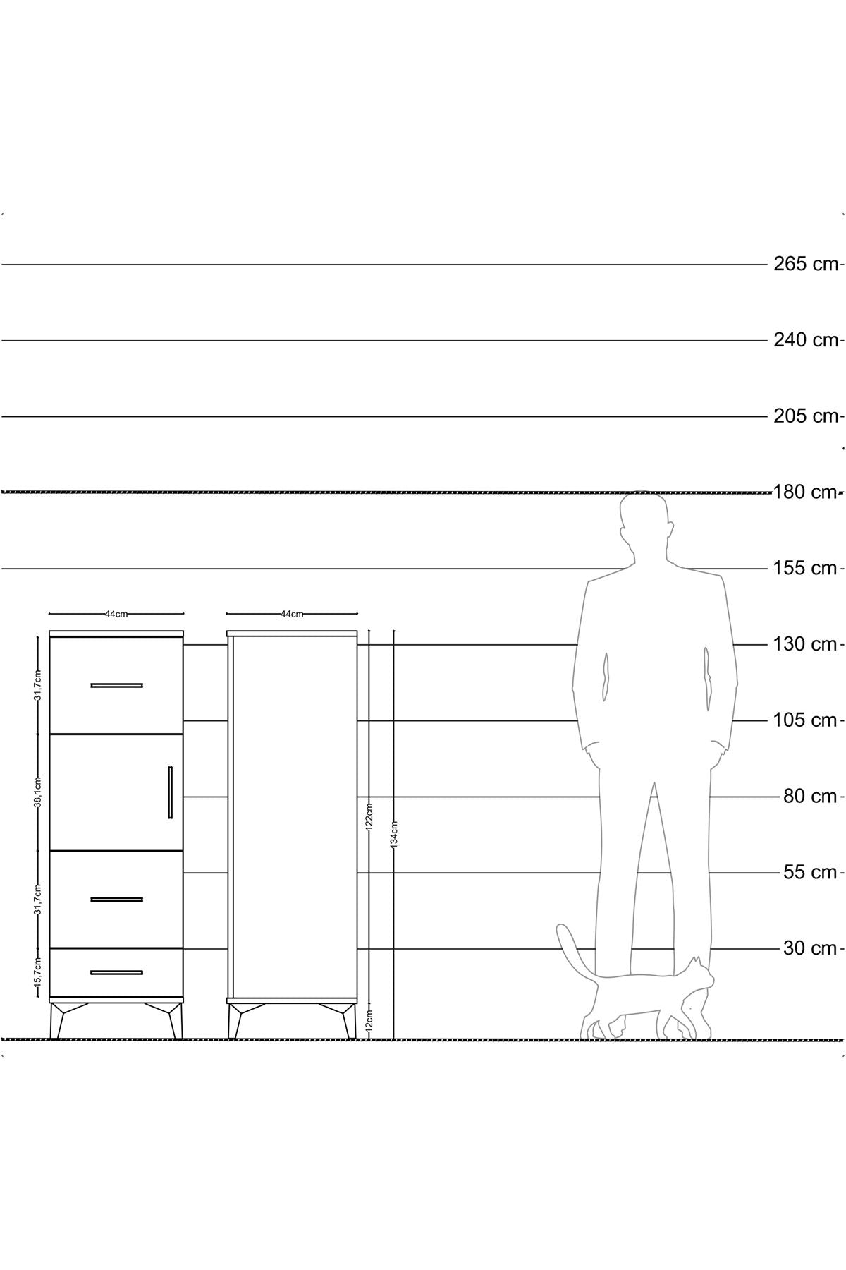 Hyperion Dolap Tek Raflı 3 Çekmeceli Tek Kapaklı 44x44x134 Antrasit-Antrasit