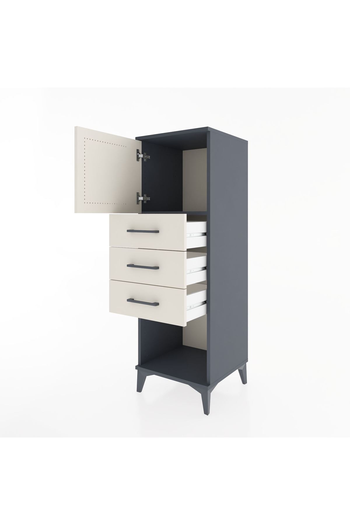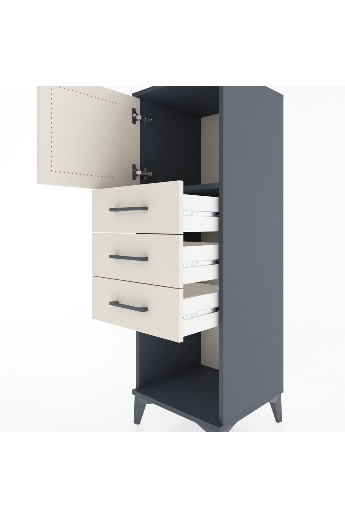 Hyperion Dolap Tek Raflı 3 Çekmeceli Tek Kapaklı 44x44x134 Antrasit-Aytaşı