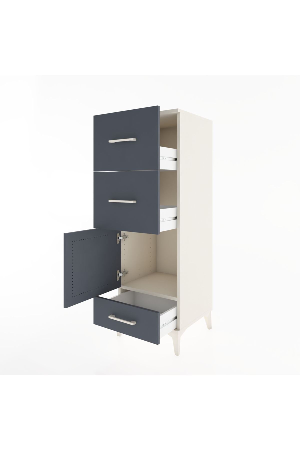 Hyperion Dolap Tek Raflı 3 Çekmeceli Tek Kapaklı 44x44x134 Aytaşı-Antrasit