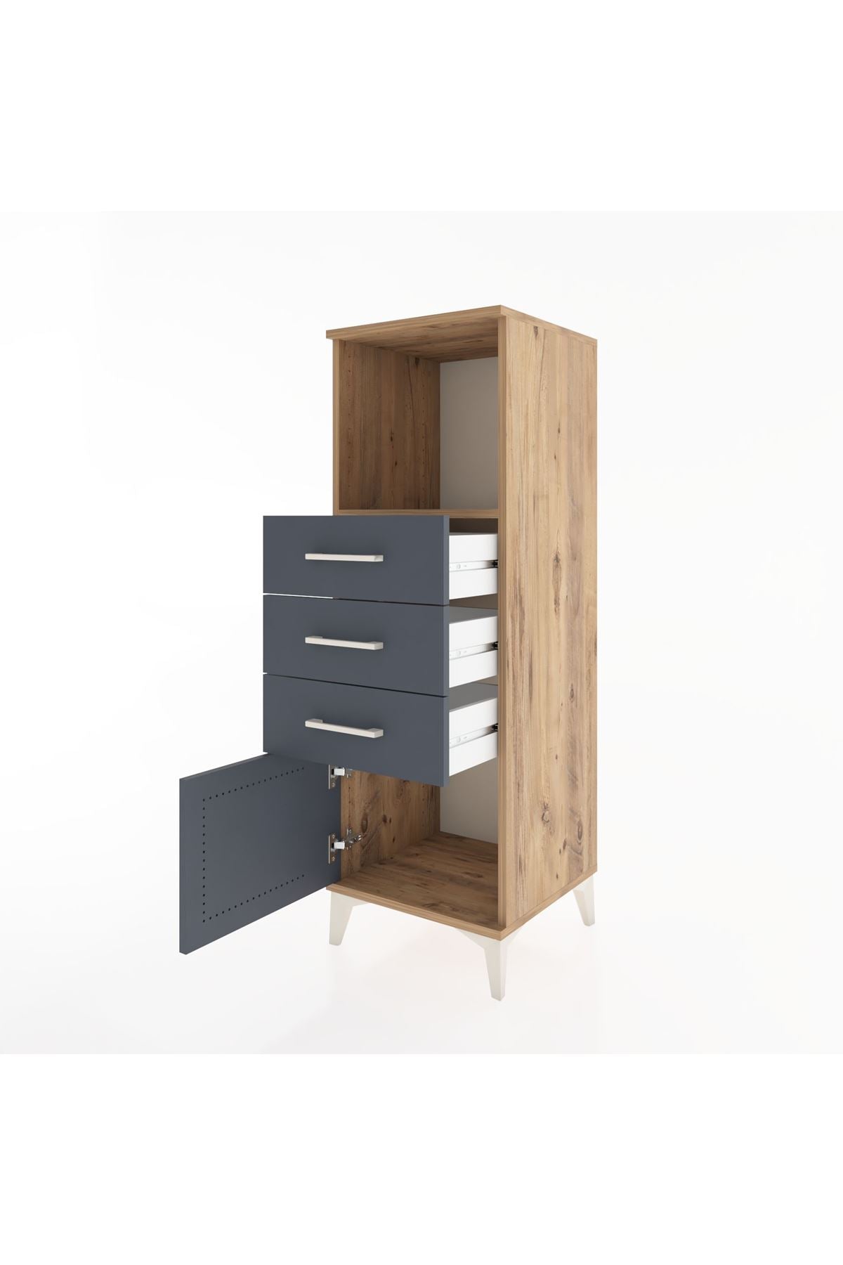 Hyperion Dolap Tek Raflı 3 Çekmeceli Tek Kapaklı 44x44x134 Çam-Antrasit
