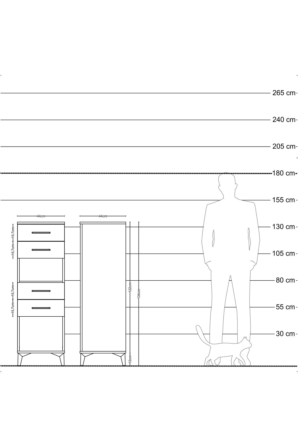 Hyperion Dolap Tek Raflı 4 Çekmeceli 44x44x134 Antrasit-Antrasit