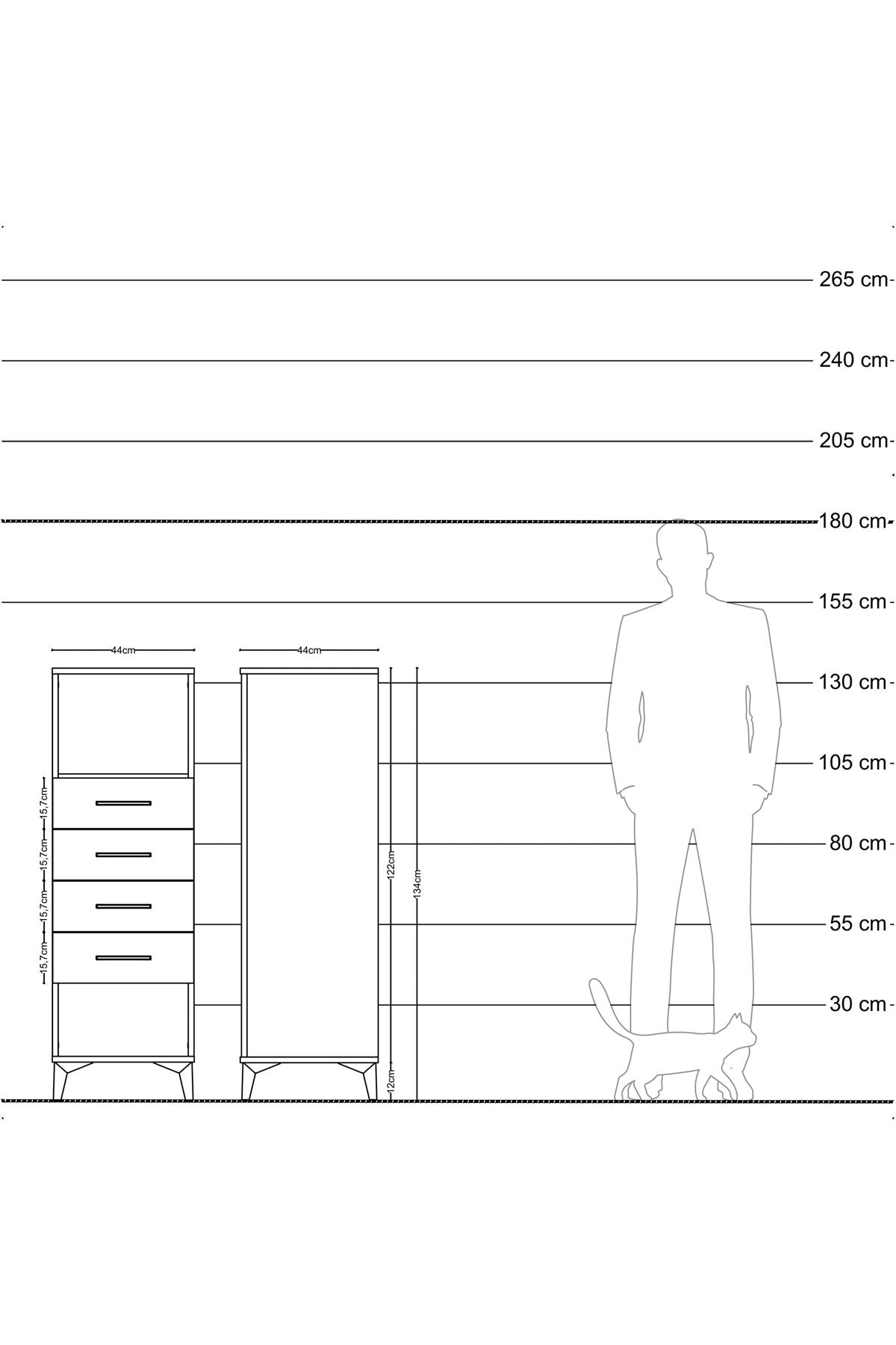 Hyperion Dolap Tek Raflı 4 Çekmeceli 44x44x134 Antrasit-Antrasit