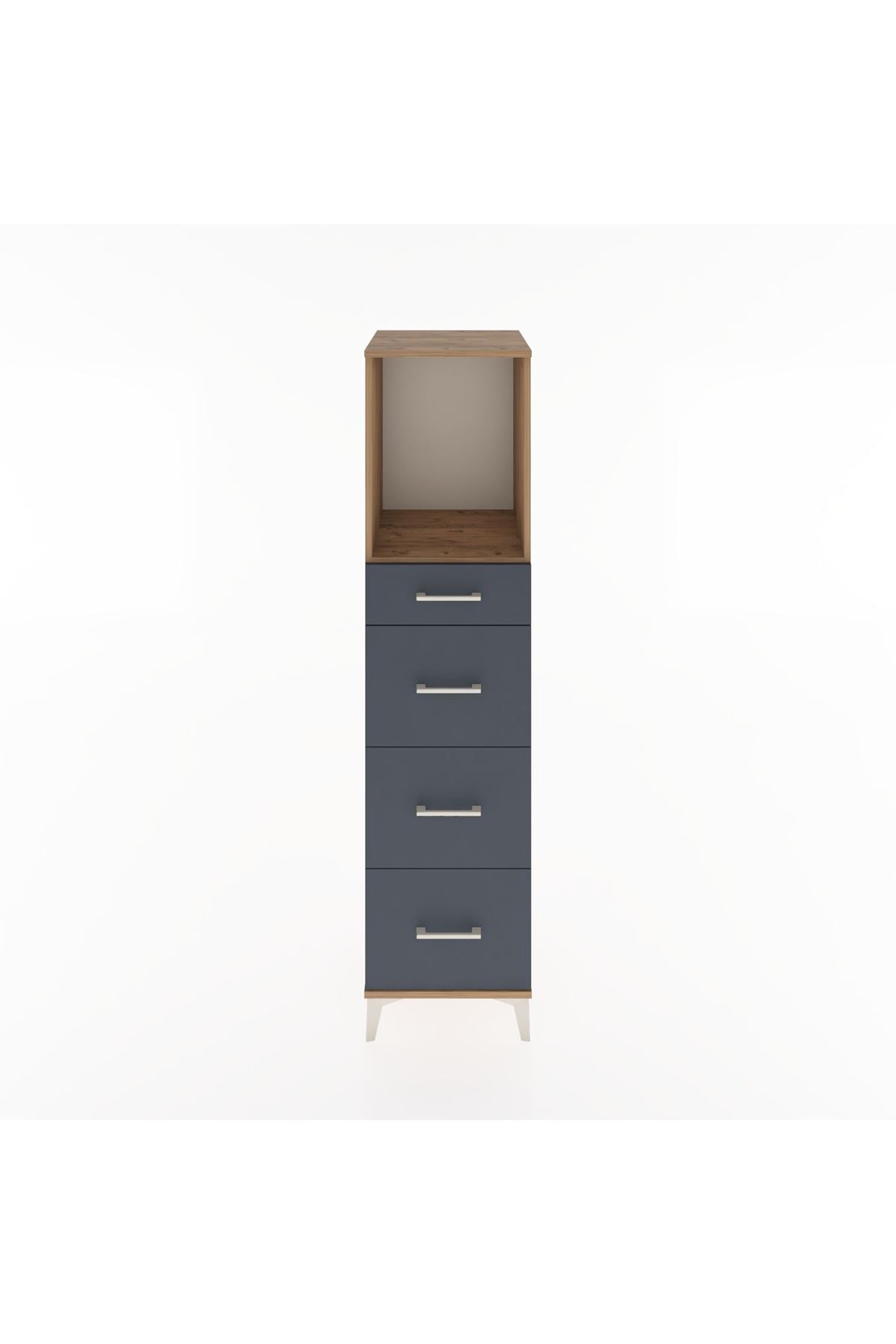 Hyperion Dolap Tek Raflı 4 Çekmeceli 44x44x182 Çam-Antrasit