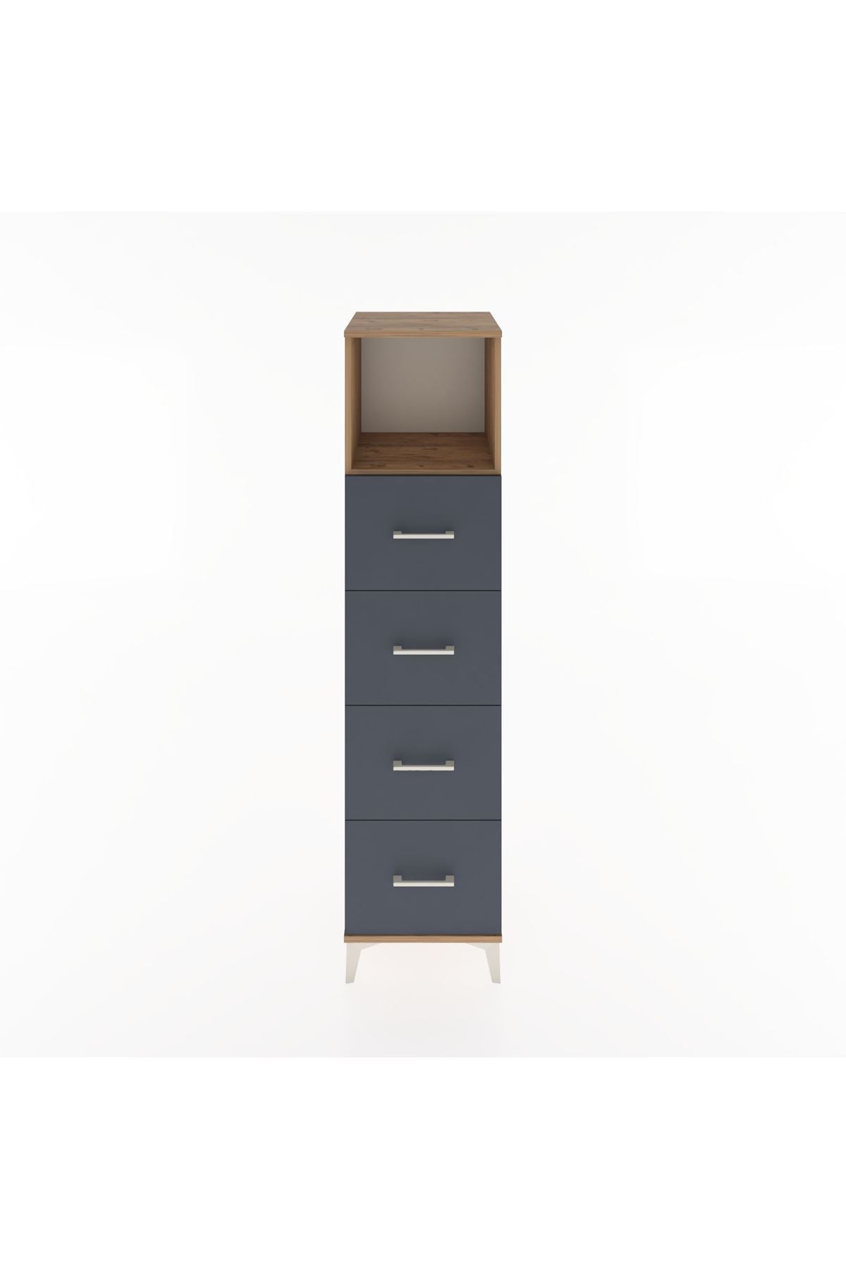 Hyperion Dolap Tek Raflı 4 Çekmeceli 44x44x182 Çam-Antrasit