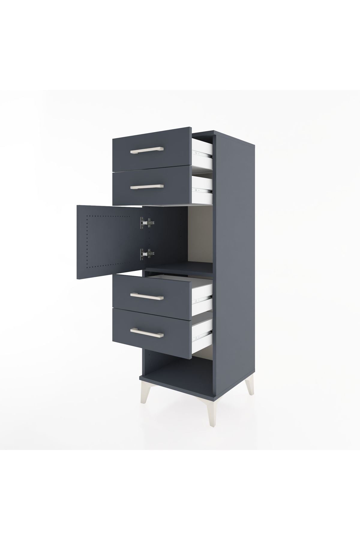 Hyperion Dolap Tek Raflı 4 Çekmeceli Tek Kapaklı 44x44x134 Antrasit-Antrasit