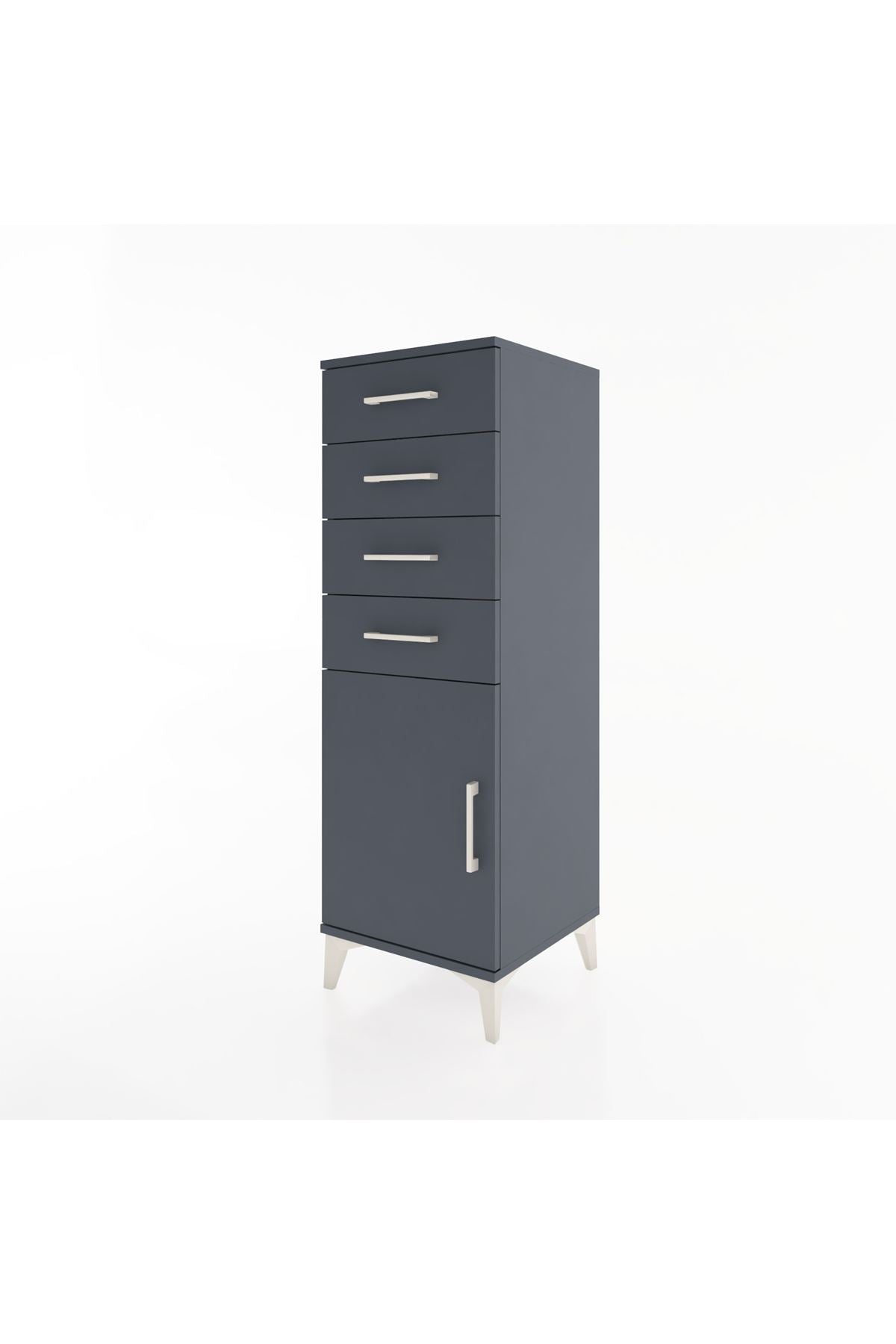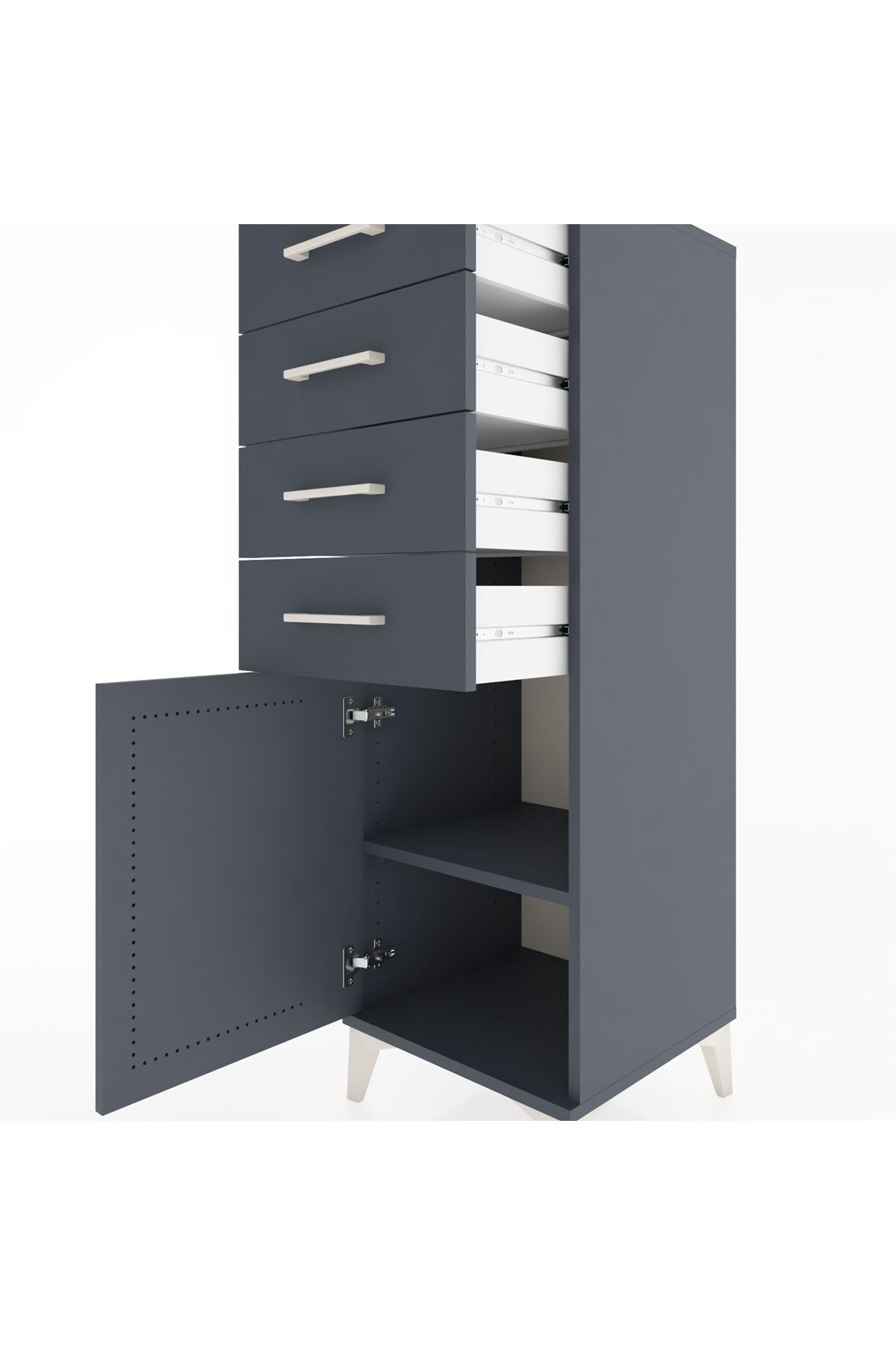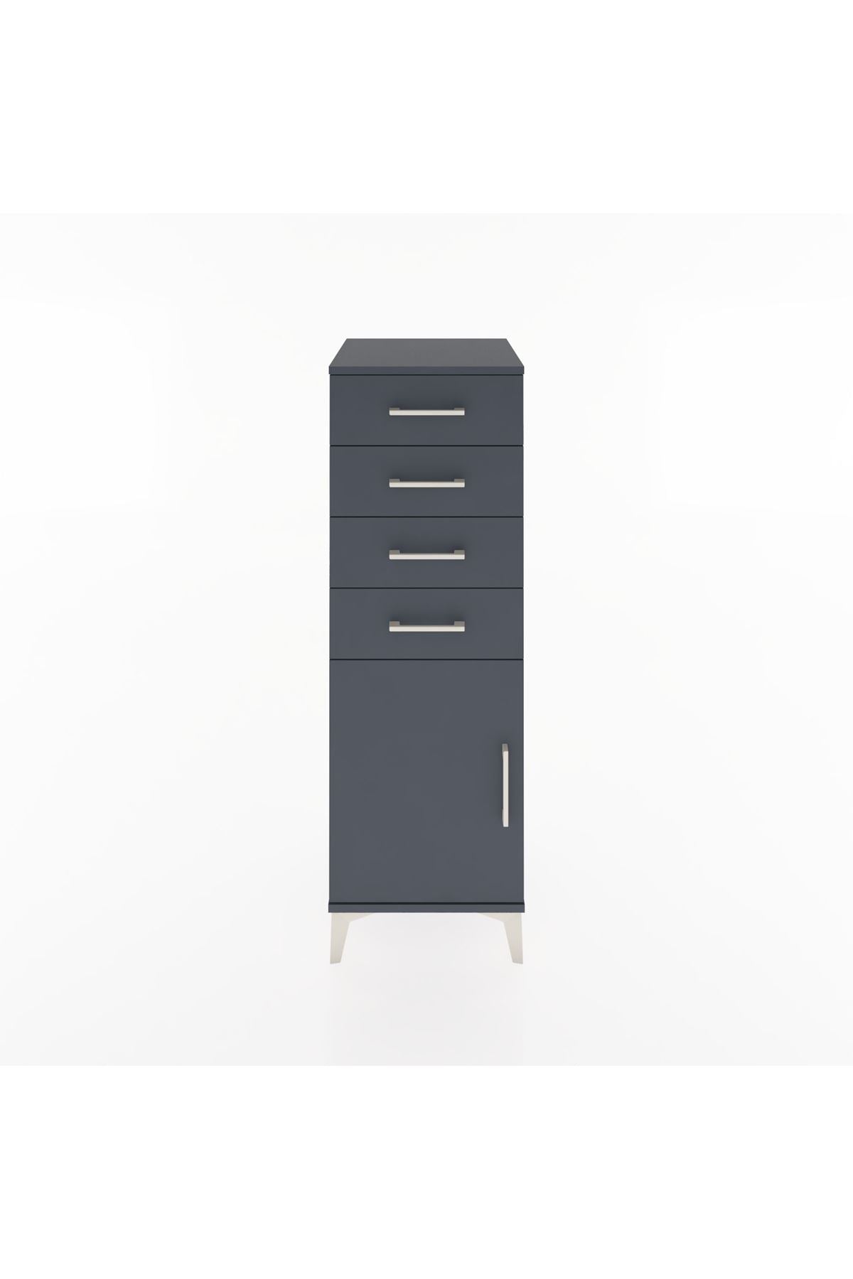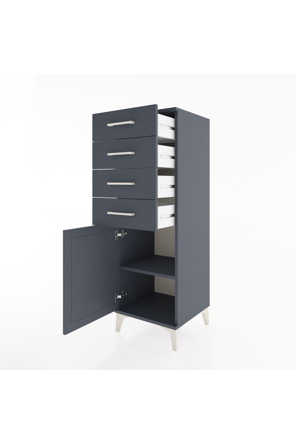 Hyperion Dolap Tek Raflı 4 Çekmeceli Tek Kapaklı 44x44x134 Antrasit-Antrasit