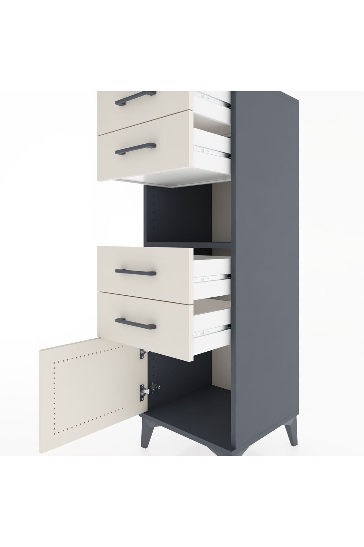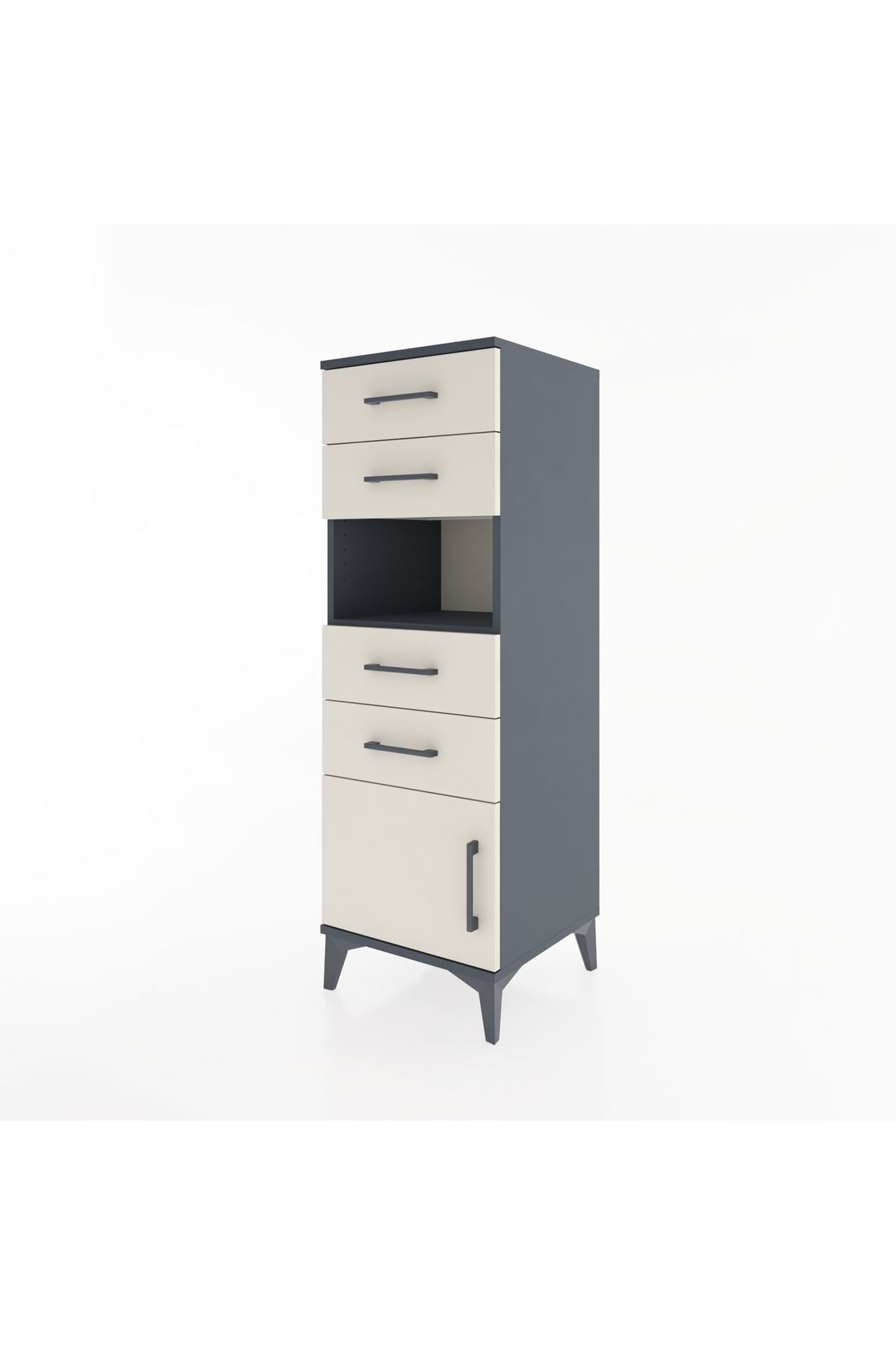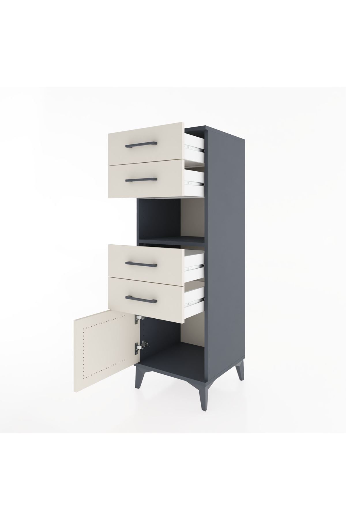 Hyperion Dolap Tek Raflı 4 Çekmeceli Tek Kapaklı 44x44x134 Antrasit-Aytaşı