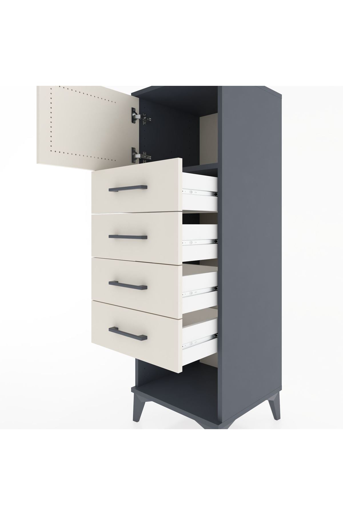 Hyperion Dolap Tek Raflı 4 Çekmeceli Tek Kapaklı 44x44x134 Antrasit-Aytaşı