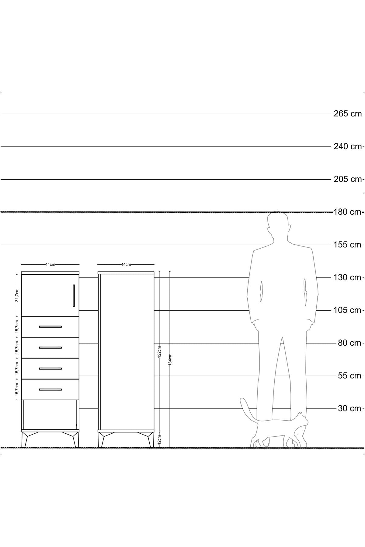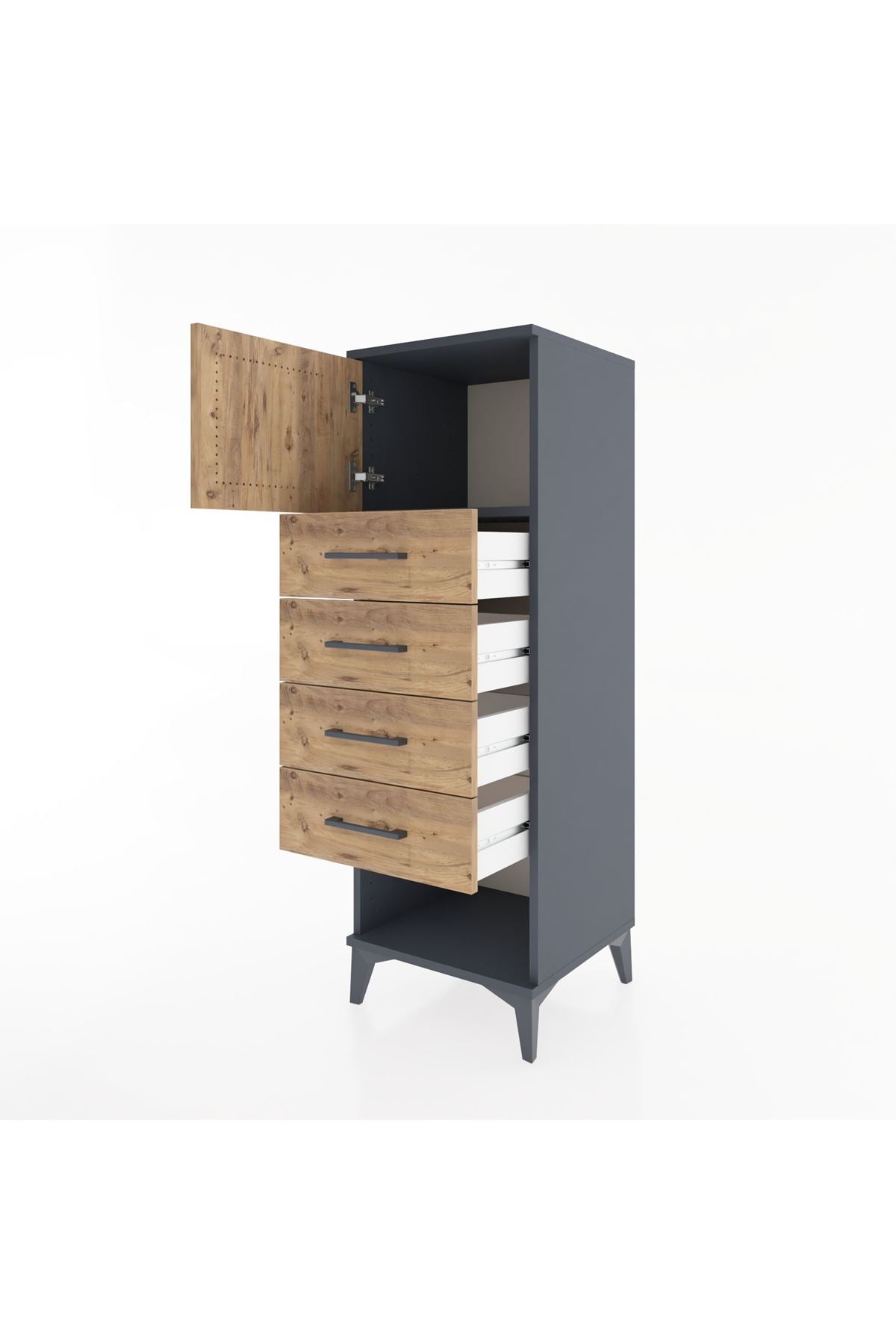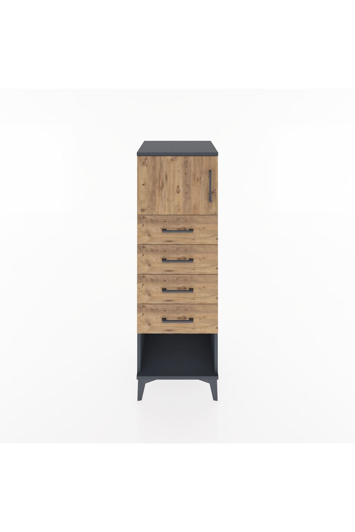 Hyperion Dolap Tek Raflı 4 Çekmeceli Tek Kapaklı 44x44x134 Antrasit-Çam