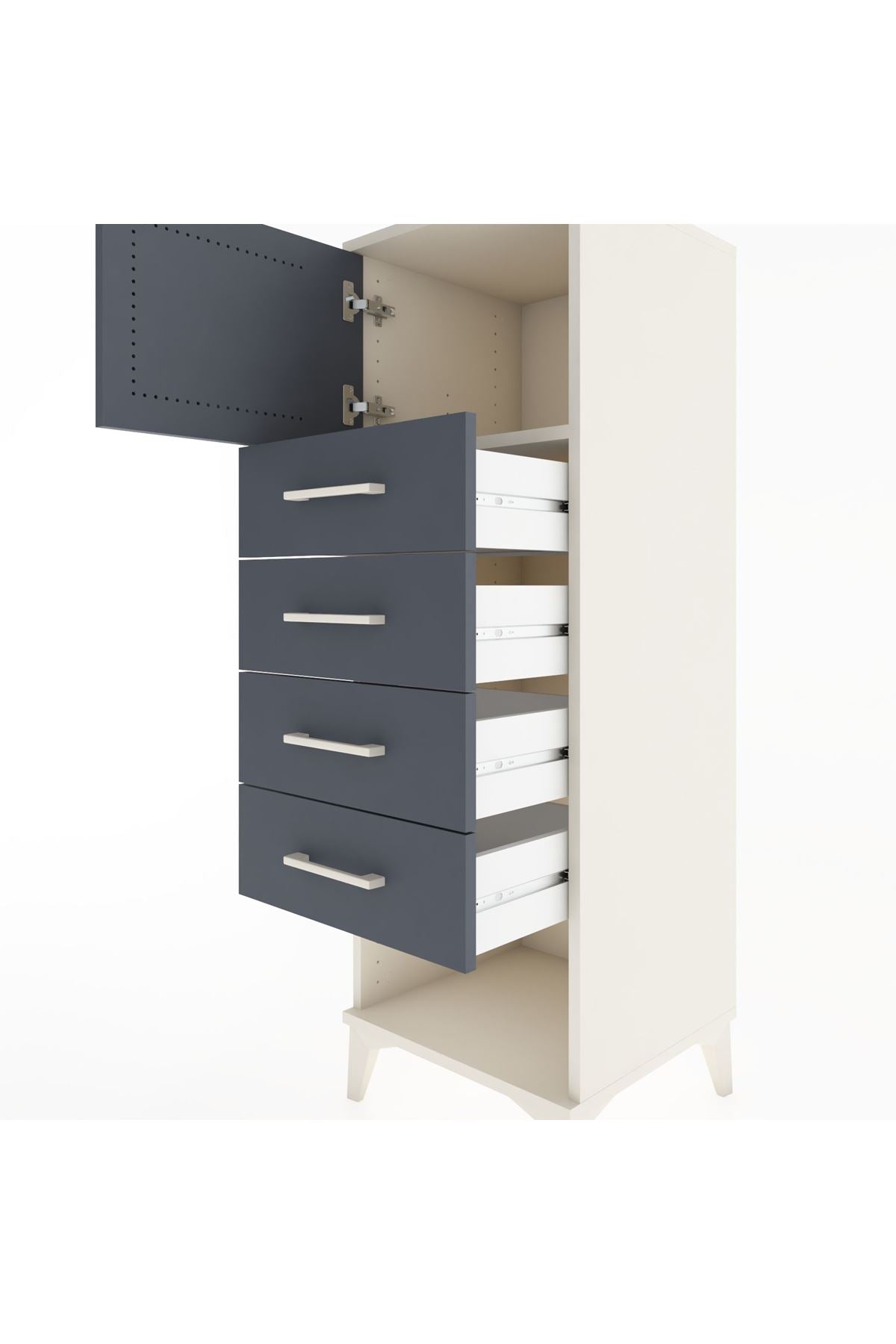 Hyperion Dolap Tek Raflı 4 Çekmeceli Tek Kapaklı 44x44x134 Aytaşı-Antrasit