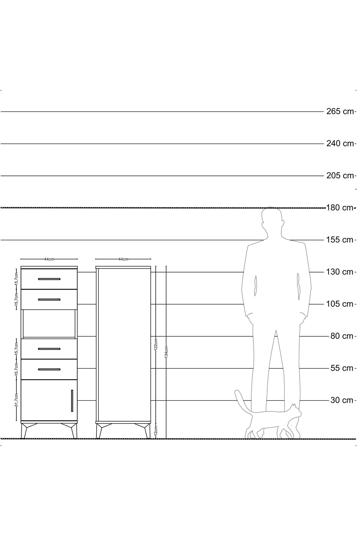 Hyperion Dolap Tek Raflı 4 Çekmeceli Tek Kapaklı 44x44x134 Aytaşı-Çam