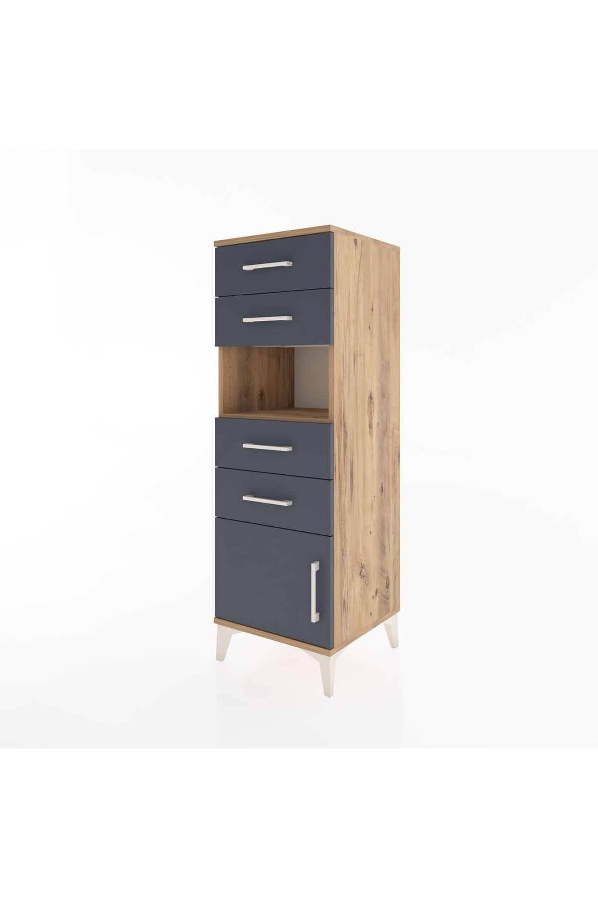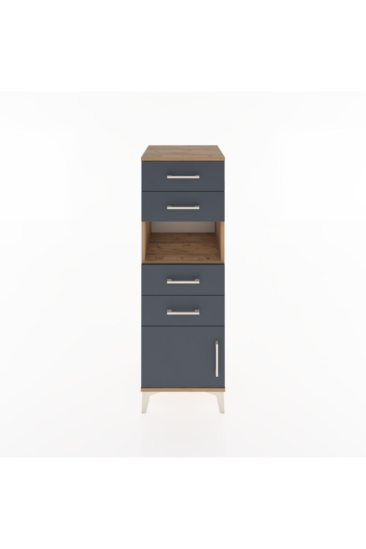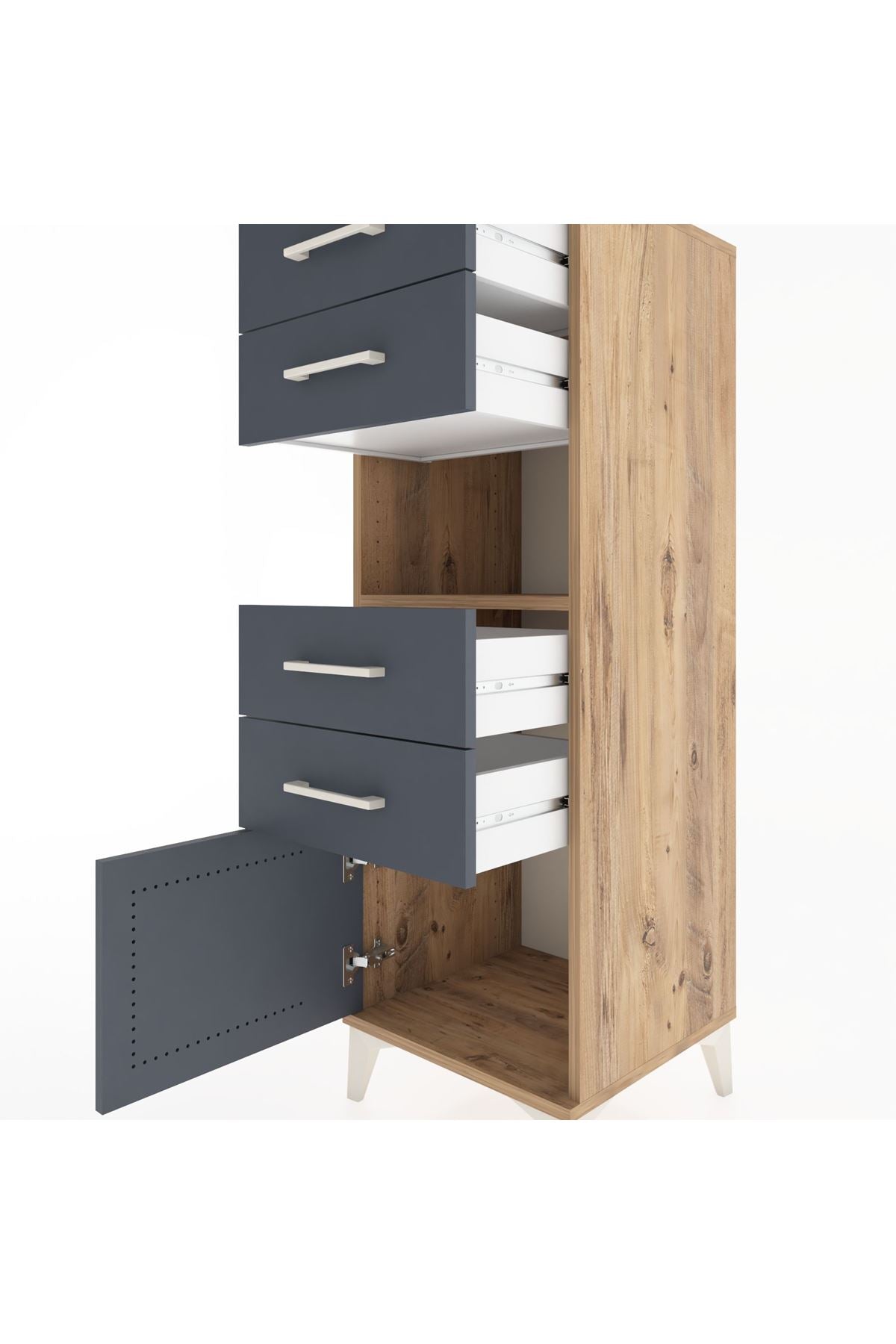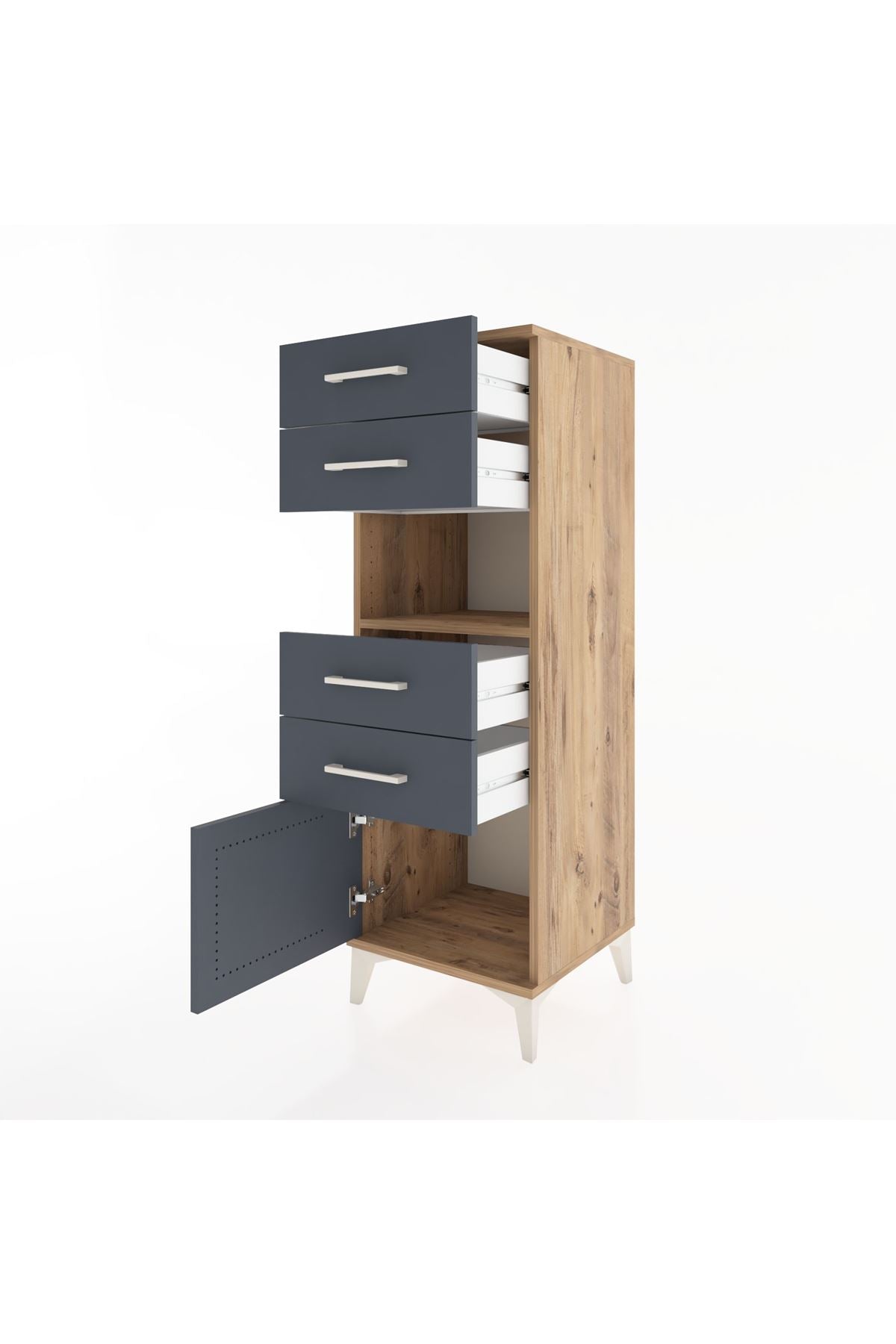 Hyperion Dolap Tek Raflı 4 Çekmeceli Tek Kapaklı 44x44x134 Çam-Antrasit