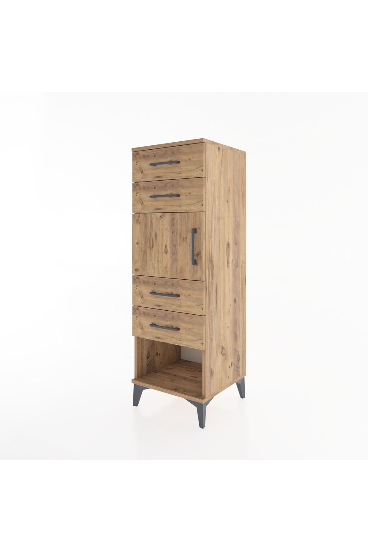 Hyperion Dolap Tek Raflı 4 Çekmeceli Tek Kapaklı 44x44x134 Çam-Çam