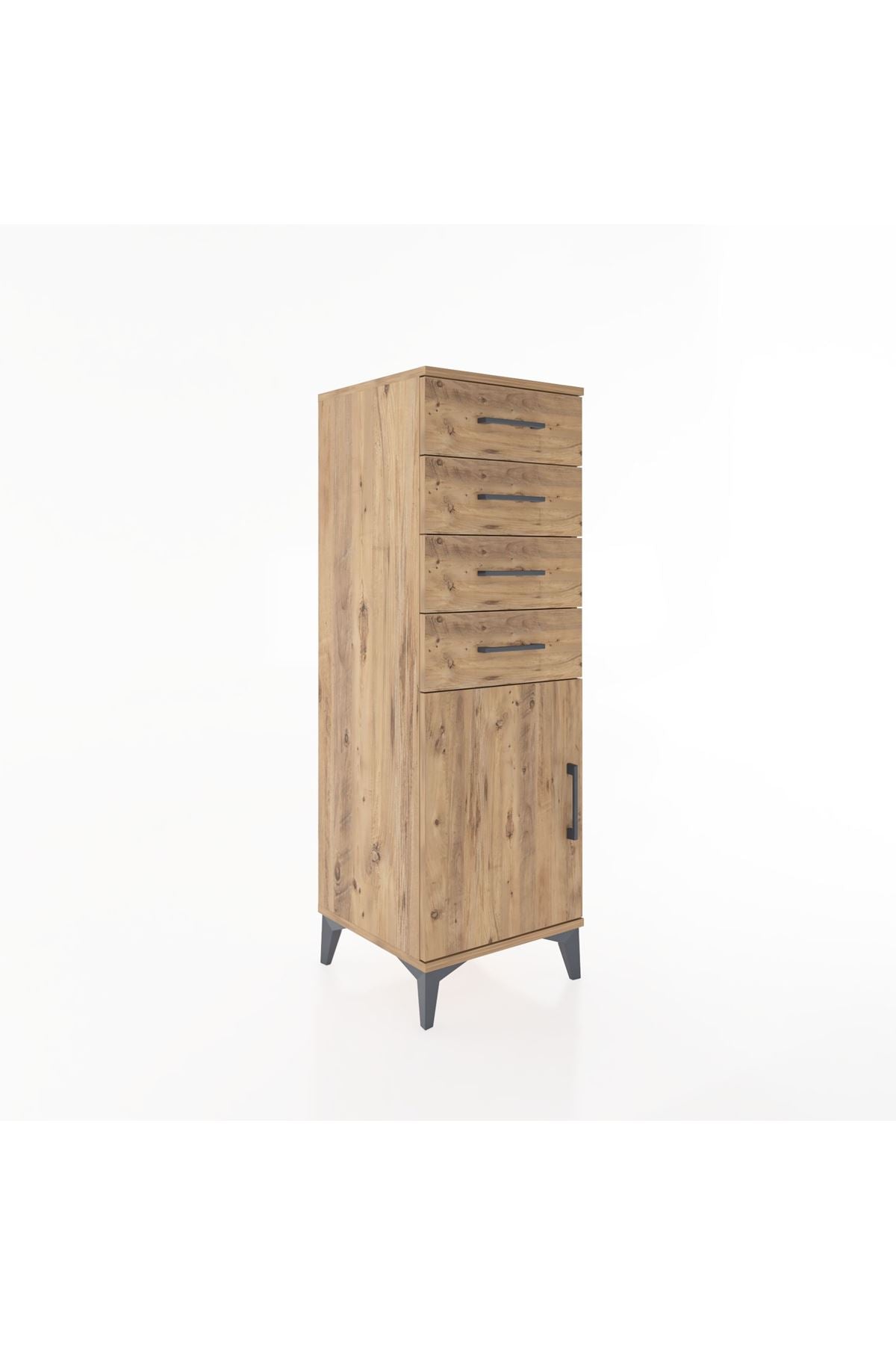 Hyperion Dolap Tek Raflı 4 Çekmeceli Tek Kapaklı 44x44x134 Çam-Çam