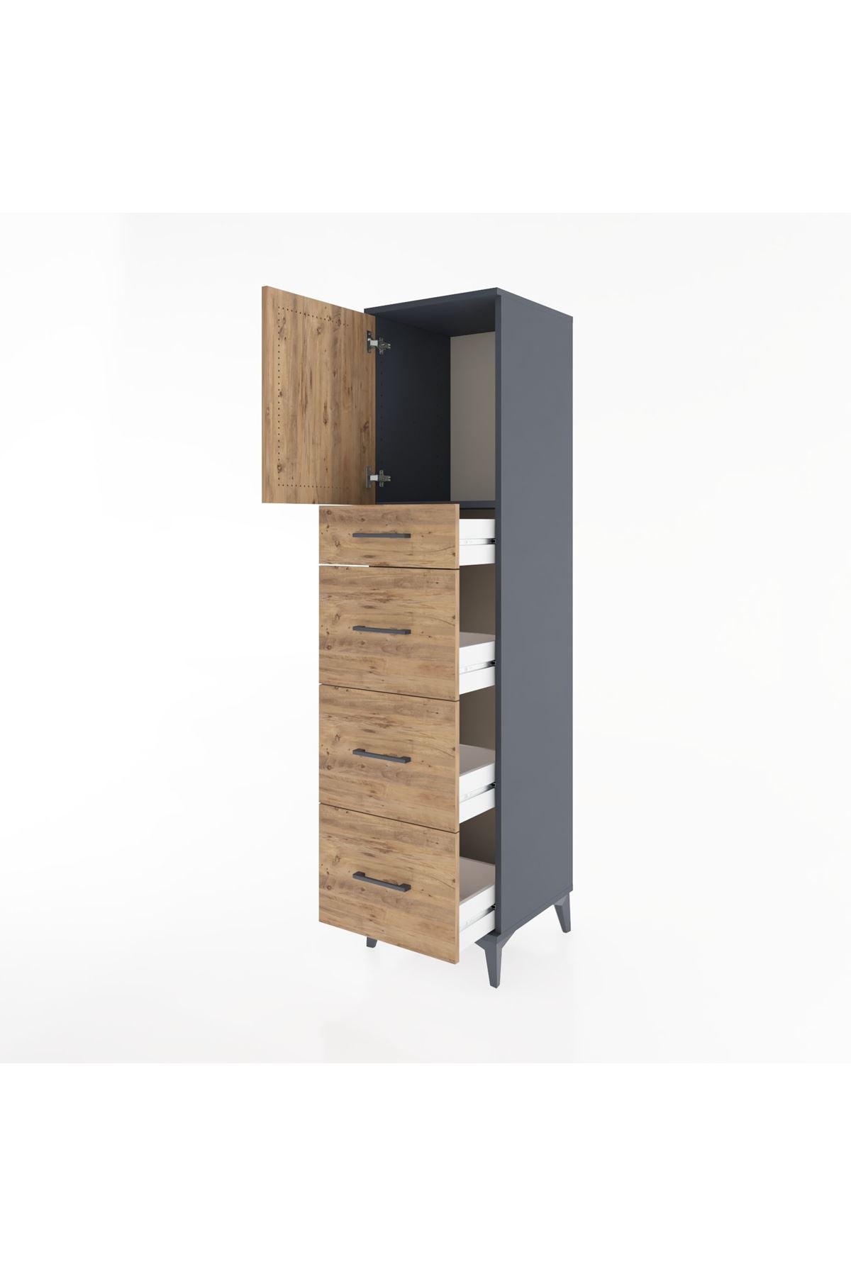 Hyperion Dolap Tek Raflı 4 Çekmeceli Tek Kapaklı 44x44x182 Antrasit-Çam
