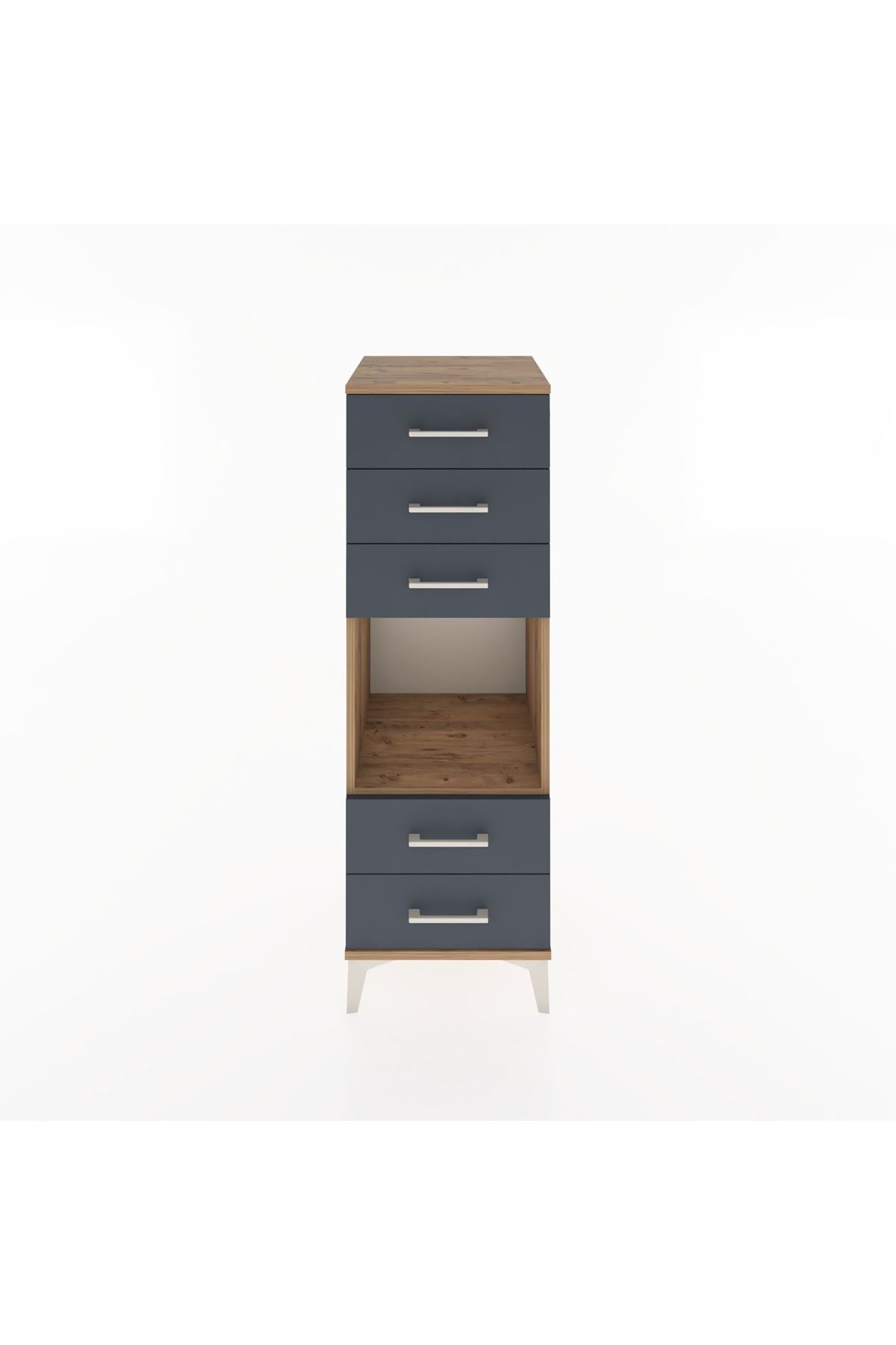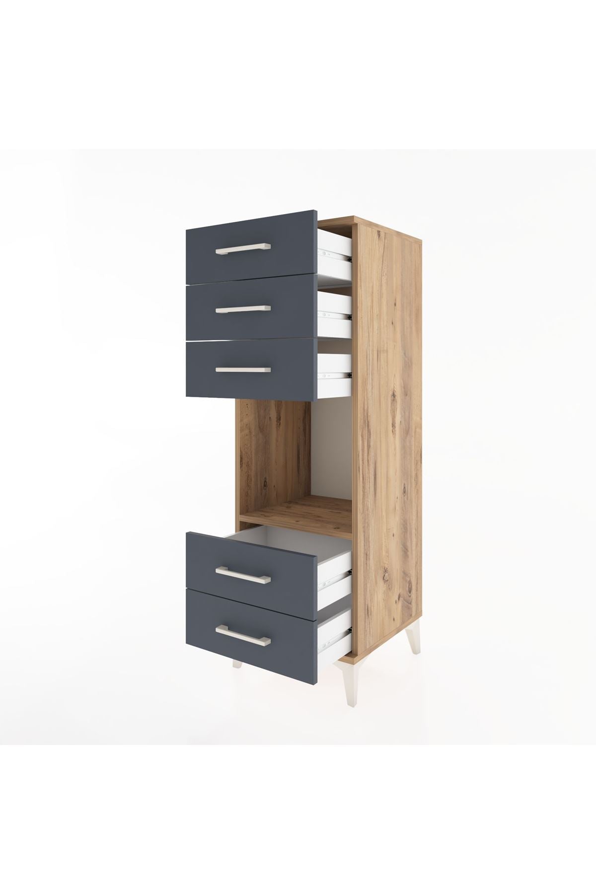 Hyperion Dolap Tek Raflı 5 Çekmeceli 44x44x134 Çam-Antrasit